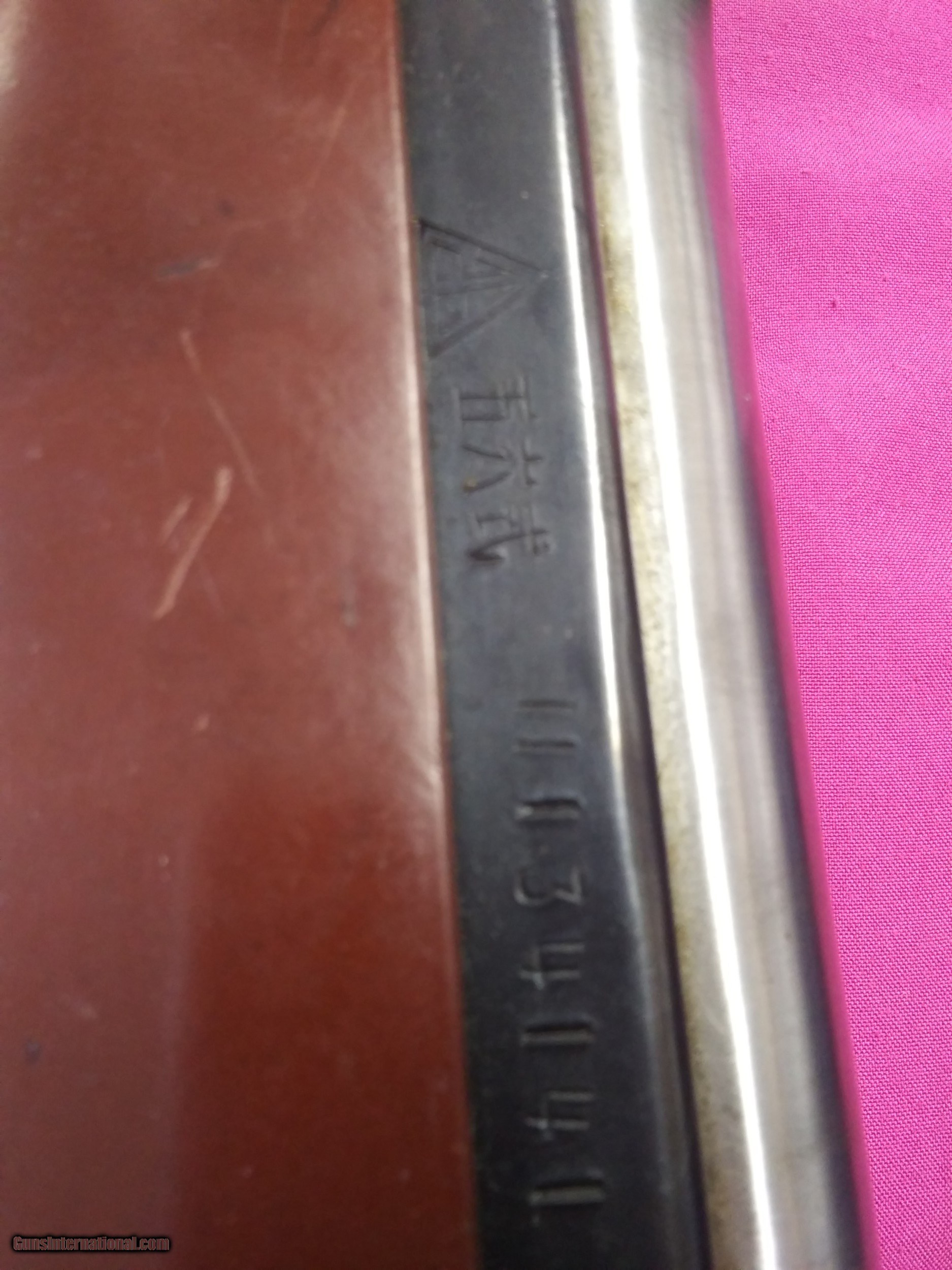 Description: Chinese SKS, 7.72x39 cal. Fiberglass (some may say bakelite) stock. Excellent overall condition, and excellent bore. All serial numbers match on parts. Folding spike bayonet. Cleaning kit in stock. No sling. $455 includes shipping to FFL Only. SOLD Manufacturer: CHINESE Model: SKS Serial Number: 11134141 Caliber Info: 7.62 X 39 Condition: EXCELLENT Metal Condition: EXCELLENT Bore Condition: EXCELLENT |