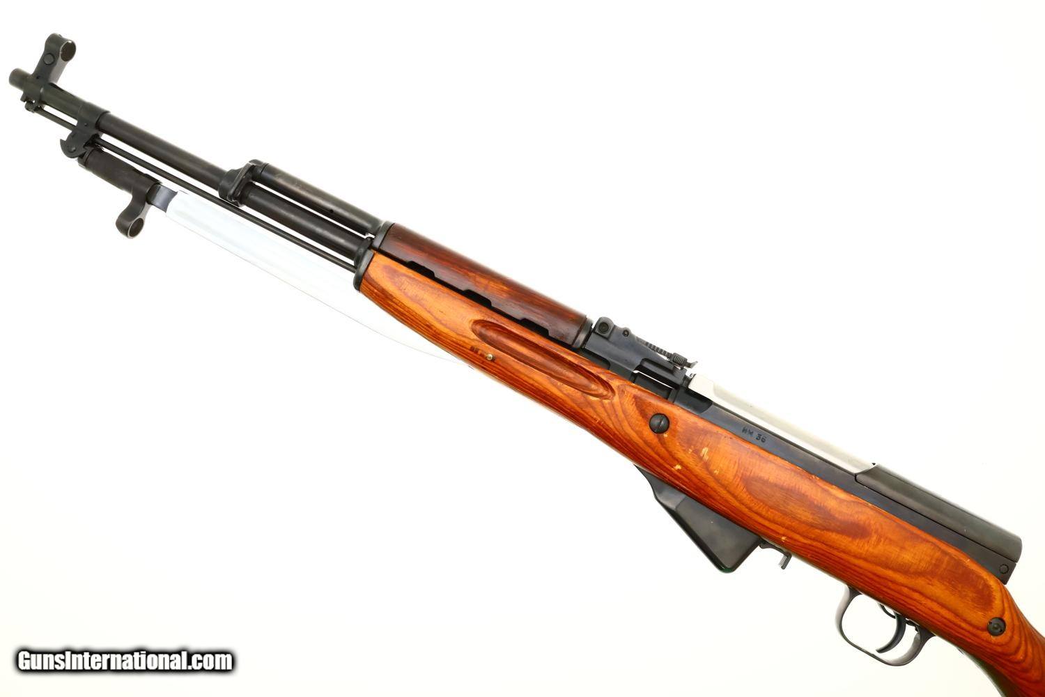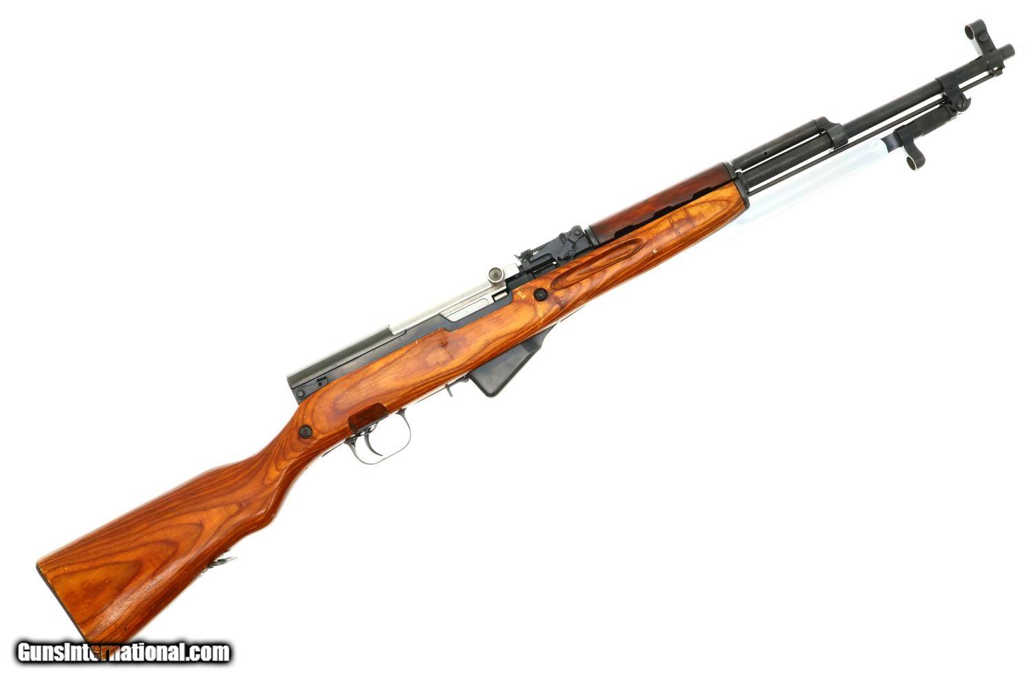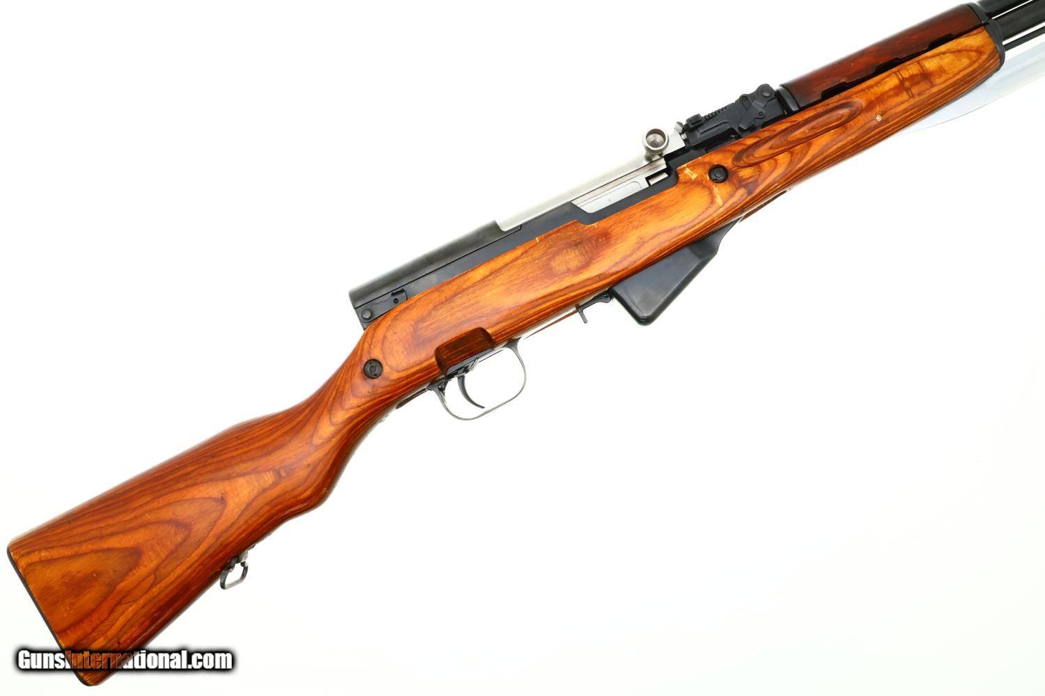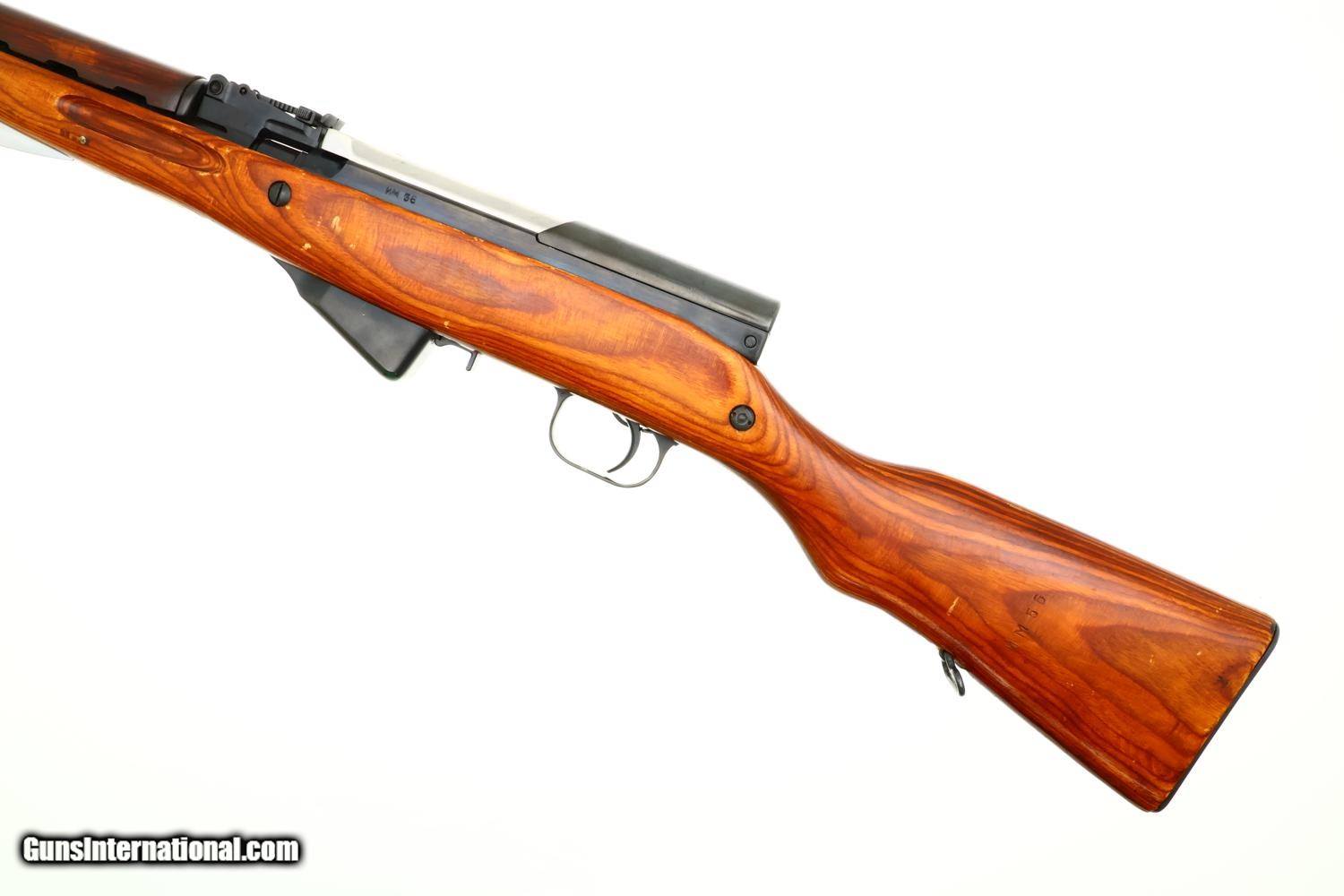 Near excellent original condition with just a few small handling marks, most noticeable on top of the receiver just above the production year. Crisp, in-the-white bolt, without staining. Laminated stock hardwood stock with scattered handling scuffs as carefully pictured. Bright bayonet without any discoloration or suggestion of polishing. Mirror bore. Correct manual mechanics. A wonderful Russian made SKS rifle from the Izhevsk factory in 1953, no longer importable into the United States.