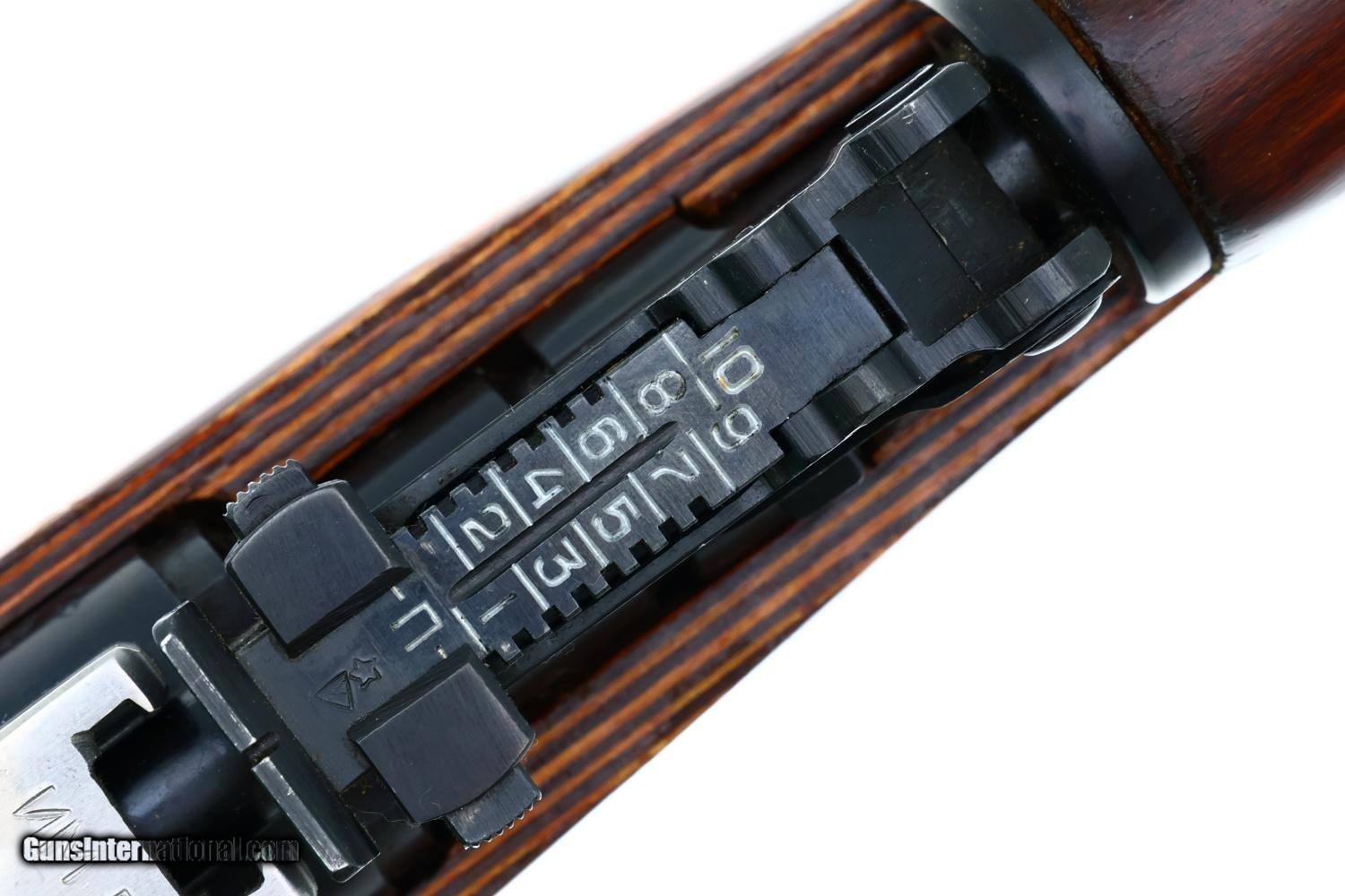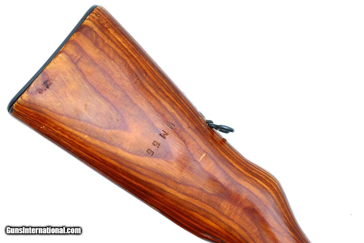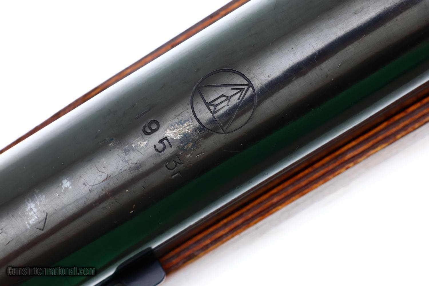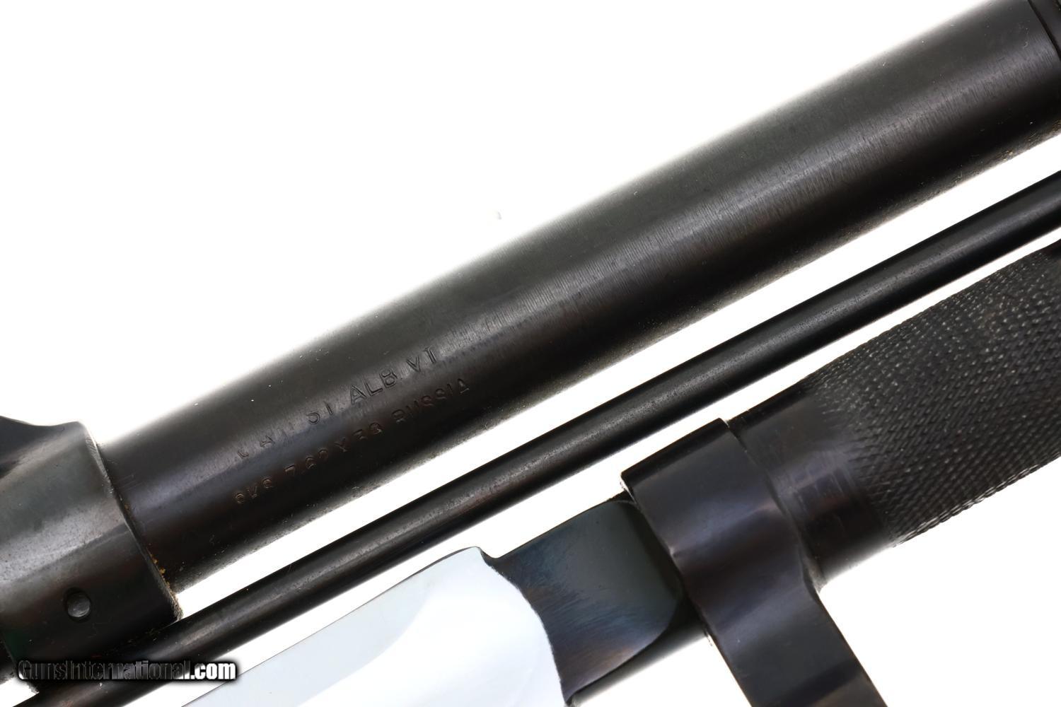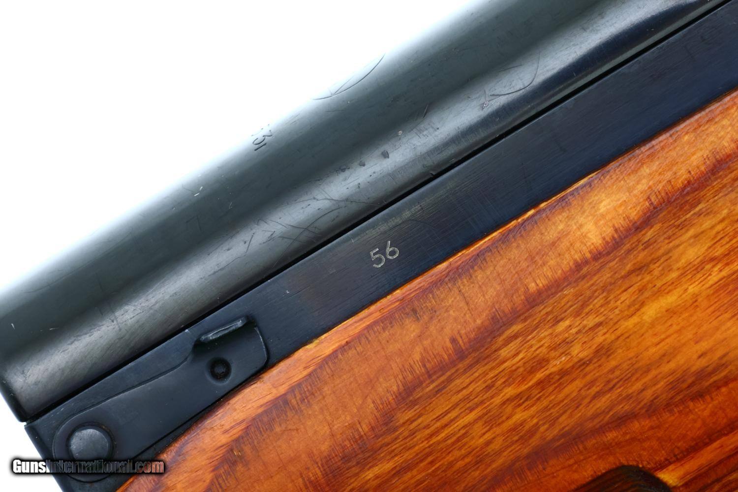 Description: Synopsis: High condition and all-matching Russian SKS, made by Izhevsk in 1953, a manufacturer that only made these rifles in 1952 and 1953. A classic semi-automatic rifle chambered in 7.62x39mm with a 20.5-inch barrel, adjustable sights, fixed ten-round magazine, folding bayonet, and a mirror bore. Description: Standard configuration and all-matching Russian made Izhevsk SKS semi-automatic rifle in 7.62x39mm caliber, manufactured 1953, SN:56, with 20.5-inch barrel, height-adjustable post front sight and tangent rear sight graduated 1-10 for range. Top of receiver bridge marked w/ Izhevsk arrow in a triangle within a circle and year marking 1953 followed by Cyrillic "r". The right side of receiver shows serial number "56" with additional Cyrillic markings, proofs, and very faint import marks on the barrel. Fitted with laminated hardwood stock, full matching SN on left side, military-style finish, and blued metal trapdoor buttplate. Ten-round fixed magazine with hinged floorplate for stripper clip loading and folding spike-bayonet. Condition: Near excellent original condition with just a few small handling marks, most noticeable on top of the receiver just above the production year. Crisp, in-the-white bolt, without staining. Laminated stock hardwood stock with scattered handling scuffs as carefully pictured. Bright bayonet without any discoloration or suggestion of polishing. Mirror bore. Correct manual mechanics. A wonderful Russian made SKS rifle from the Izhevsk factory in 1953, no longer importable into the United States. Manufacturer: Izhevsk Model: SKS Serial Number: 56 Caliber Info: 7.62x39mm Condition: VG-EXC Price: $1,795.00 Contact Seller |