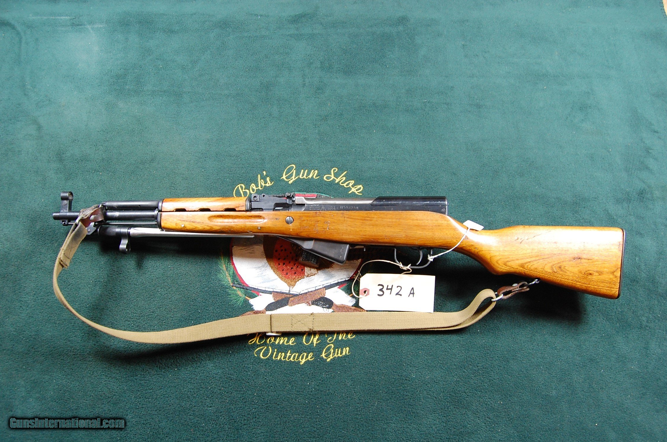 Description: Chinese Norinco SKS 7.62x39 with bayonet. Matching #'s Very Good condition Nice woodgrain Excellent bore SOLD Manufacturer: SKS Model: Norinco Serial Number: 11593254 Caliber Info: 7.62x39 Condition: Very Good Metal Condition: Very Good Wood Condition: Very Good Bore Condition: Excellent |