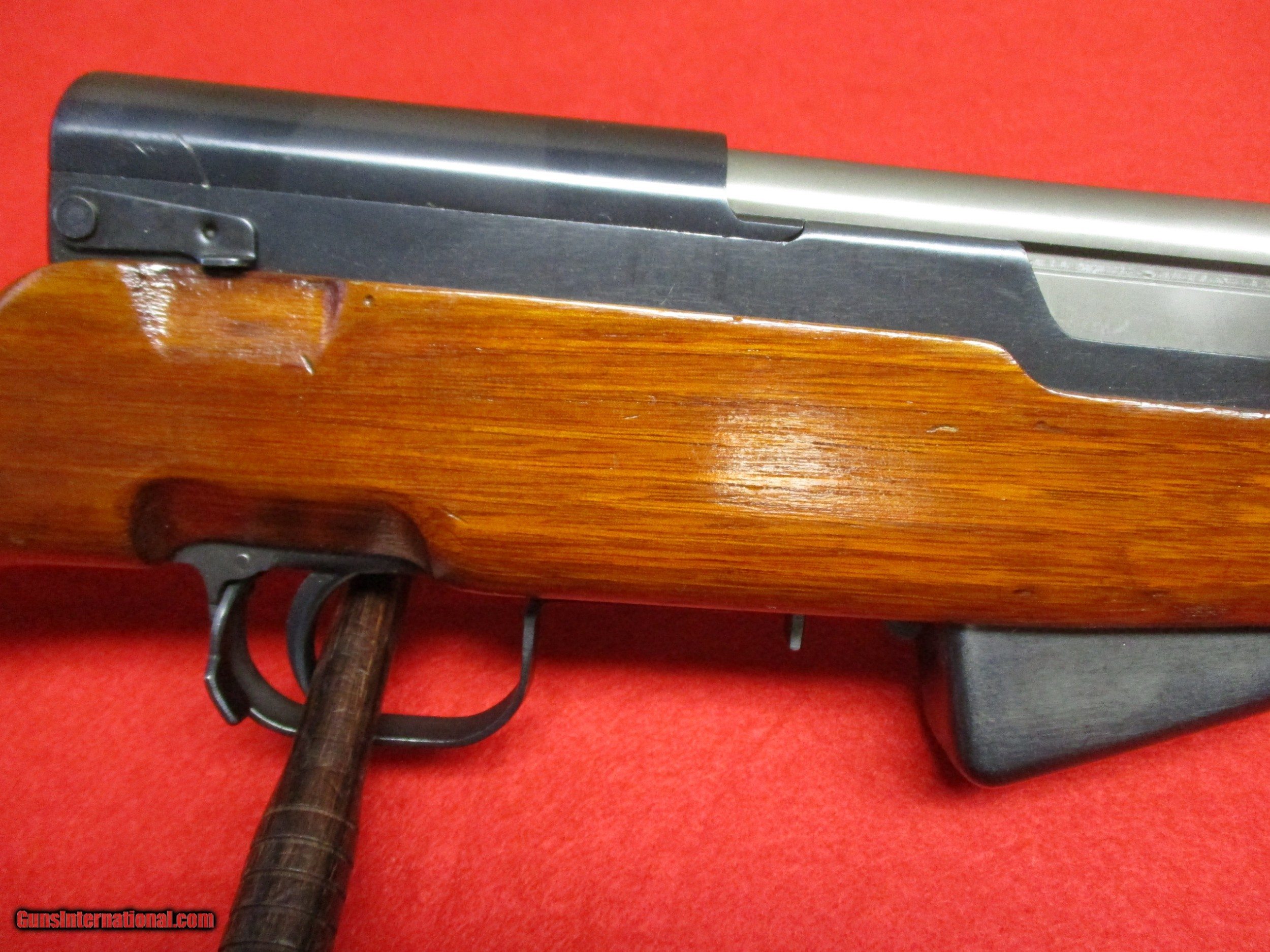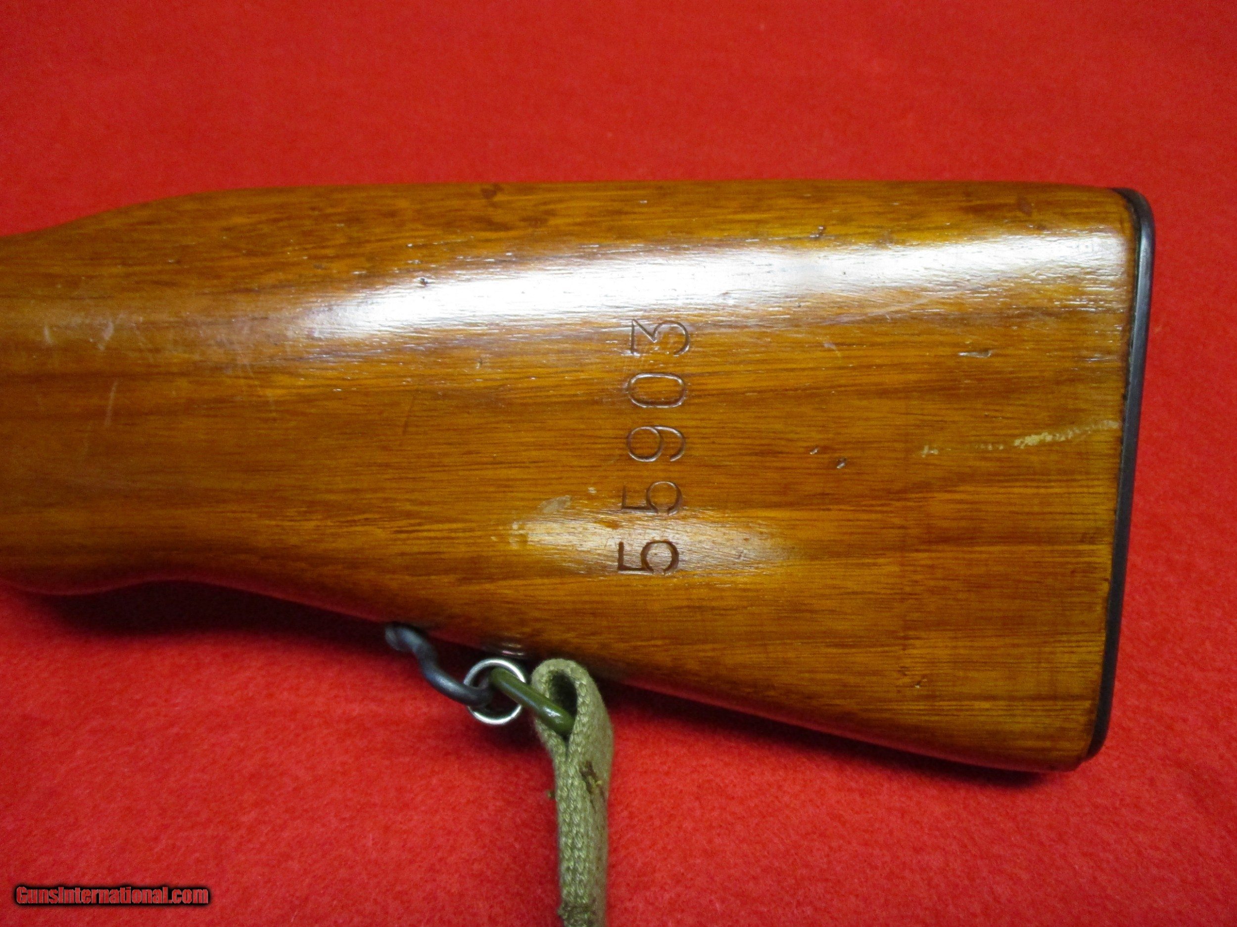 Description: The SKS is one of the most famous of Soviet/Russian designs. The rifle was already at the prototype/field testing stage at the end of World War 2. Although no longer in production in its country of origin, the SKS was produced in large quantities by the Chinese. This example has the sought-after screw in barrel as opposed to the pinned barrel type. The original bayonet has been removed as was often the case during the assault ban years. Importers would take the bayonet off the rifle and sell them separately with the intention that the buyer of the rifle would buy the bayonet and put it on their rifle once the ban expired. The 20” barrel, having been manufactured by the Chinese, will be chrome lined to protect the bore from corrosive ammo, unlike the original Russian SKS rifles. Oddly, the manufacturer’s mark is double stamped on the left side of the receiver. The rifle comes with a green sling, box, manual, ammo bandolier, cleaning kit tube (inside the buttstock), and 12 stripper clips. There is currently no cleaning rod though these are easy to find as aftermarket parts. This rifle is in excellent with a notably clean bore. It has likely never been fired. SOLD Manufacturer: Norinco Model: SKS Serial Number: 24155903 Caliber Info: 7.62x39mm Bore: Rifled - 4 groove Condition: Used - Excellent Barrels: 20.0 inches (508mm) Action: Semi-Auto Stock: Wood Fore End: Wood Butt Pad: Metal plate LOP: 12.25 inches (311mm) Finish: Blued Weight: 8.5 lbs. Sights: Hooded post front, tangent notch rear graduated from 100-1000m. Radius 18.9in (480mm) Extras: Ammo bandolier, sling, 12 stripper clips Case: Norinco box |