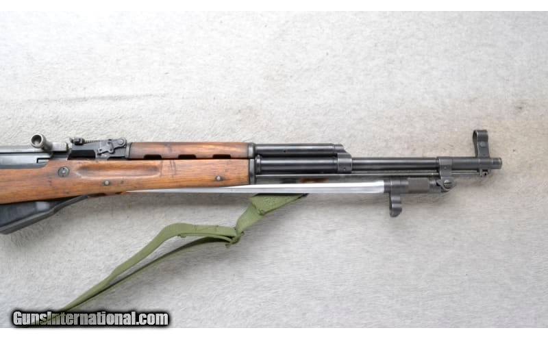 Description: This Norinco Model SKS is a right hand semi-auto rifle in 7.62x39mm Cal. It has a 20 inch barrel. A ringed adjustable post front sight and a numbered sliding adjustable notch middle sight. The butt stock is a smooth grip hardwood pistol grip. The forearm is a smooth grip two piece hardwood with finger grooves. 7.62X39mm SOLD Chambers: Hinged magazine cover. Metal Condition: Good. Wood Condition: Good. Bore Condition: Excellent. Barrels: 20 inch. Stock Dimensions: LOP 12 1/2 inches. Fore End: Smooth grip two piece hardwood with finger grooves. Butt Pad: Smooth steel cap with hinged door that contains a cleaning kit. Weight: 8 lb. 8 Oz. Sights: Ringed adjustable post front. Numbered sliding adjustable notch middle. Item Location: Richfield, WI |