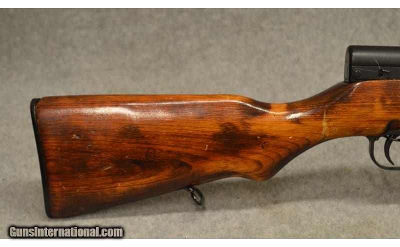 Description: For your consideration is a Russian SKS-45 chambered in 7.62x39mm. Developed in the final months of the Second World War by Sergei Simonov the SKS is often over-shadowed by the AK-47 when one thinks about Soviet arms during the Cold War. However, the SKS and its variants saw multiple conflicts throughout the years, gaining a reputation for its simple manual of arms, reliability and strong milled construction, as well gaining favor among the American market when they began being imported into the country. This particular example is in beautiful condition featuring a mirror bright bore. Whether you're a serious military arms collector or just looking for a fun plinker this firearm would make a fine addition to your collection. 7.62x39mm SOLD Metal Condition: Very good Wood Condition: Very good Bore Condition: Excellent Barrels: 20" Barrel Stock Dimensions: 12-3/8" LOP Fore End: Wooden Butt Pad: Steel Weight: 8.5 lbs Sights: Iron Sights Item Location: Berlin |