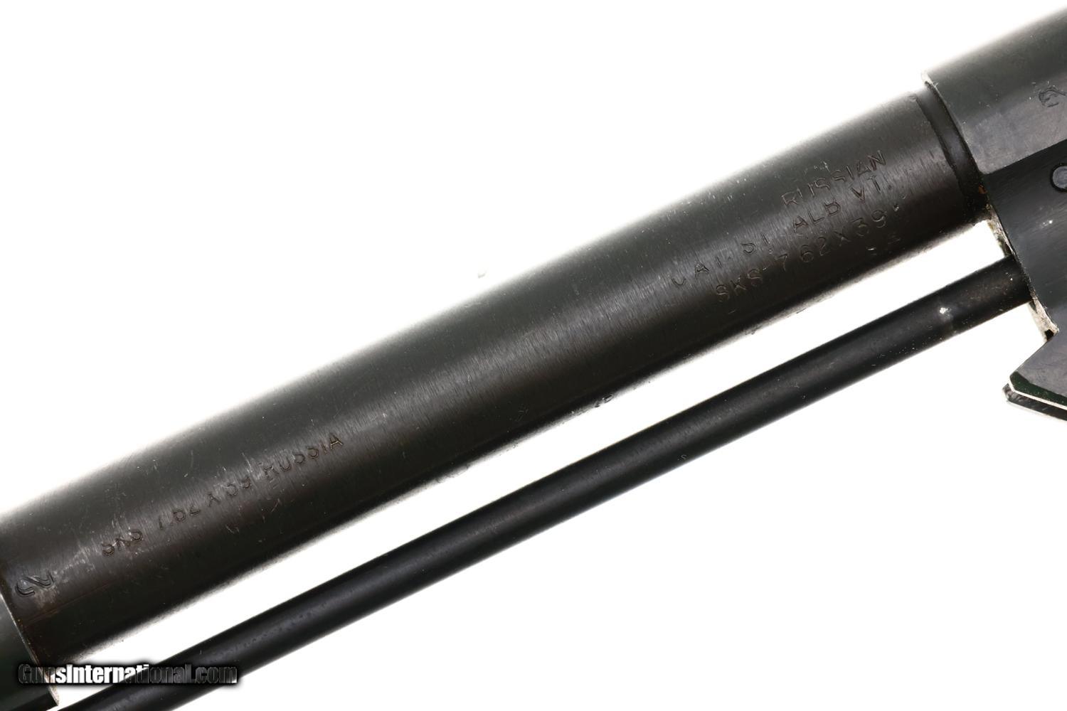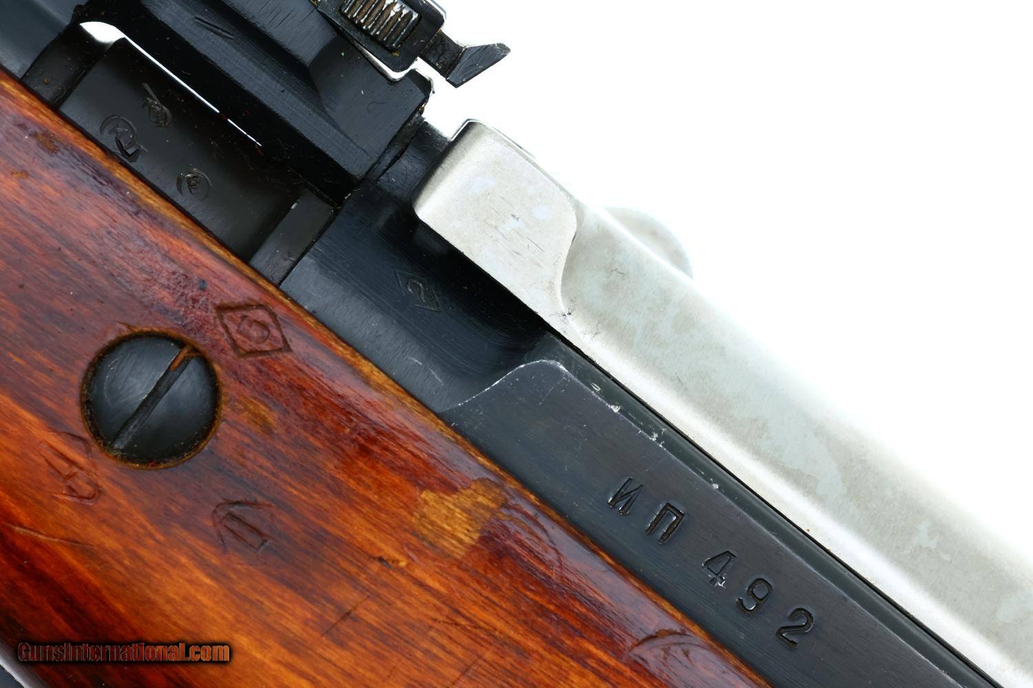 Description: Synopsis: This all original and all-matching Tula Arsenal SKS made in 1953, is a post-WWII Russian semi-automatic rifle chambered in 7.62x39mm, with a 20.5-inch barrel, adjustable sights, and a folding bayonet. A classic Russian rifle from the early post-war period that is no longer importable. Description: Standard configuration and all-matching Russian made Tula Arsenal SKS semi-automatic rifle in 7.62x39mm caliber, manufactured 1953, SN:56, with 20.5-inch barrel, height-adjustable post front sight and tangent rear sight graduated 1-10 for range. Top of receiver bridge marked w/ Tula Arsenal arrow w/in 5-pointed star and year marking 1953 followed by Cyrillic "r". The right side of receiver shows serial number "492" with additional Cyrillic markings, proofs, and very faint import marks on the barrel. Fitted with hardwood stock, arsenal marking, year of production and full SN on left side of buttstock, military-style finish, and blued metal trapdoor buttplate. Ten-round fixed magazine with hinged floorplate for stripper clip loading and folding spike-bayonet. Condition: Near excellent original condition with just a few small handling marks as typically found on these bulk-imported rifles from 50 years ago. Crisp, in-the-white bolt, without staining. Laminated stock hardwood stock with scattered handling scuffs as carefully pictured. Bright bayonet without any discoloration or suggestion of polishing. Mirror bore. Correct manual mechanics. A wonderful Russian made SKS rifle from the Tula Arsenal in 1953, no longer importable into the United States. Curio/Relic: Yes Manufacturer: Tula Arsenal Model: SKS Serial Number: 492 Caliber Info: 7.62x39mm Condition: VG-EXC Price: $1,795.00 Contact Seller |