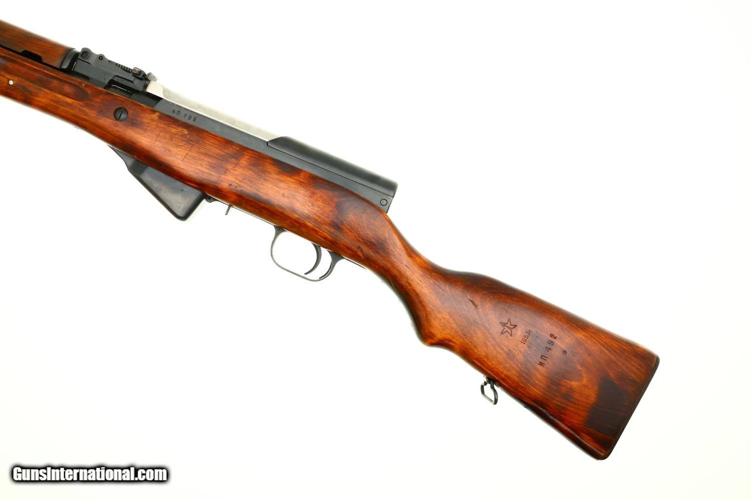 Near excellent original condition with just a few small handling marks as typically found on these bulk-imported rifles from 50 years ago. Crisp, in-the-white bolt, without staining. Laminated stock hardwood stock with scattered handling scuffs as carefully pictured. Bright bayonet without any discoloration or suggestion of polishing. Mirror bore. Correct manual mechanics. A wonderful Russian made SKS rifle from the Tula Arsenal in 1953, no longer importable into the United States.