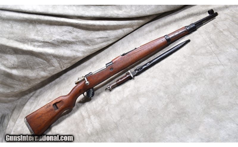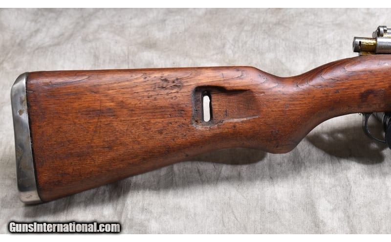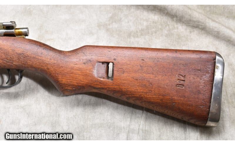 Description: The M48 was a Yugoslavian variant of the Mauser 98k but not interchangeable. The metal on this one features clear stampings, proper military sights, and the wood has a number of nicks and dents. It has a bayonet with it. 8mm Mauser SOLD Chambers: 5 Metal Condition: Good to very good. Wood Condition: Good. Bore Condition: A little bit rough but clean with "good enough" rifling. Barrels: 23-inch Triggers: Factory trigger. Stock Dimensions: 13-inch LOP. Fore End: 3/4 length hardwood stock with heat shield. Butt Pad: Steel plate. Weight: 8 lb - 11 oz Sights: Hooded bead and ladder type notch military sights. Item Location: Rogers |