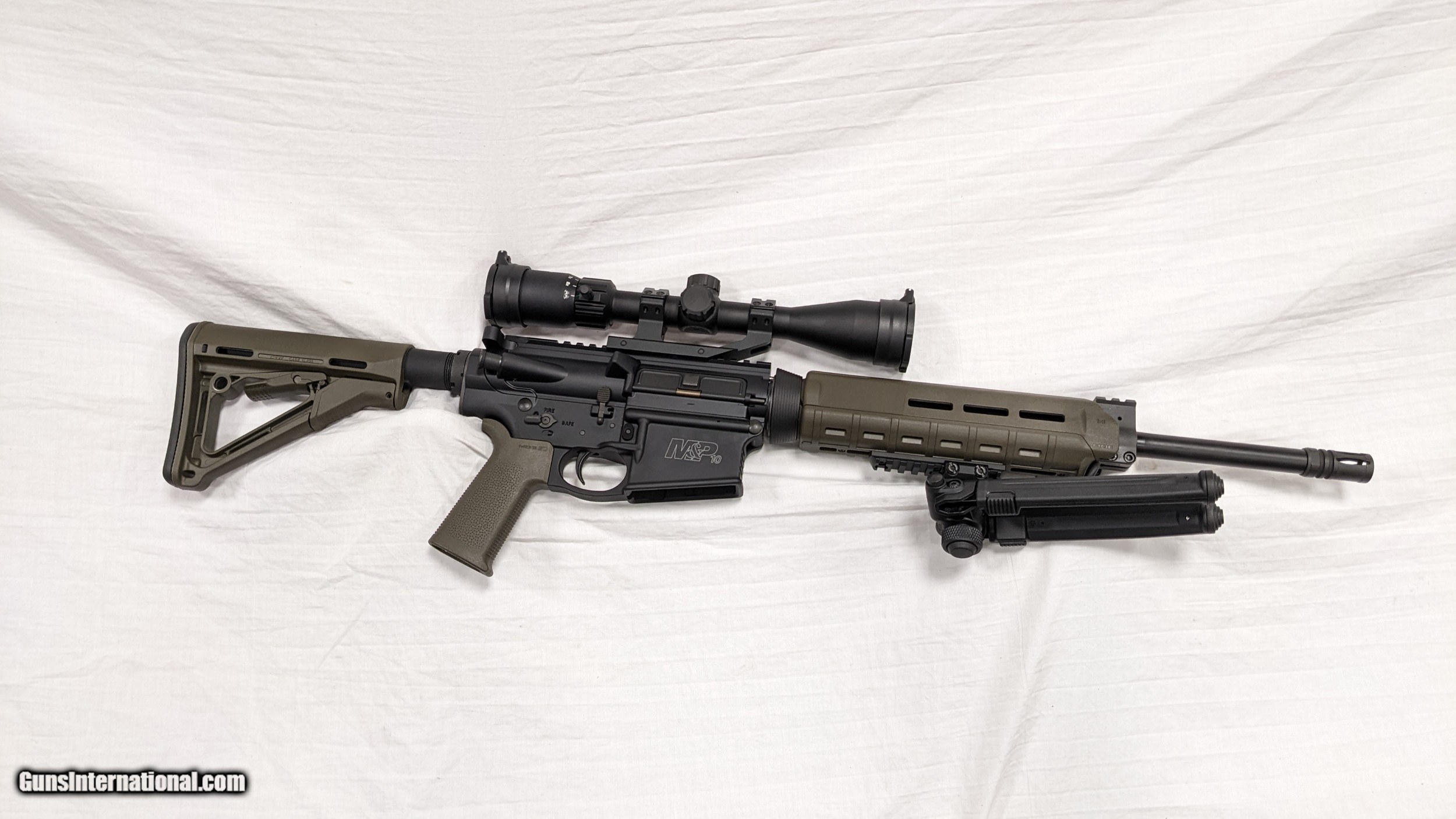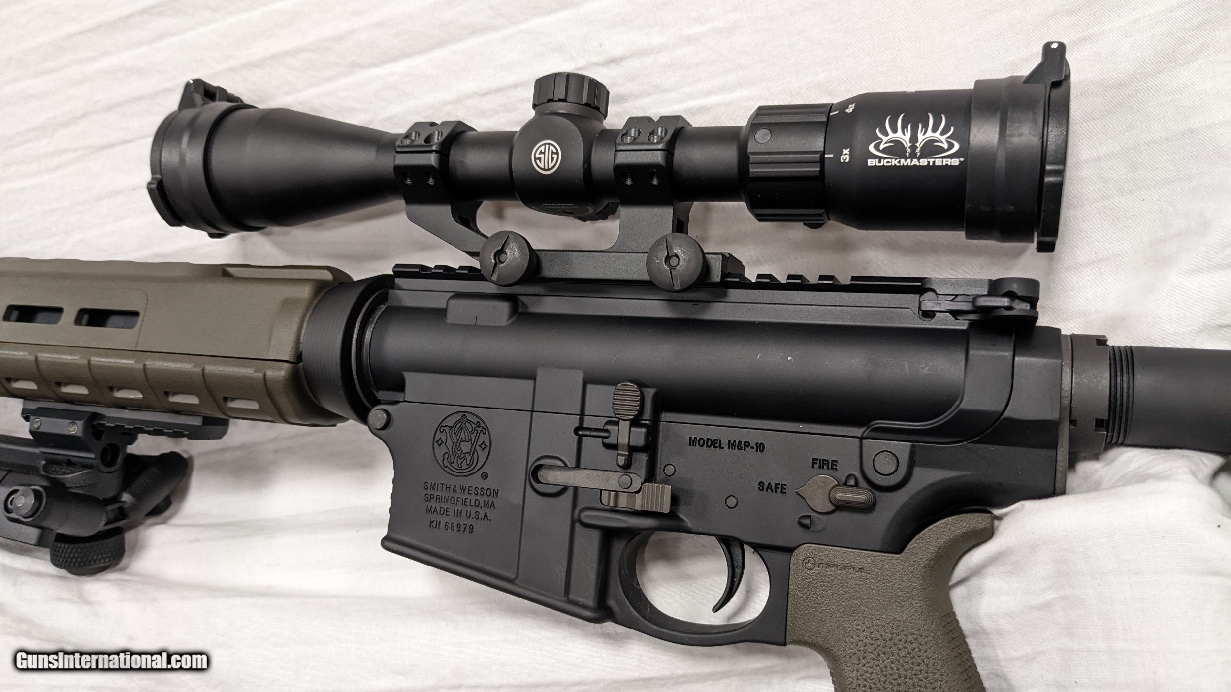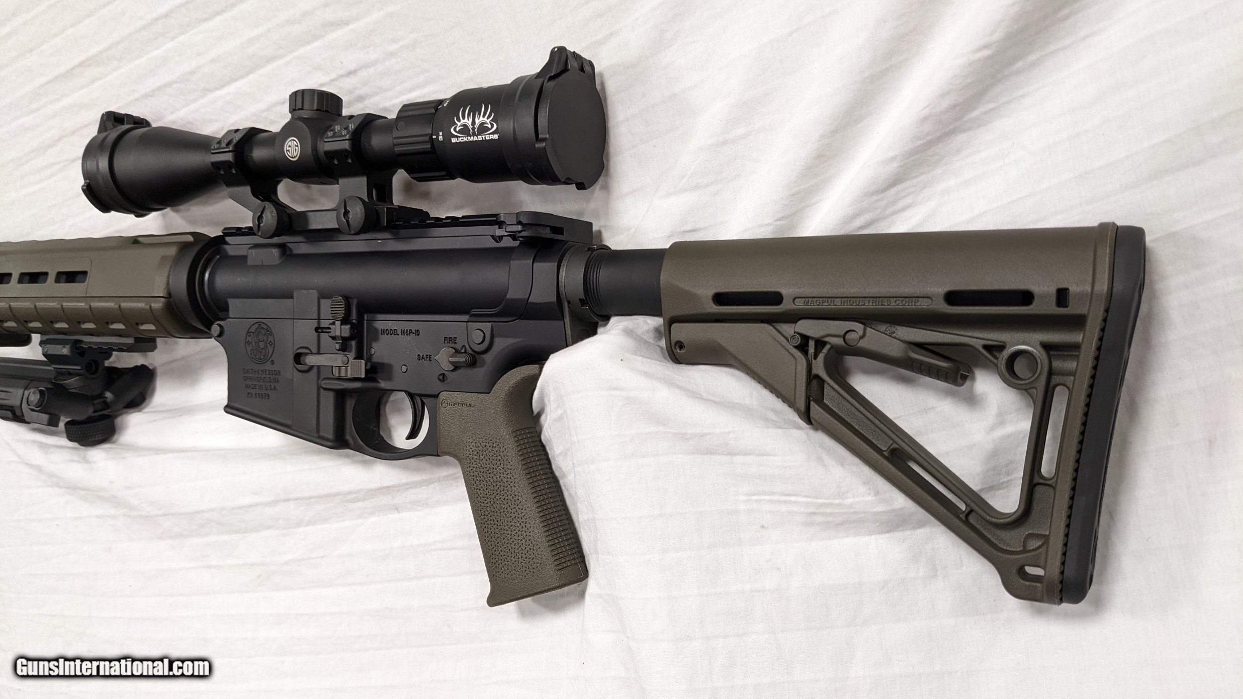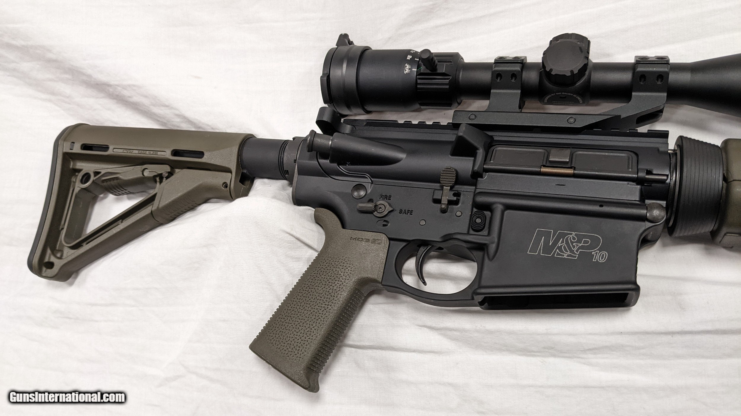 Description: Excellent condition. Includes bi-pod, scope, three magazines and original box. This is a used item. While we do not test fire our used firearms, we perform an inspection and function check to determine the firearm is fully functional to the best of our ability. Please call with any questions. If you are interested in purchasing this item, please give us a call. Please have the "Seller #" and/or "Guns International #" ready along with the contact information for the FFL you'd like the item shipped to. For Sale from First State Firearms & Accessories AKA The Gun Shop in New Castle, DE. Shipping is $35.00. SOLD Rifle Caliber: .308 Winchester Manufacturer: SMITH & WESSON Model: M&P-10 SPORT OPTICS READY Serial Number: KN68979 Barrel Length: 16 INCH Condition: USED, VERY GOOD Barrels: 1:10 TWIST | 5R RIFLING Barrel Type: 4140 STEEL Action: SEMI-AUTO Stock: MAGPUL MOE OD GREEN Fore End: MAGPUL MOE OD GREEN Extras: X1 MAGPUL 20RD MAGAZINE, X2 HEX 20RD MAGAZINES, SCOPE, BIPOD Case: ORIGINAL BOX |