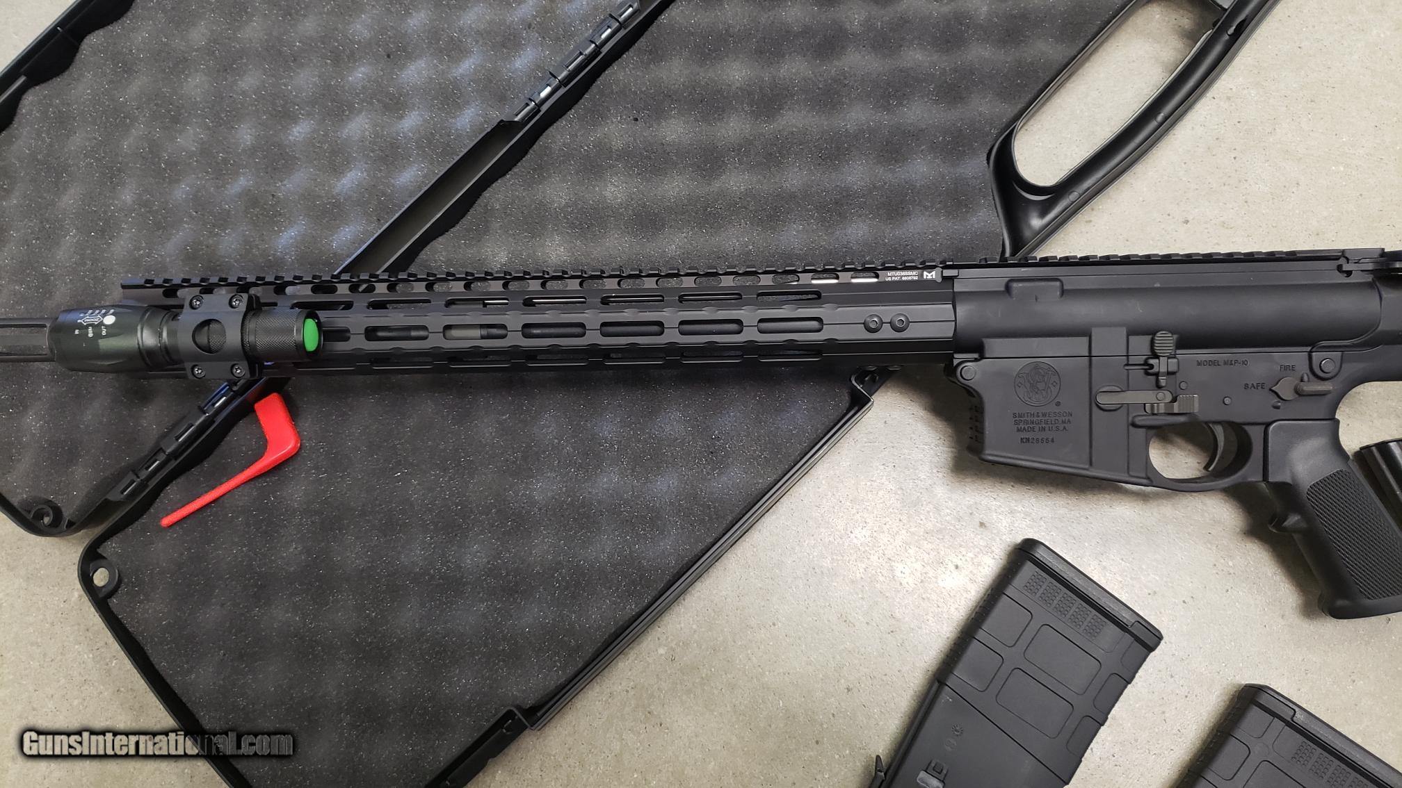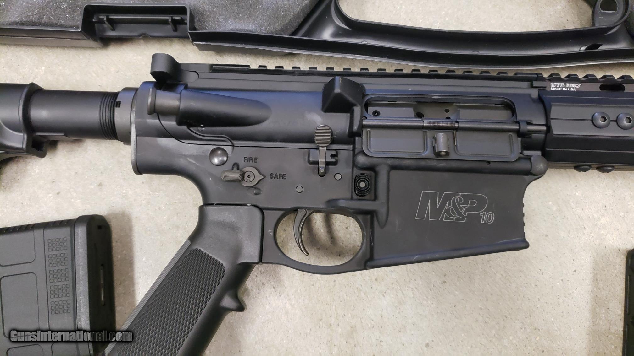 Description: Guns Listing ID: 733316 Like New with original box. Comes with upgrade UTG handguard, tactical light, sling mounts, 2 extended magazines and 3 other mags! Smith & Wesson M&P10 Semi Auto Rifle .308 Win/7.62x51mm NATO 18\" Lightweight Profile Barrel 10 Rounds Synthetic Hand Guards 6 Position Collapsible Stock Black SOLD Manufacturer: SMITH & WESSON Model: M&P10 OPTIC READY Caliber Info: .308 WIN/7.62MM NATO Condition: Used - Non-Certified Barrels: 18 BARREL |