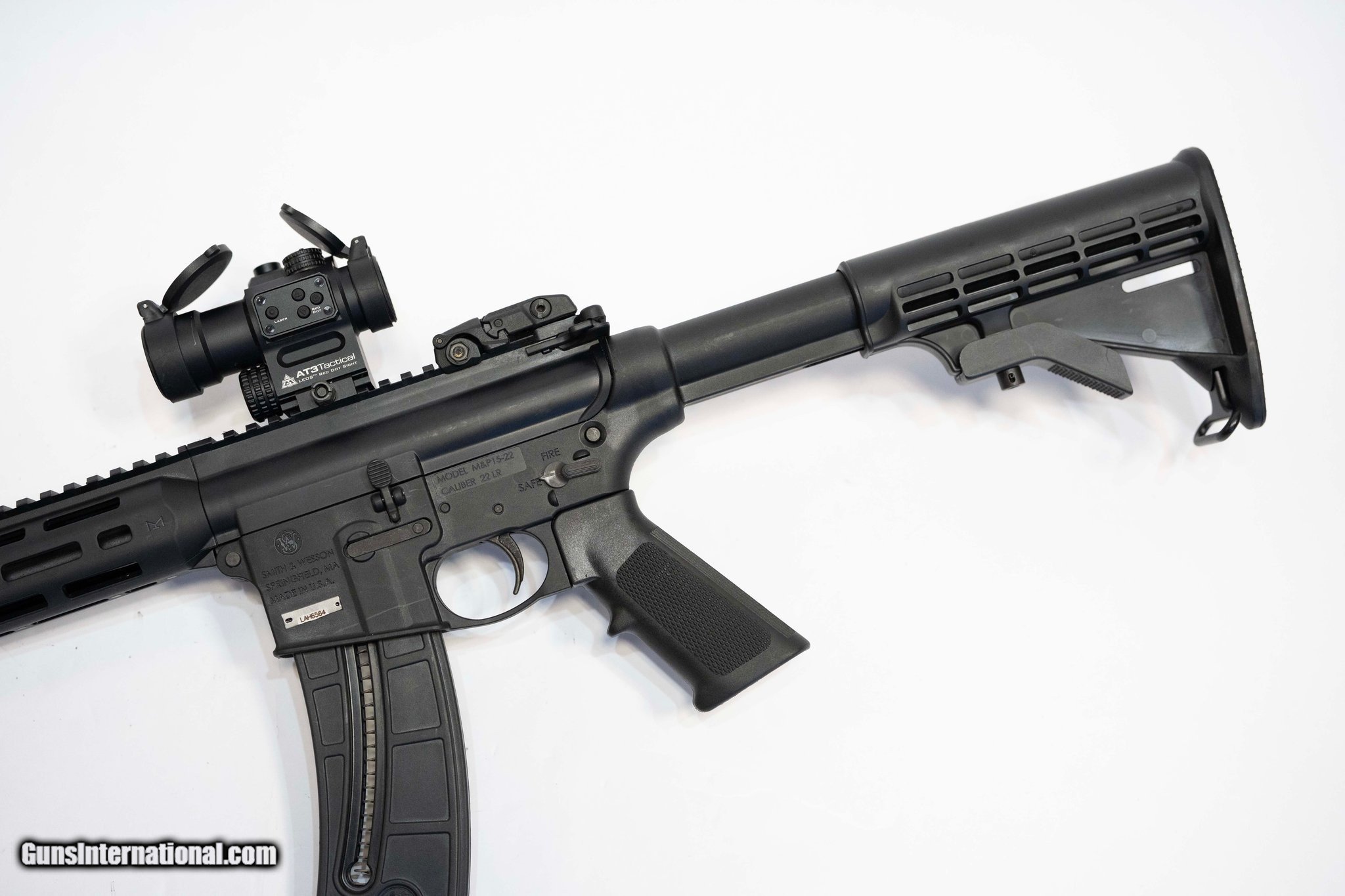 Description: Guns Listing ID: 567587 Smith & Wesson M&P 15-22 – .22 LR, M-LOK Rail, Flip-Up Sights, AT3 Red Dot Lightweight AR-style .22 LR rifle featuring a 16\" barrel, black finish, free-floating M-LOK handguard, and factory flip-up front/rear sights. Outfitted with an AT3 Tactical red-dot optic for fast target acquisition. Includes one detachable magazine. Perfect for training, plinking, or small-game hunting. SOLD Manufacturer: SMITH & WESSON Model: 15-22 Caliber Info: .22 LR Condition: Used - Non-Certified Barrels: 16" BARREL Action: SEMI AUTOMATIC Finish: black |