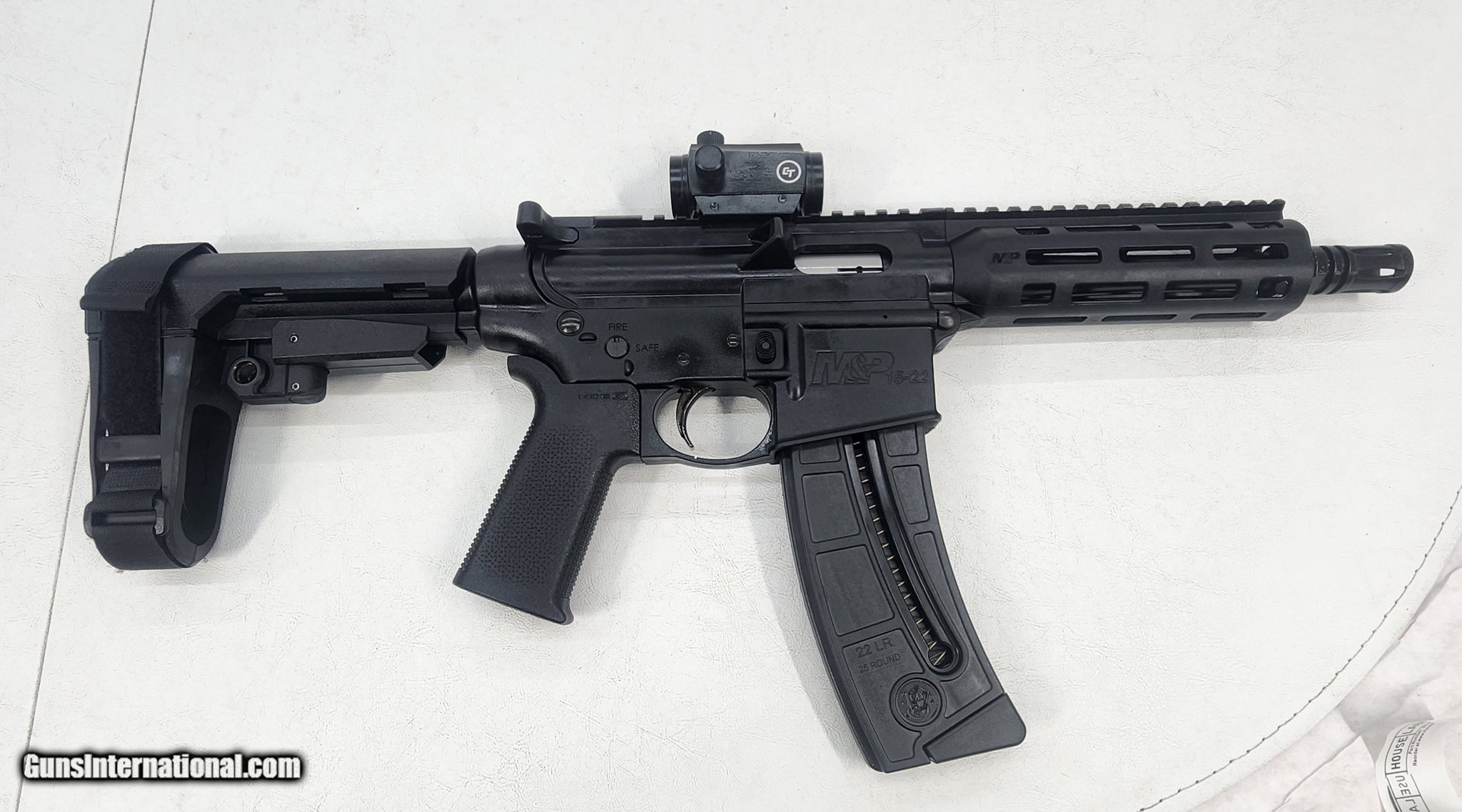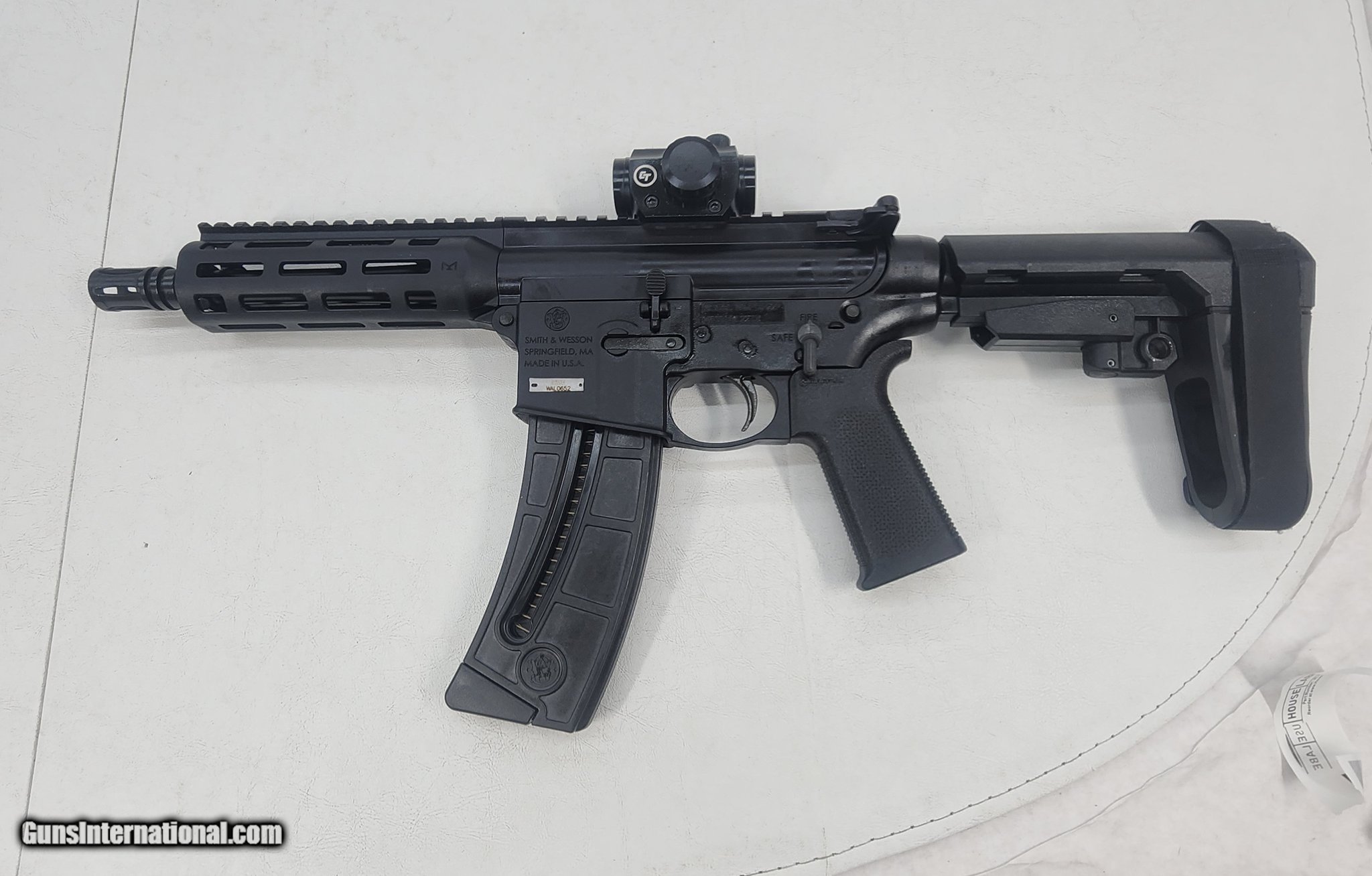 Description: Guns Listing ID: 524294 M&P® Handguard with M-LOK® Slots 2 Position, Receiver-Mounted Safety Lever Functioning Charging Handle and Shell Deflector SB Tactical SBA3 Adjustable Arm Brace With Closure Strap Magpul® MOE SL® Grip Full Length Picatinny-Style Rail One-point QD Sling Swivel Attachment Point in Arm Brace Threaded Barrel with Flash Suppressor JPOOL SOLD Manufacturer: SMITH & WESSON Model: M&P 15-22 Caliber Info: .22 LR Condition: Used - Non-Certified Barrels: 9.5 Action: SEMI AUTOMATIC Finish: black |