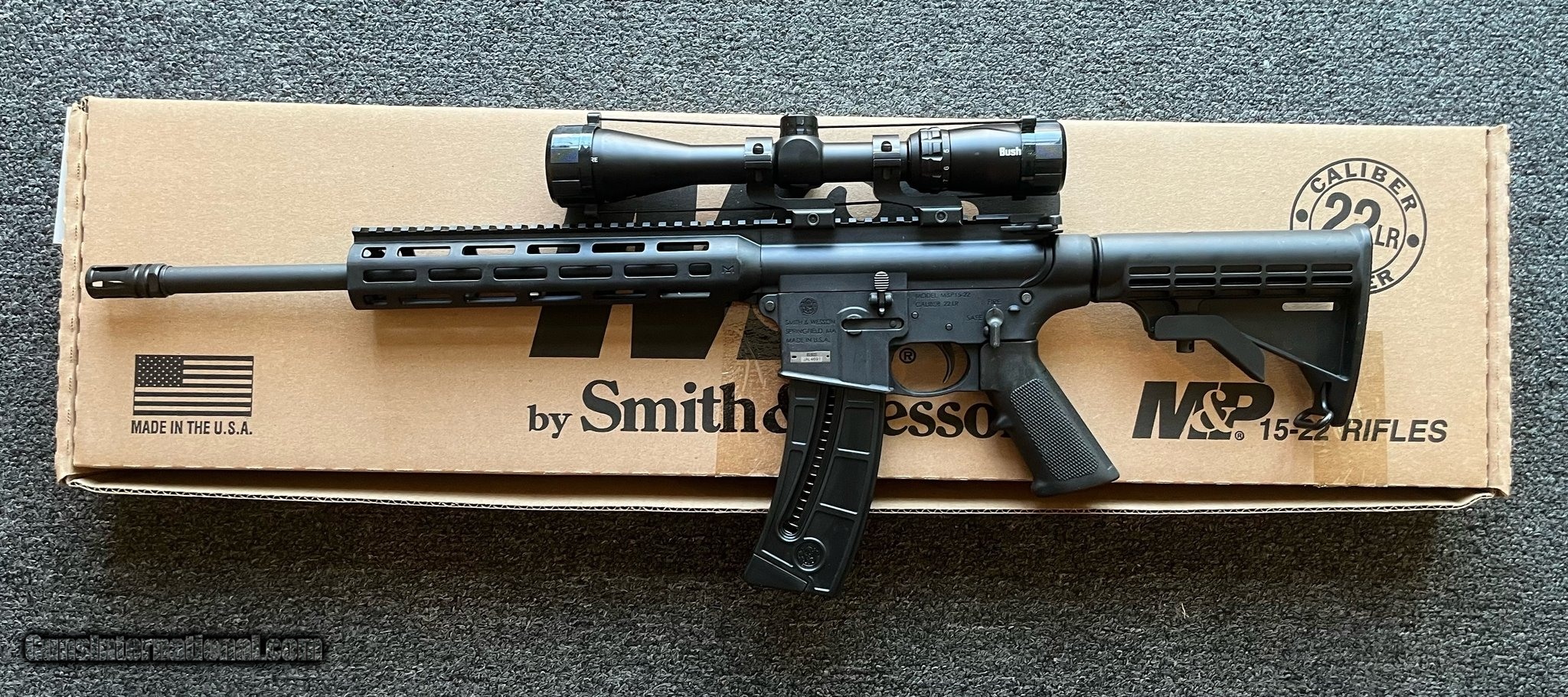 Description: Guns Listing ID: 1357413 Used Smith and Wesson M&P15-22 22LR 1-25RD magazines comes with Bushnell Rimfire 3-9X40MM scope and mount Factory box included SOLD Manufacturer: SMITH & WESSON Model: M&P15-22 Caliber Info: .22 LR Condition: Used - Non-Certified Barrels: 16 BARREL Finish: BLACK |
