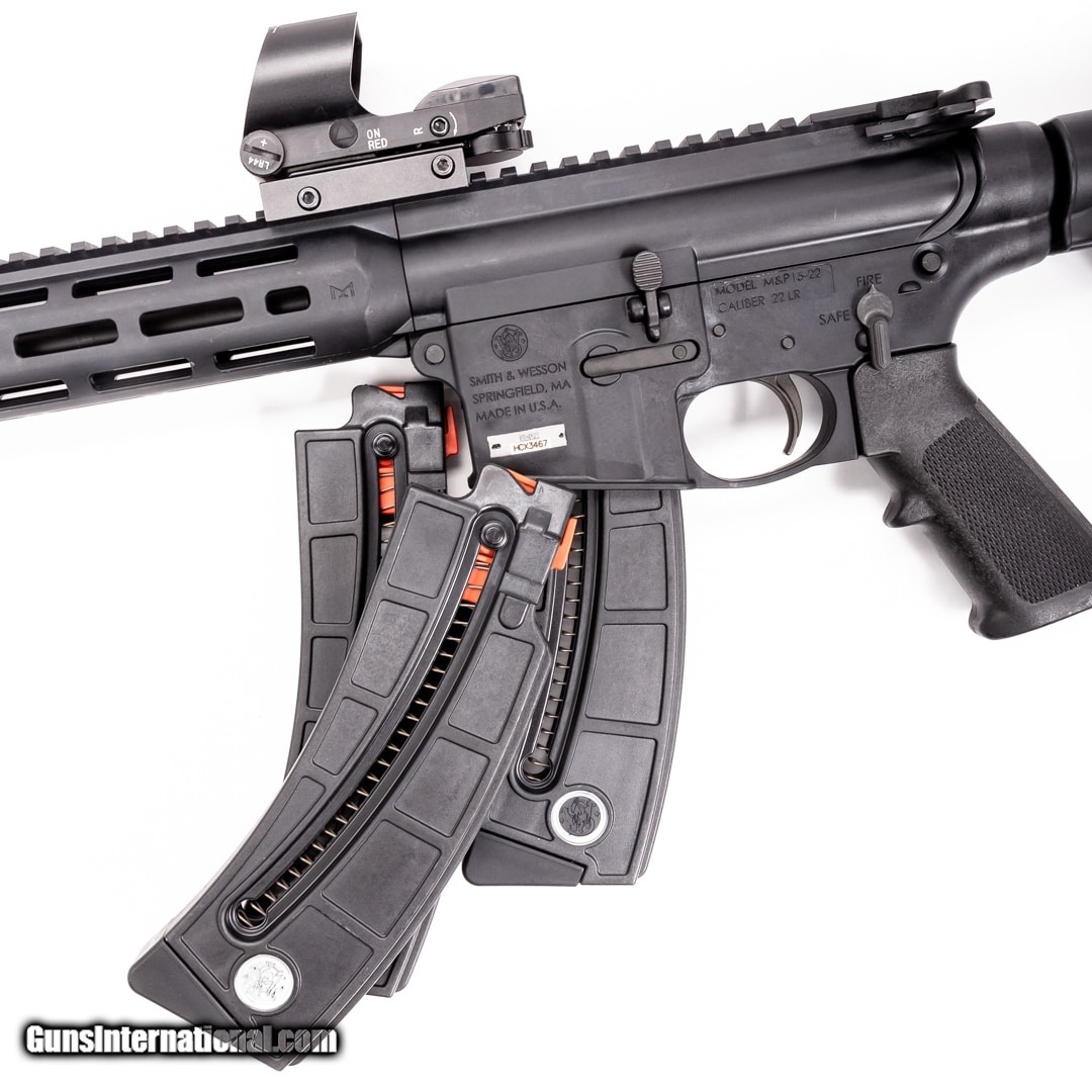Description: Guns Listing ID: 332679 The Smith & Wesson M&P 15-22 is a 22 LR variant of the full-size M&P 15 chambered in 5.56 NATO. This rifle makes a great training tool, small game hunting rifle, and fun plinking rifle. This M&P15-22 has an adjustable stock and a red or green holographic sight. it is in very good condition and comes with three 25-round magazines. SOLD Manufacturer: SMITH & WESSON Model: M&P15-22 Caliber Info: .22 LR Condition: Used - Certified Barrels: 16.5 BARREL Finish: BLACK |