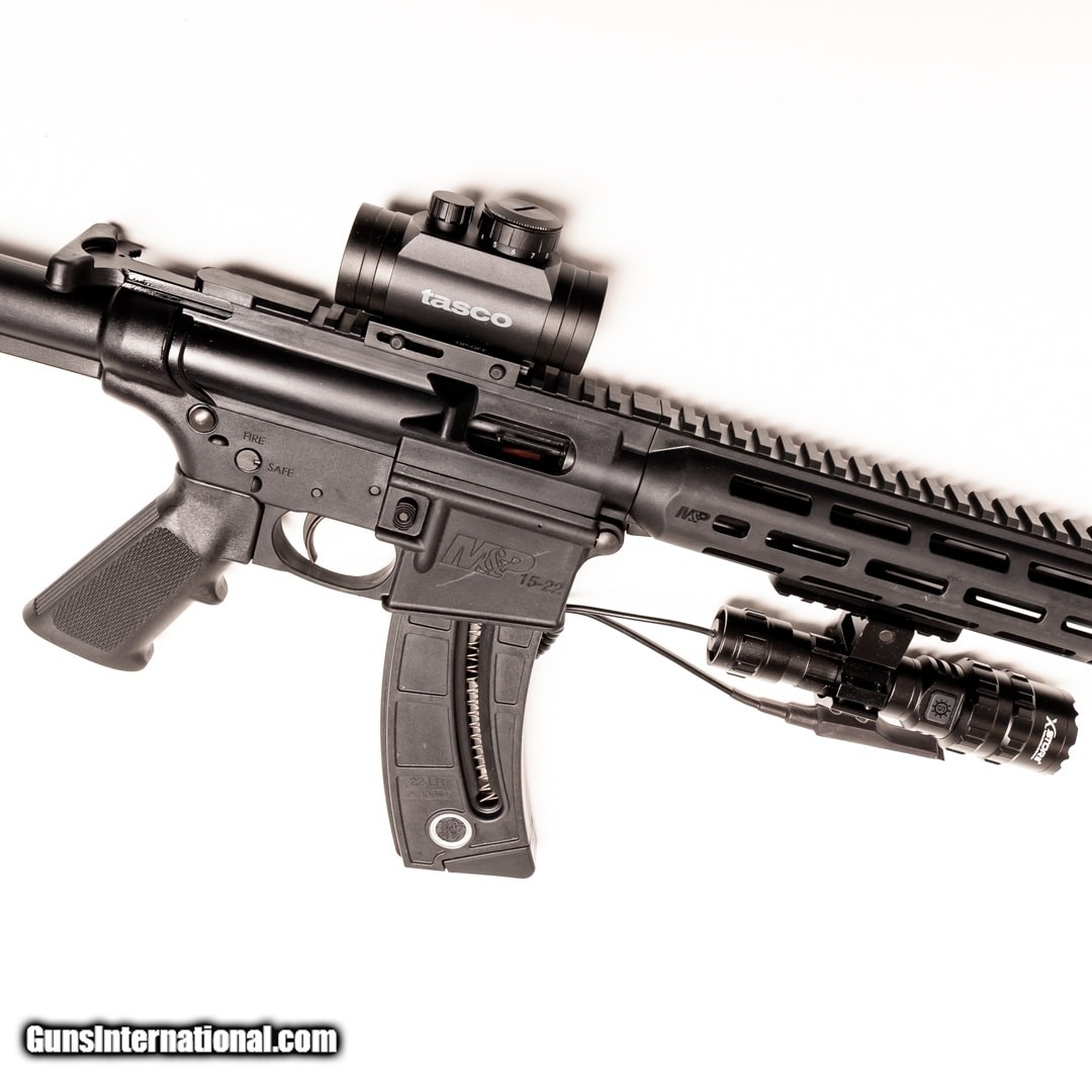 Description: Guns Listing ID: 591216 The Smith & Wesson M&P 15-22 is a 22 LR variant of the full-size M&P 15 chambered in 5.56 NATO. It makes a great training tool, small game hunting rifle, and fun plinking rifle. This M&P15-22 is equipped with a ProPoint red dot and an Xstore XF185 light with pressure switch. It‚‚s in excellent condition and includes the original box, manuals, and one 30-round magazine SOLD Manufacturer: SMITH & WESSON Model: M&P15-22 Caliber Info: .22 LR Condition: Used - Certified Barrels: 16 BARREL Finish: BLACK |