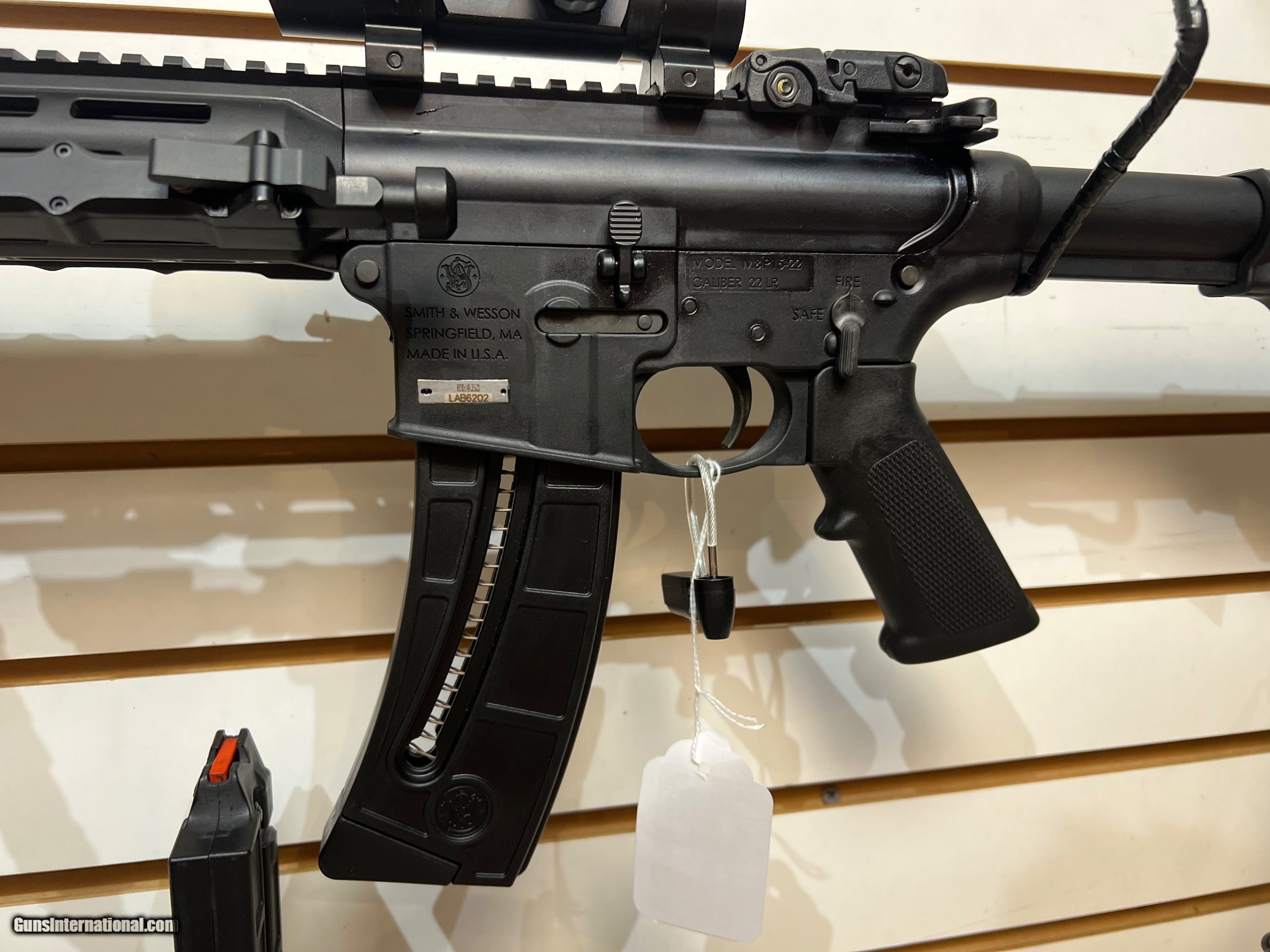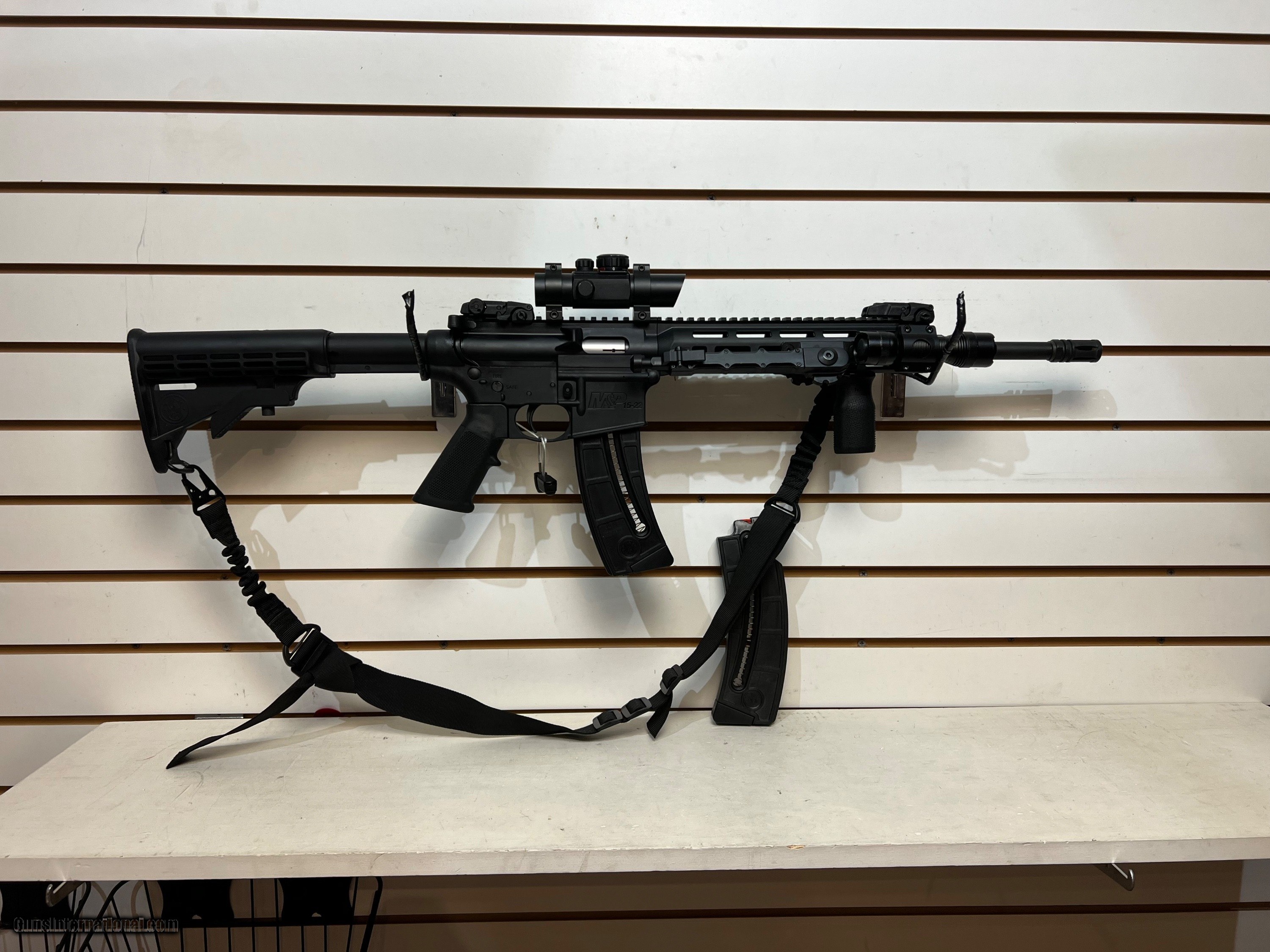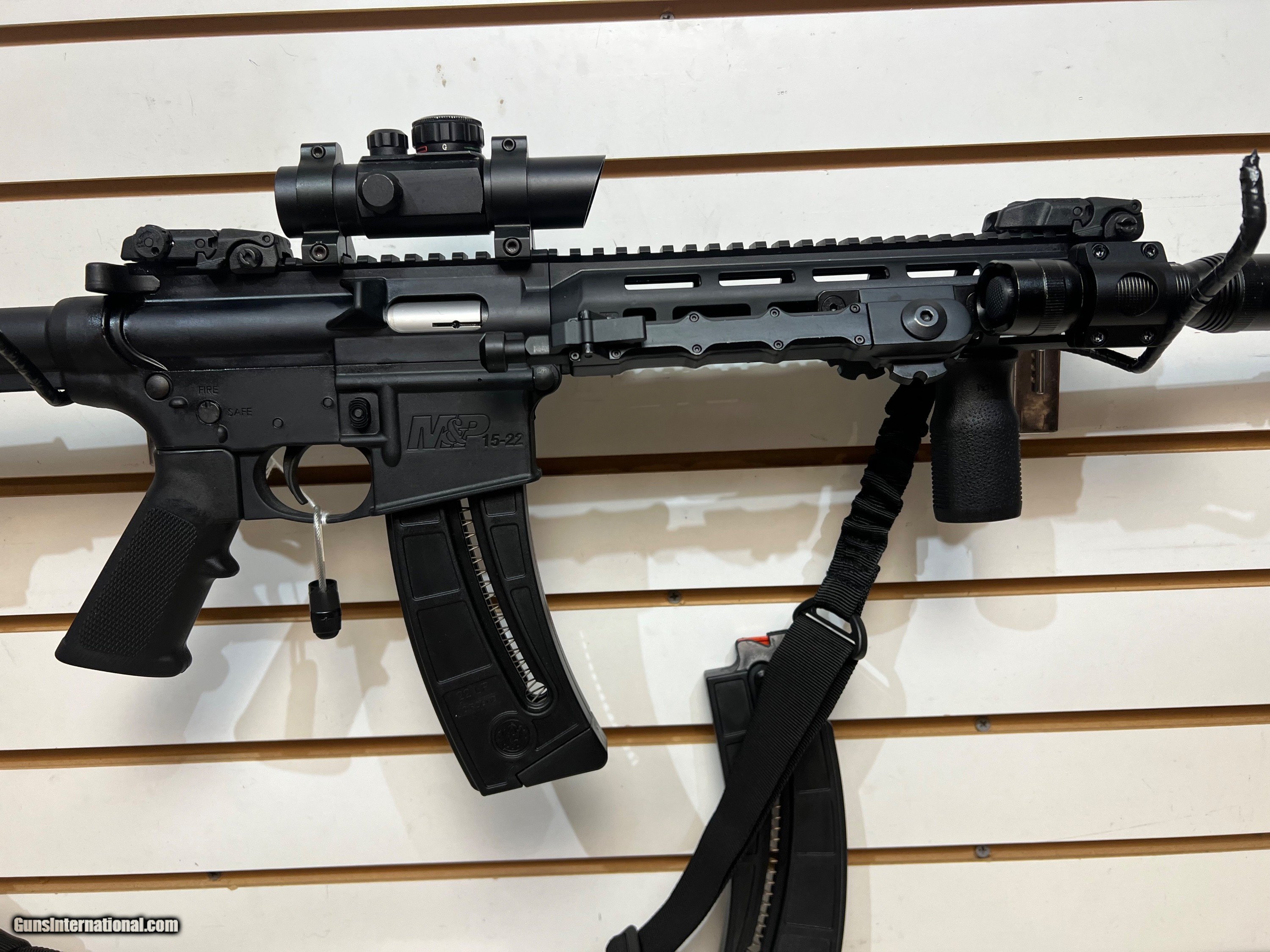 Used Smith & Wesson M&P 15-22 Bipod, Magpul Forgrip, flipsights, center point optic, flashlight, 2 Magazines