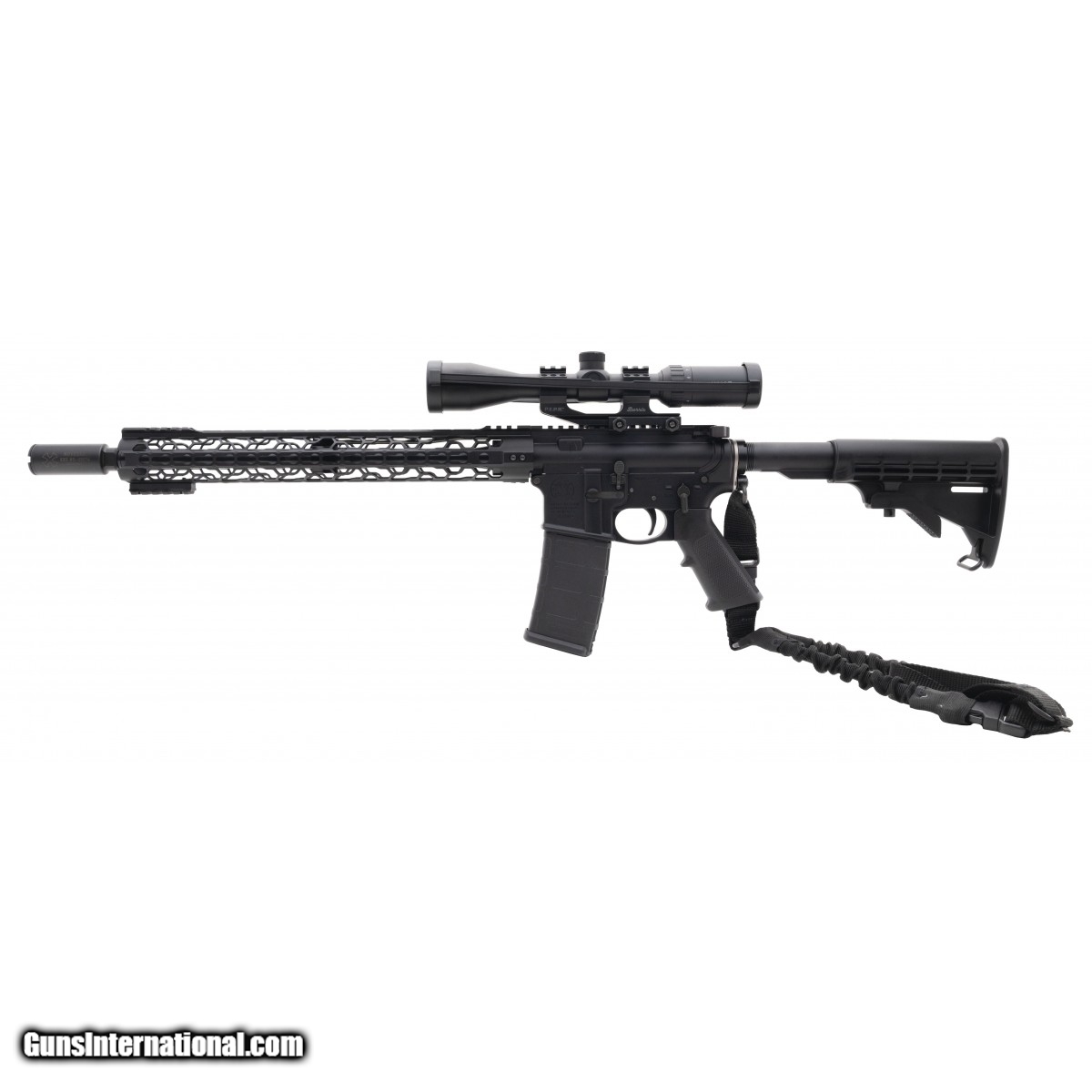 SN:TF72064. Semi-auto rifle with a 16"" barrel. Overall in very good condition, with a Noveske blast can, a DIN works rail, a HAWKE scope on a P.E.P.R. mount and a single point sling.