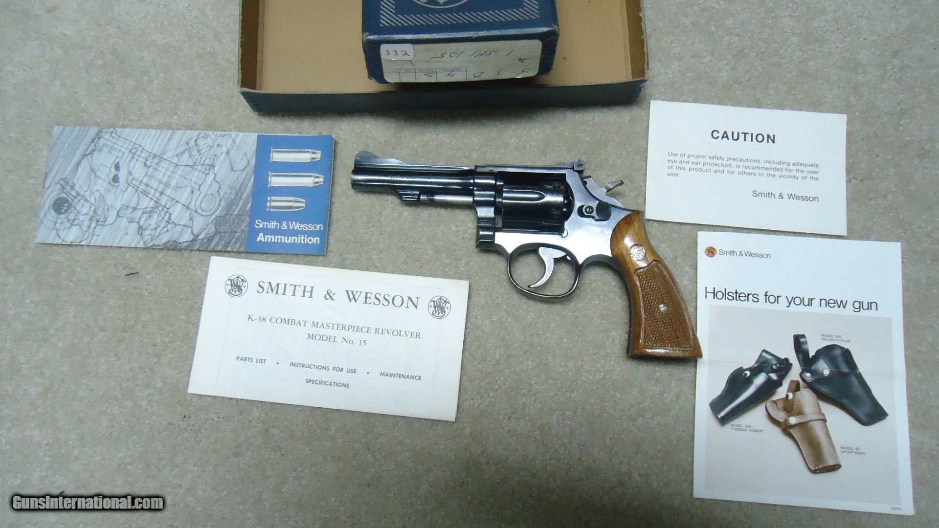 MODEL 15-3 COMBAT MASTERPIECE .38 SPECIAL, 4" TARGET SIGHTED REVOLVER WITH BOX, #15K1XXX, MADE 1977