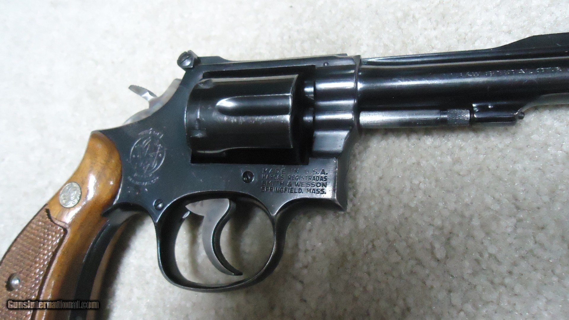 Description: MODEL 15-3 COMBAT MASTERPIECE .38 SPECIAL, 4" TARGET SIGHTED REVOLVER WITH BOX, #15K1XXX, MADE 1977. This fine 1970s S&W shows just some very light edge/carry wear with nice case colors on the hammer and trigger. Bright bore and tight action, exc. grips. Fantastic 1970s fit, finish and lock work/tuning with original box with matching end label etc. all in excellent condition with correct paperwork originally shipped with this revolver. SOLD Handgun Caliber: .38 Special Manufacturer: SMITH & WESSON Model: MODEL 15-3 Serial Number: 15K1XXX Barrel Length: 4 Condition: FINE+ Bore Condition: EXCELLENT |