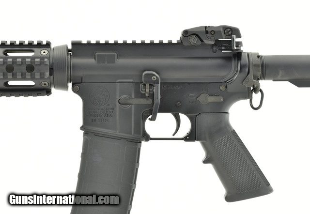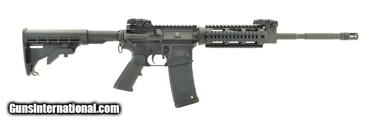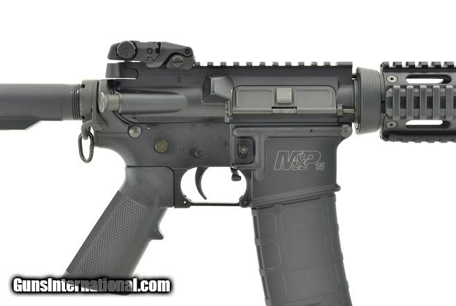 Description: S&W M&P 15 Sport II 5.56mm caliber rifle. With quad rail, flip up sights and ASAP sling plate in good condition.