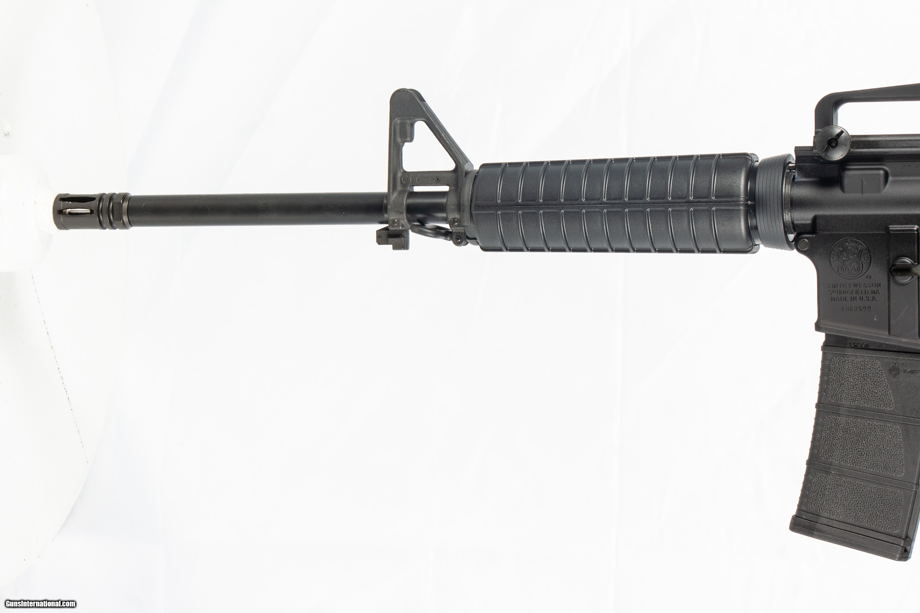 A S&W M&P-15 chambered for 5.56mm NATO with a 16 1/4 inch barrel with a bright and shiny bore. This firearm is in excellent condition and is covered by Dury's Lifetime Warranty.