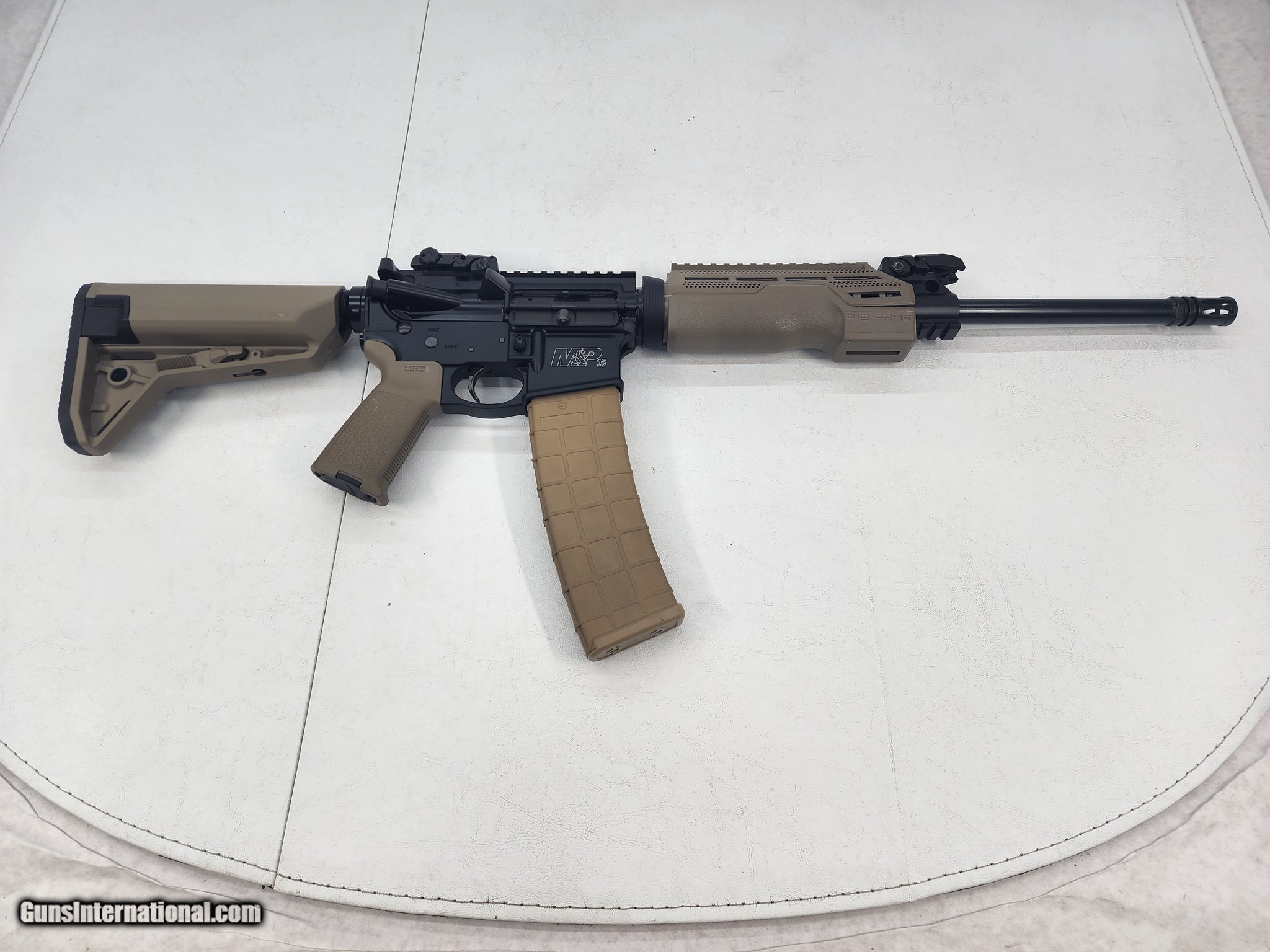 Description: Guns Listing ID: 1318314 S&W M&P15 Rifle is the ideal modern sporting rifle. It is versatile, reliable, and built to perform multiple uses under various conditions. It is also lightweight and rugged which embodies the best combination of function and form. The M&P15-22 Sport Magpul MOE SL model features a polymer frame with a full length optic-ready top rail. It has a Magpul MOE SL six-position stock, 10\" M&P slim handguard with M-LOK, removable Magpul MBUS folding sights, MOE SL pistol grip, 2\" M-LOK rail covers, two-position safety lever JPOOL SOLD Manufacturer: SMITH & WESSON Model: AR 15 M&P 15 5.56 NATO Caliber Info: .223 REM/5.56 NATO Condition: Used - Non-Certified Barrels: 18 BARREL Finish: FDE |