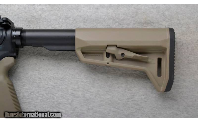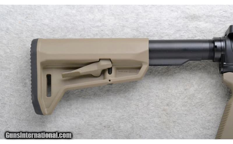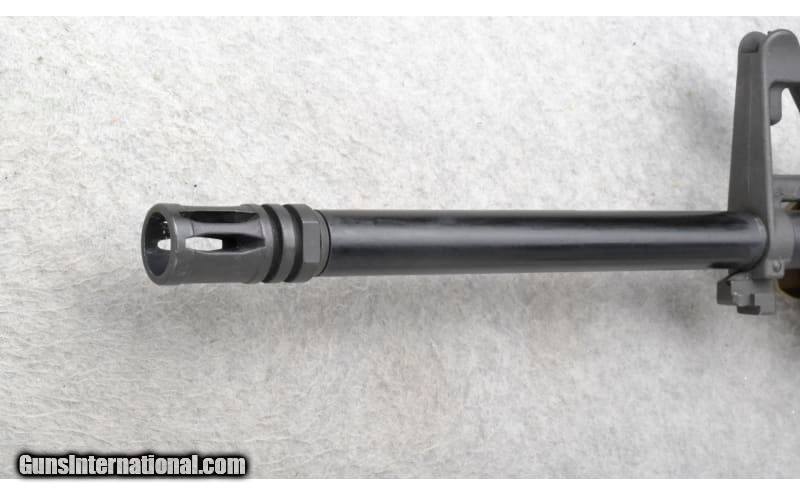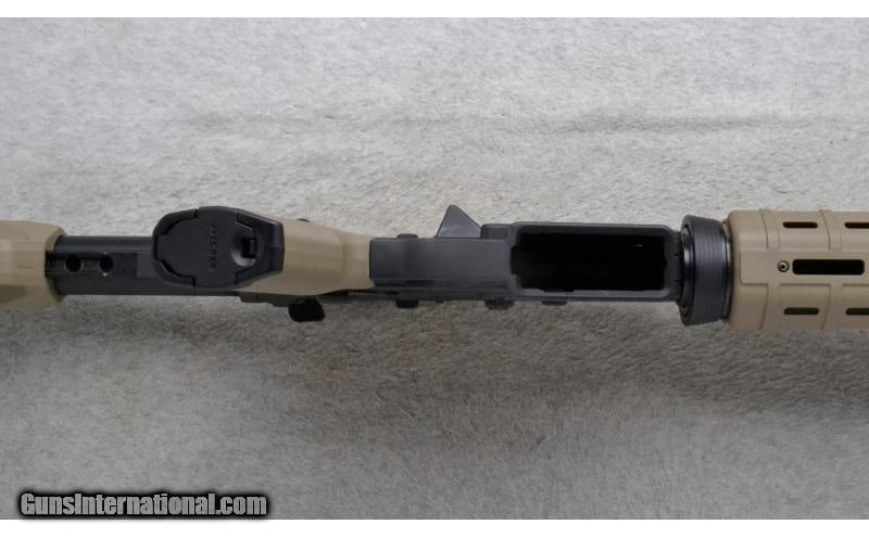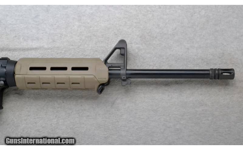 Description: This Smith & Wesson Model M&P-15 is a right hand semi-auto rifle in 5.56 NATO Cal. It has a 16 inch barrel plus a muzzle device and with a 1/9 twist. An adjustable post front sight with protective sides and an adjustable flip up rear sight. The LOP is adjustable, and it has a tan rubber full pistol grip. The forearm is a tan polymer with vent holes. 5.56x45mm NATO SOLD Chambers: 30 round magazine. Metal Condition: Fair. Appears to have some touched up handling/use marks. Bore Condition: Excellent. Barrels: 16 inch barrel plus a muzzle device and with a 1/9 twist. Stock Dimensions: LOP is adjustable. Fore End: MOE tan polymer with vent holes. Butt Pad: Ribbed black rubber. Weight: 6 lb. 8 oz. Sights: Adjustable post front with protective sides. Adjustable flip up rear. Item Location: Richfield, WI |