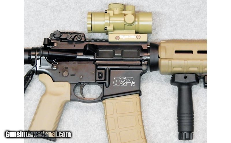 Description: Smith & Wesson ~ M&P-15 ~ Chambered in 5.56x45mm NATO. Is a semi-auto Armalite pattern modern sporting carbine. Features a16.5" barrel with a 1/2x28" threaded muzzle with an affixed bird cage flash hider, and is paired with a Monstrum red dot optic. Firearm has a black finish and is contrasted with a flat dark earth Magpul SL stock, flat dark earth Magpul MOE K2+ pistol grip, and a flat dark earth Magpul MOE handguard. Comes with generic hard case, sling, and two 30 + 1 capacity magazines. 5.56x45mm NATO SOLD Chambers: 5.56x45 mm NATO. Metal Condition: Very good condition. Bore Condition: Good condition. Barrels: 16.5" inches. Triggers: 6.25 pounds. Stock Dimensions: 14" LOP. Fore End: "Magpul MOE, Polymer. Butt Pad: Rubber. Weight: 8.25 pounds Sights: Monstrum red dot optic. Chokes: 1/2x28" threaded. Item Location: Acworth, GA |