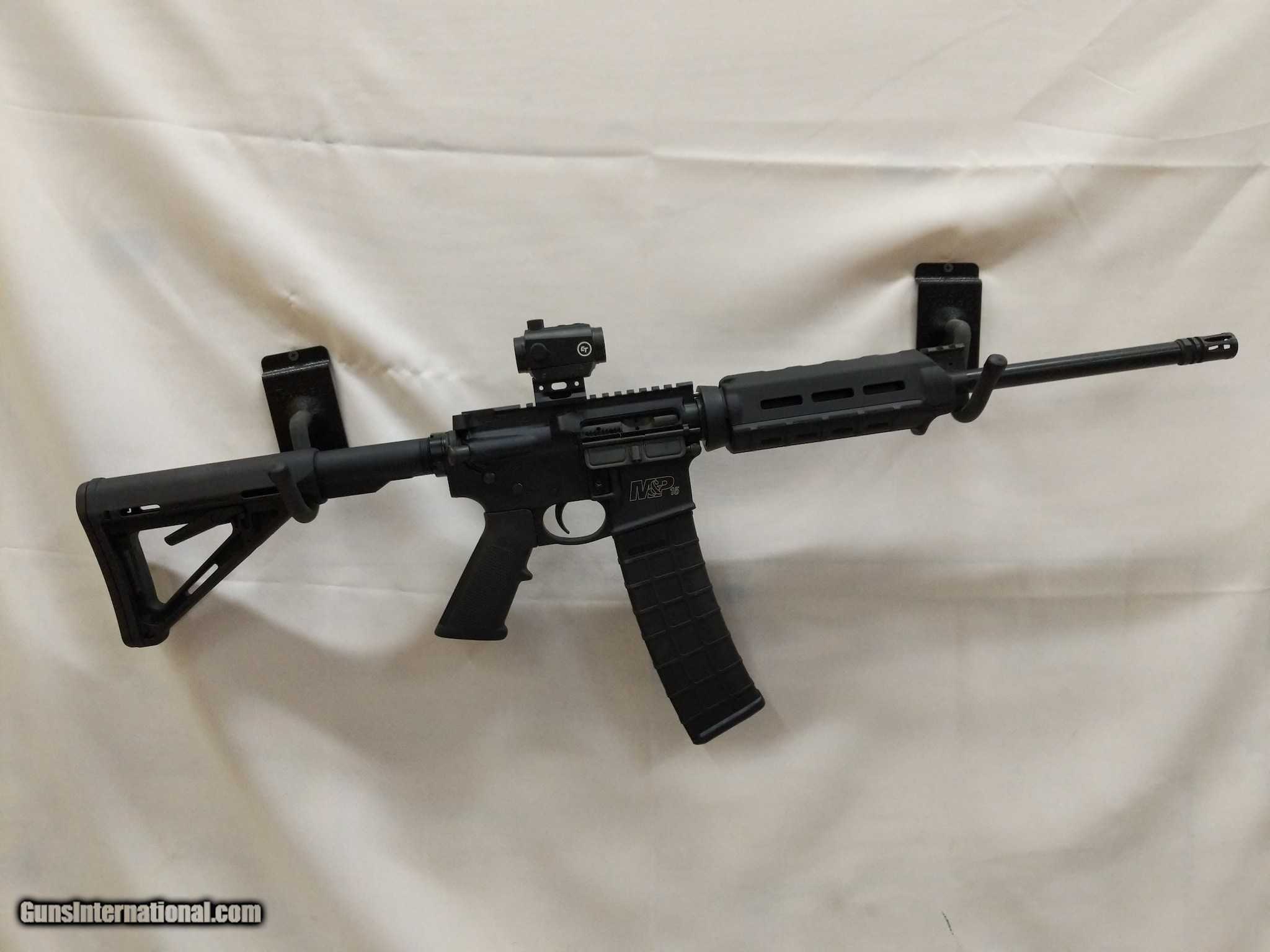 Description: Guns Listing ID: 1044607 Great condition Smith & Wesson M&P-15! Quality AR-15 with Magpul furniture, Crimson Trace red dot optic, and one 40rd magazine. Nice addition to any collection. 0923IZZ SOLD Manufacturer: SMITH & WESSON Model: M&P 15 Caliber Info: 5.56X45MM NATO Condition: Used - Non-Certified Barrels: 16 BARREL Finish: BLACK |