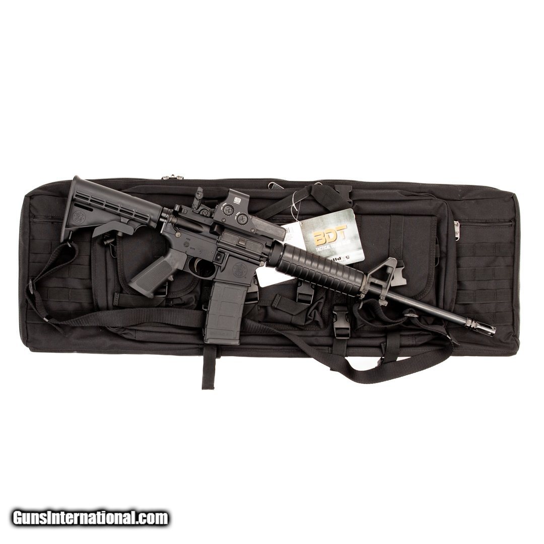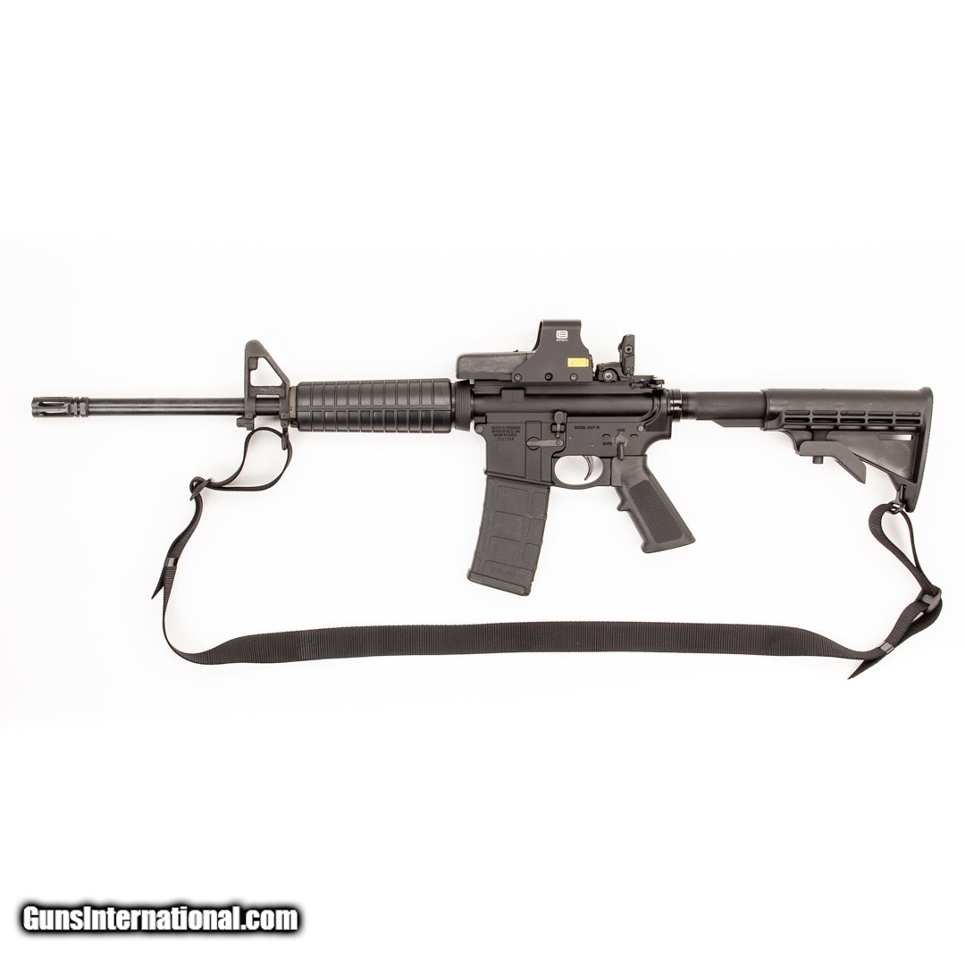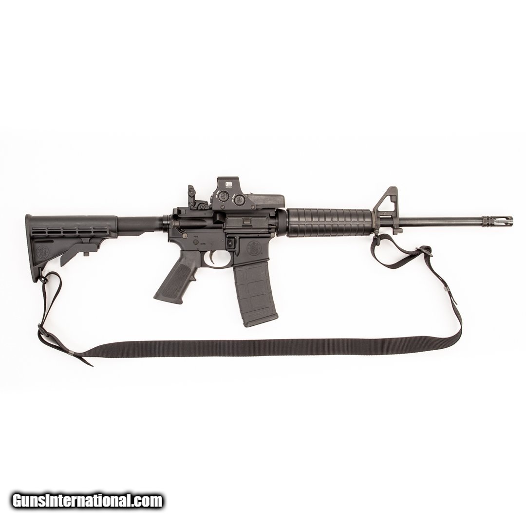 Description: Guns Listing ID: 1294816 This M&P-15 features one 30-round magazine, a rear MBUS sight, an Eotech HWS 512 holographic sight, a Delta muzzle break and a 1/9\" barrel twist. Get the best bang for your buck when you get a Certified Used Firearm . When you see the Certified Used stamp on any of our firearms, you can be confident that you’re getting exactly what you want – a gun only in very good to excellent condition and held to the highest quality standard. All Certified Used Guns come with a ‘no questions asked’ return policy . PLUS, ALL CERTIFIED USED GUNS SHIP FREE! SOLD Manufacturer: SMITH & WESSON Model: M&P-15 Caliber Info: 5.56X45MM NATO Condition: Used - Non-Certified Barrels: 16 BARREL Finish: BLACK |