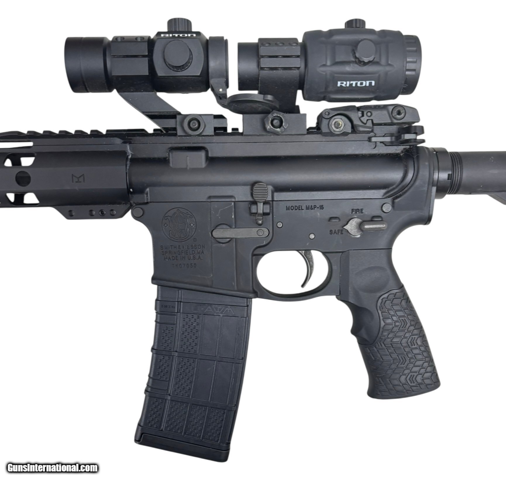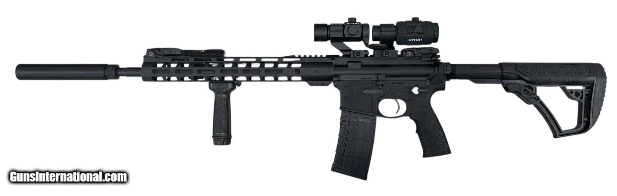 Description: Guns Listing ID: 546915 Rifle is preowned and in great shape. Light handling marks are present throughout the piece but nothing egregious nor even particularly noteworthy. This is a faux suppressor affixed to the rifle, not an actual suppressor. Rifle also includes a Riton Red Dot and Magnifier Combo, Olight Odin Tac Light, and a Daniel Defense stock, grip and foregrip. Barrel measures 16", chambered in 5.56, and has a capacity of 30 rounds. SOLD Manufacturer: SMITH & WESSON Model: M&P 15 Caliber Info: 5.56X45MM NATO Condition: Used - Non-Certified Barrels: 16" BARREL Action: SEMI AUTOMATIC Finish: black |