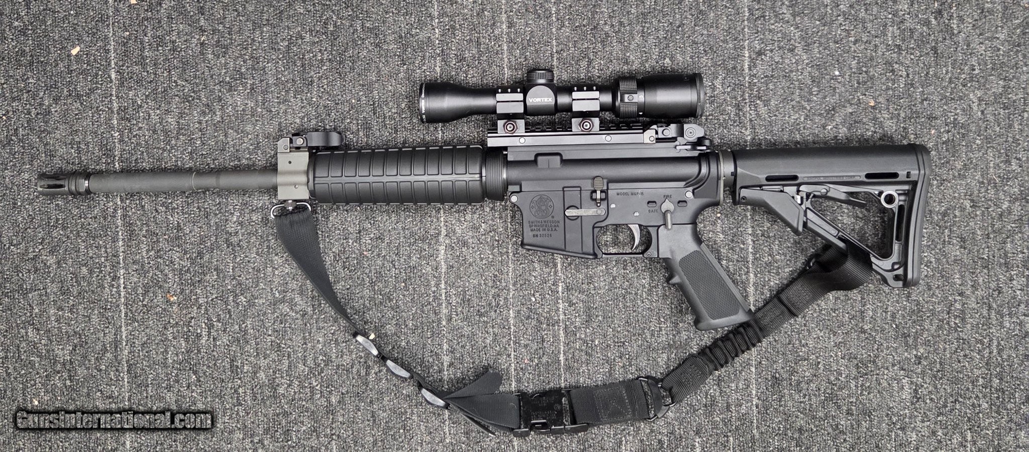 Description: Guns Listing ID: 571667 Used Smith & Wesson M&P-15 in 5.56 NATO. This rifle has a 1/9 barrel twist. Comes with sling, Vortex Daimondback 1.75-5x32 scope, and drop in trigger (I think its made by CMC.) This rifle does not come with a magazine. Manufacturer: SMITH & WESSON Model: M&P-15 Caliber Info: 5.56X45MM NATO Condition: Used - Non-Certified Barrels: 16" BARREL Action: SEMI AUTOMATIC Finish: black Price: $500.99 Contact Seller |