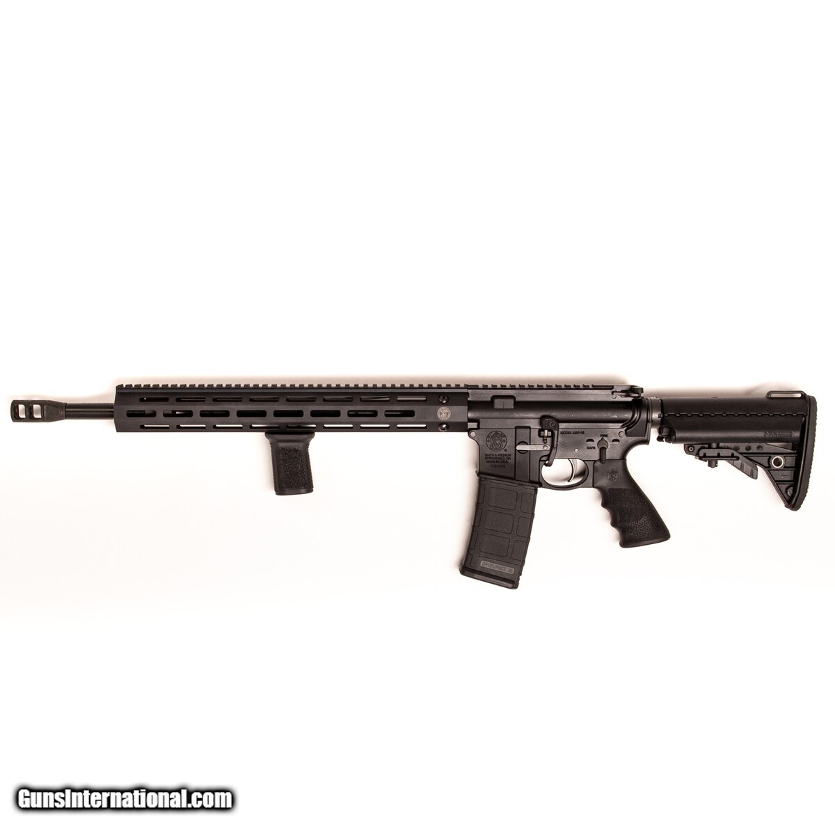 Description: Guns Listing ID: 651104 The Smith & Wesson M&P 15 is compatible with most standard AR-15 mil-spec components and accessories. Reliable and accurate, it‚‚s well-suited for competition, duty, and personal use. This rifle-length M&P 15 Performance Center model boasts an 18\" threaded barrel with a 1/8 twist, 5R rifling, and a PC brake. It also has a two-stage match trigger, Vltor stock, Troy Alpha BCM, Gunfighter vertical grip, 15\" free-float Mlok handguard, and a Picatinny rail. Purchase includes the original hard case, manual, one 30-round magazine, and an extra 2\" rail SOLD Manufacturer: SMITH & WESSON Model: M&P-15 PERFORMANCE CENTER Caliber Info: 5.56X45MM NATO Condition: Used - Non-Certified Barrels: 18 BARREL Finish: BLACK |