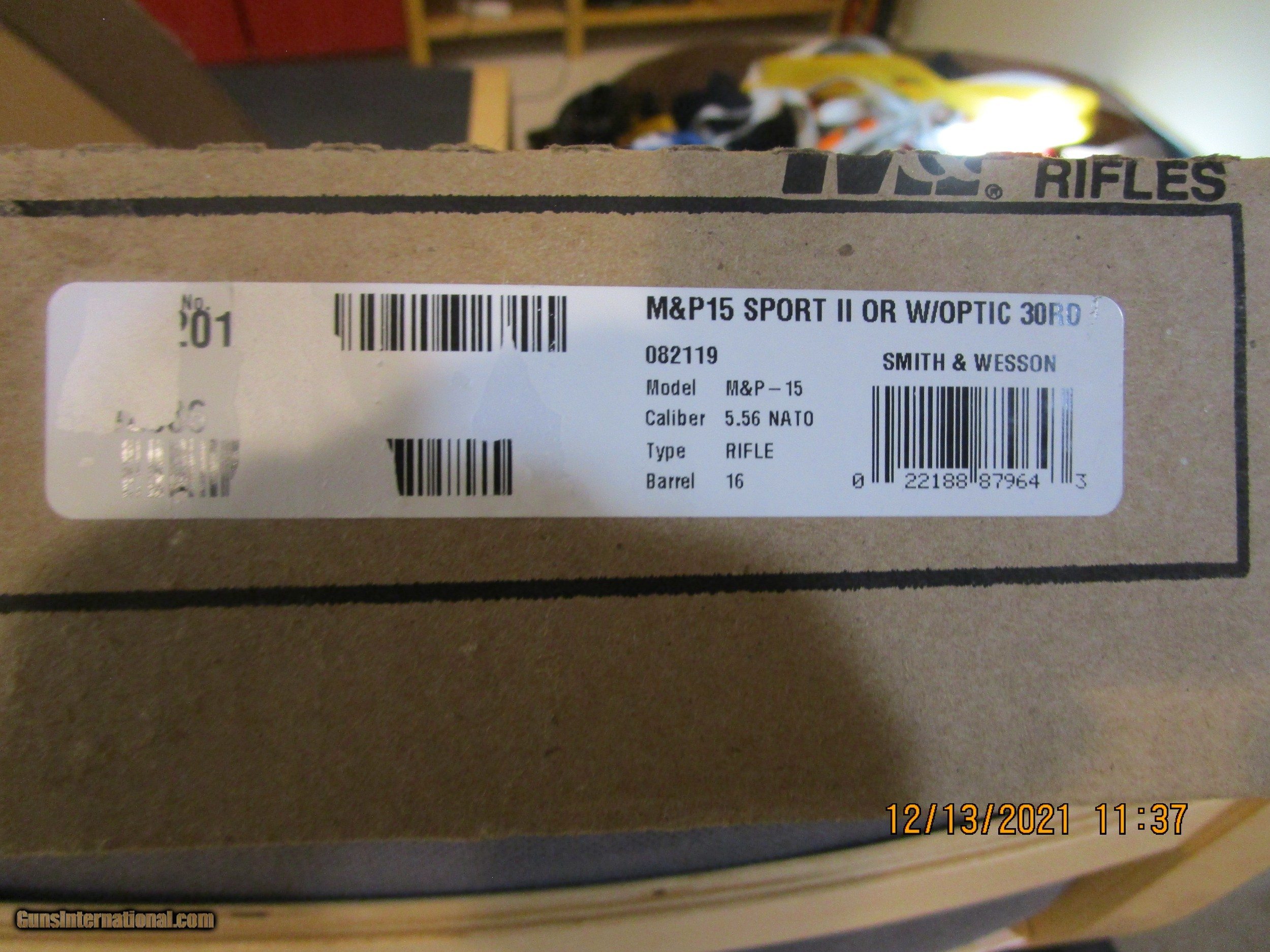 Description: This rifle was little shot and shows no visible wear or scratches on the upper and lower receivers or the barrel. It is in like-new condition. The rifle comes with one 30-round detachable magazine, a lock, the original shipping box, and safety and instruction manual. The Smith & Wesson® M&P15 Sport™ II is a quality AR-style semi-auto rifle, offered at an affordable price. The Sport II comes with a forward assist and a dust cover to enhance reliable function in rugged tactical environments. The upper and lower receivers are constructed from 7075 T6 aluminum with a hard coat black anodized finish. The upper has a full Picatinny rail, and the lower features an integral trigger guard. The 16” barrel features a durable, corrosion resistant Armornite™ finish; and a 1 in 9" twist. The gas key, bolt carrier, and firing pin are chromed for reliable function and ease of maintenance. A 6-position telescoping butt stock allows shooter to adjust for the perfect fit according to stature or clothing. The Smith & Wesson M&P15 Sport II Semi-Auto Rifle is compatible with most standard AR15 components and accessories. The buyer must determine whether this rifle meets his or her state regulations and laws. The rifle ships to FFLs only. Shipping with insurance is $50. SOLD |