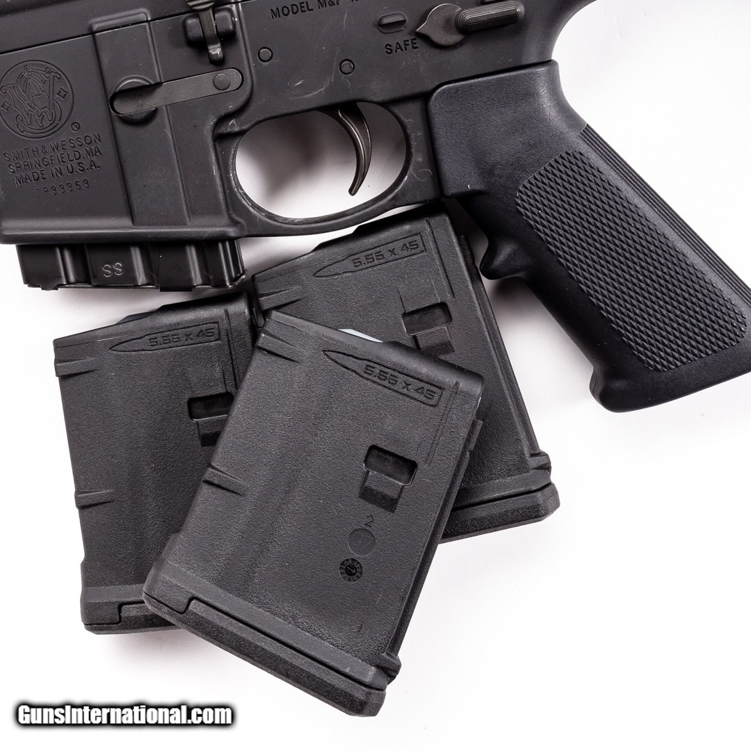 Description: Guns Listing ID: 277357 This M&P 15 by Smith & Wesson makes a great entry-level AR-15 and is compatible with most standard AR-15 mil-spec components and accessories. It is chambered in 5.56 NATO/ 223 Rem and made with a simple design while remaining reliable and accurate. A perfect option for those looking to get their first or next AR, this rifle was designed with military, police, and personal use in mind. This is a state-compliant model with a fixed stock, non-threaded barrel, and a flip-up rear sight. It is in very good condition and comes with three 10-round Magpul magazines and one 10-round ASC magazine. SOLD Manufacturer: SMITH & WESSON Model: M&P 15 Caliber Info: 5.56X45MM NATO Condition: used Barrels: 16 BARREL Finish: BLACK |