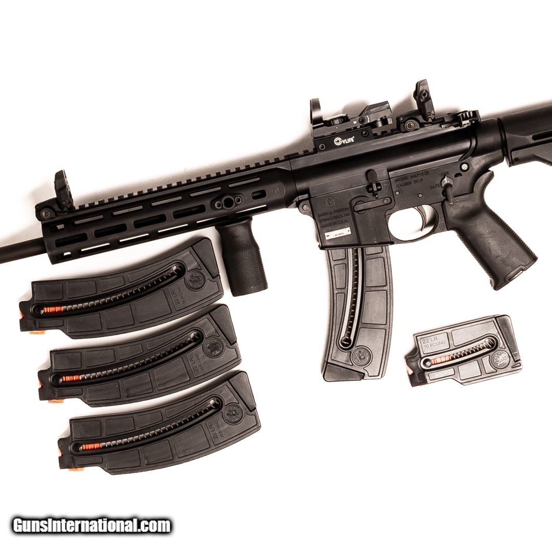 Description: Guns Listing ID: 837836 The Smith & Wesson M&P 15-22 is a 22 LR variant of the full-size M&P 15 chambered in 5.56 NATO. It makes a great training tool, small game hunting rifle, and fun plinking rifle. This M&P15-22 is equipped with a Magpul stock, pistol grip, and vertical grip. It also features an ambidextrous charging handle, MBUS sight set, and a VLife red/green dot optic. Purchase includes one 10-round magazine and four 25-round magazines. Get the best bang for your buck when you get a Certified Used Firearm . When you see the Certified Used stamp on any of our firearms, you can be confident that you’re getting exactly what you want – a gun only in very good to excellent condition and held to the highest quality standard. All Certified Used Guns come with a ‘no questions asked’ return policy . PLUS, ALL CERTIFIED USED GUNS SHIP FREE! SOLD Manufacturer: SMITH & WESSON Model: M&P15-22 Caliber Info: .22 LR Condition: Used - Certified Barrels: 16.5 BARREL Finish: BLACK |