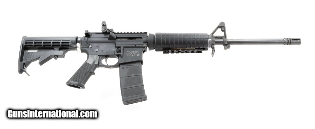 Description: Guns Listing ID: 491433 Smith & Wesson S&W M&P15 AR-15 Rifle 5.56 NATO 30+1 16\" Manufacturer: Smith & Wesson (S&W) Model: M&P15 Condition: Very good Caliber: 5.56x45mm NATO Action: Semi-Auto Barrel Length: 16\" Twist rate: 1:8 5R Overall Length: 32.5” / Fully Extended: 37.75” Capacity: 30+1 Features: A2 flash hider, A2 pistol grip, adjustable stock, carbine style forend, MAGPUL rear flip-up sight. Inventory: Firearm & (1) 30-rd Mission First Tactical magazine. • Please be aware that we have not test fired this gun. Unless otherwise stated, expect this firearm to fire and function safely. SOLD Manufacturer: SMITH & WESSON Model: M&P15 Caliber Info: 5.56X45MM NATO Condition: Used - Non-Certified Barrels: 16 BARREL Finish: black |