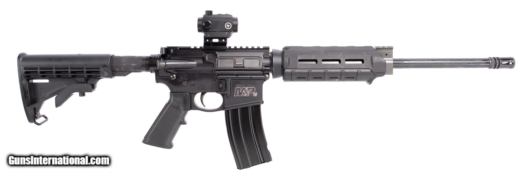 Description: Guns Listing ID: 532187 This S&W M&P15 appears to be in functional condition and shows sign of normal use. This rifle comes with a Crimson Trace red dot mounted as well as one 30 round magazine. Caliber: 5.56 NATO Barrel: 16 Inches Bore Condition: Good Optic: Crimson Trace Red Dot Magazines: 1 Mag Capacity: 30 Rounds Weight: 7.4 lbs SOLD Manufacturer: SMITH & WESSON Model: M&P15 Caliber Info: 5.56X45MM NATO Condition: Used - Non-Certified Barrels: 16 Action: SEMI AUTOMATIC Finish: black |