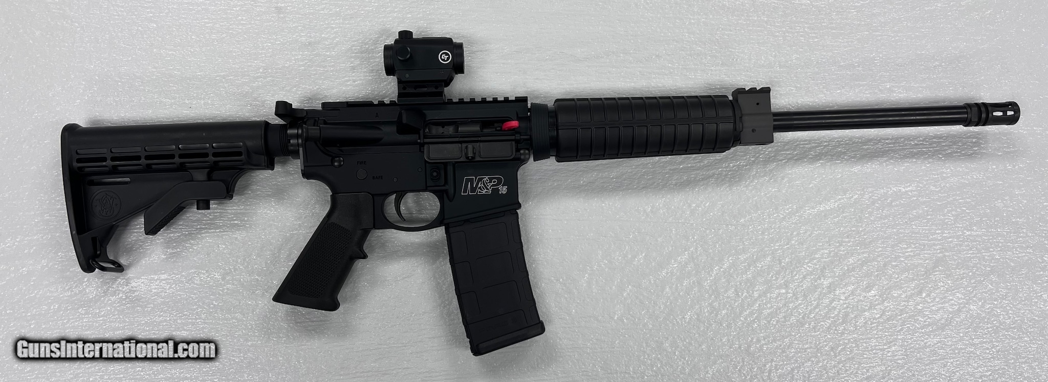Description: Guns Listing ID: 707170 NO BOX, COMES WITH CRIMSON TRACE GREEN/RED OPTIC AND 1 MAGAZINE, ONLY PUT 1 MAGAZINE THROUGH IT! SOLD Manufacturer: SMITH & WESSON Model: M&P15 SPORT II OR Caliber Info: 5.56X45MM NATO Condition: Used - Non-Certified Barrels: 16" barrel |