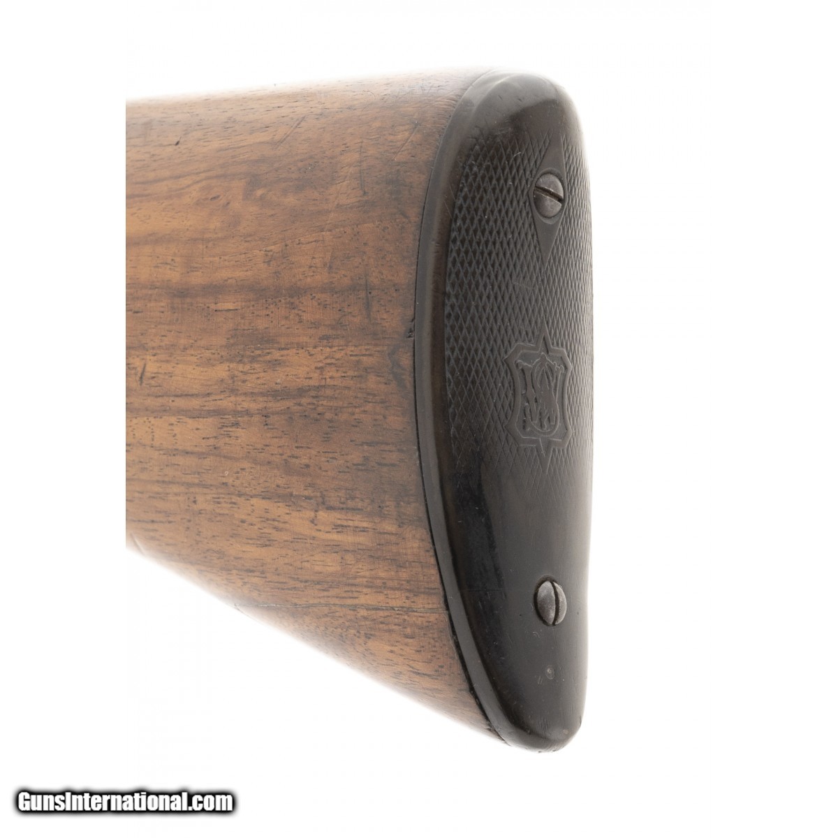 Description: " Very rare revolving rifle with detachable shoulder stocker. Barrel is 16"". Bore is excellent. Action works perfectly and locks up on time. Forend and grip are of the burnt orange and black matrix and are original to the gun. Right side pistol grip has a very small chip on the underside at the toe. (You have to turn the gun upside down to see it. Very minor!) The shoulder stock is excellent and so is the Smith & Wesson butt plate. The rear sight on the shoulder stock is perfect and extends perfectly and diopter at top folds correctly. Elevation is adjustable by turning the knurled knob at the top of the post. Note: The stocks are usually damaged when one finds these rare 320 revolving rifles! A very fine example. SOLD |