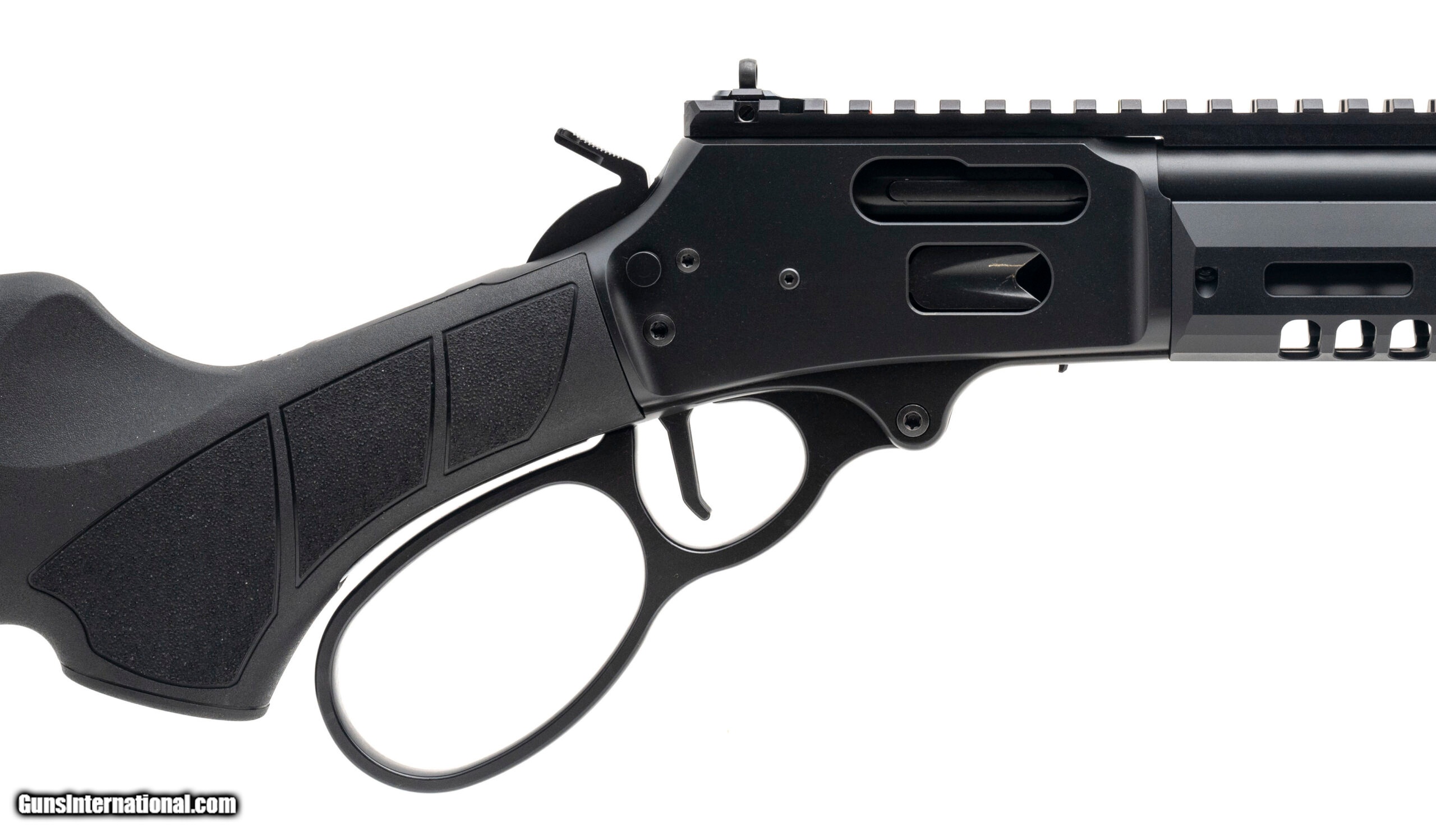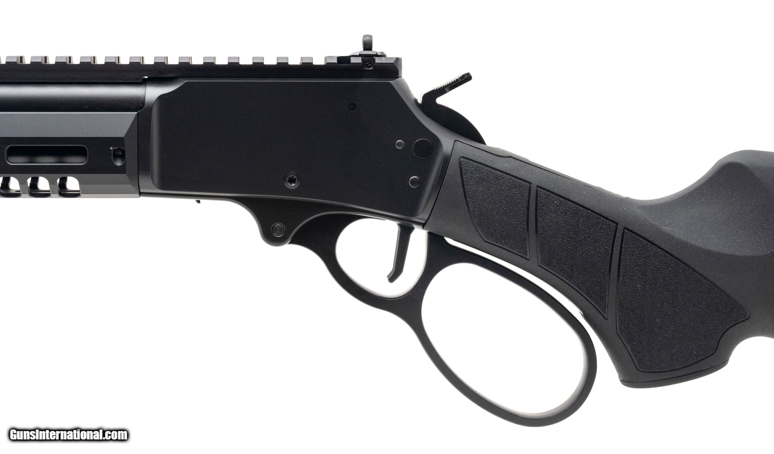 Description: "Lever Action Rifle with a 16.3"" Threaded Barrel. Armornite Finish, Synthetic Stock, Aluminum M-Lok Handguard, Picatinny Rail Top Mount, Side Gate, Flat Faced Trigger, and HiViz Fiber Optic Front & Ghost Ring Rear Sights. Has a 5/8x24 Thread Pitch. NEW. UPC: 022188899870 (STOCK PHOTO) SOLD |