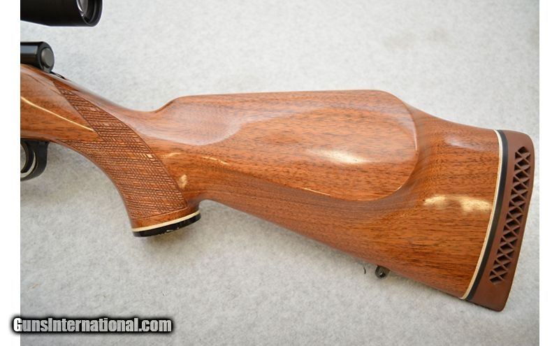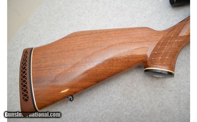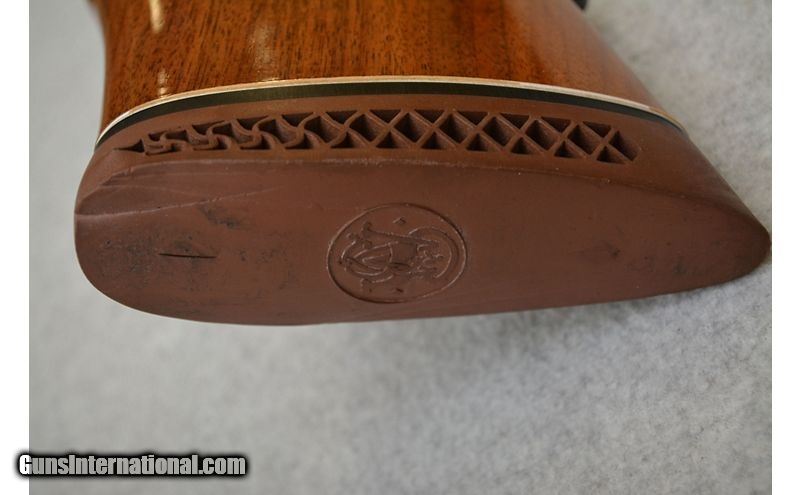 Description: Great shape for its age (since Smith & Wesson quit importing these in the mid 1980s). The metal is in fantastic shape save for a couple of marks to the trigger guard. The stock is almost as good as the metal; but does have a few light handling marks. The handling marks on the stock are fairly insignificant, as one has to have the light at the correct angle and be looking for them. 7mm Remington Magnum SOLD Chambers: Bolt action fed from an internal magazine with a hinged floor plate. Metal Condition: Very good to excellent. Wood Condition: Very good to excellent. Bore Condition: Excellent. Barrels: 24" Gloss blued. Triggers: Wide blued metal with grooved surface. Stock Dimensions: "Skip-line checkered walnut, S&W logo'd grip cap, and a 13½' LOP. Fore End: Skip-line checkered side panels on walnut. Butt Pad: Ventilated brown rubber pad with the S&W logo. Weight: 9lbs Sights: No iron sights. Comes equipped with 4-12x40mm Leupold VX-I scope. Chokes: N/A Item Location: Green Bay |