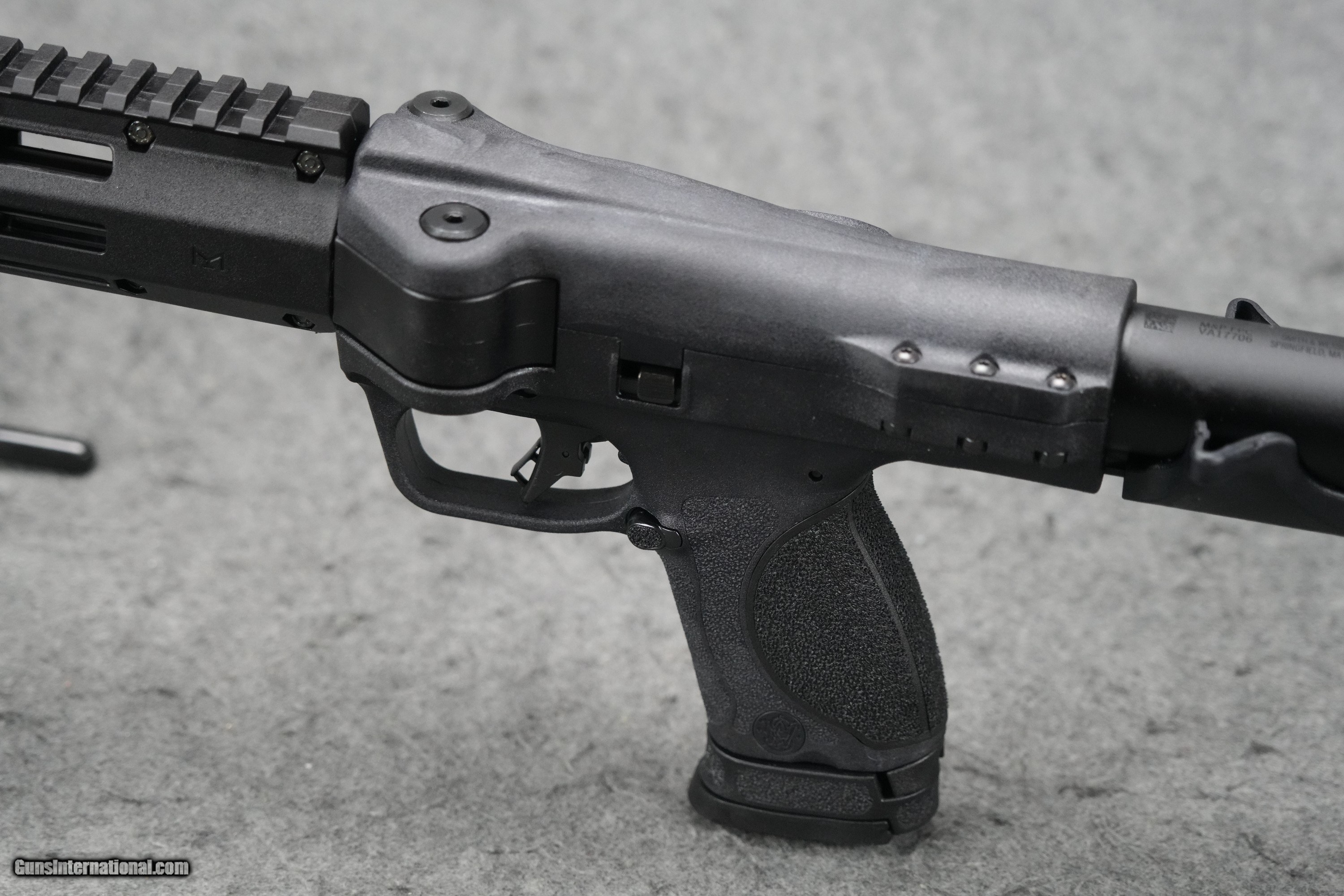 Description: WIDTH 2.5 LENGTH 30.4 HEIGHT 8 WEIGHT 80.42 CALIBER 9MM SIZE RIFLE CAPACITY 17,23 ACTION BLOWBACK BARREL LENGTH 16.25 GRIP POLYMER SIGHTS NONE OPTIC READY YES SAFETY THUMB SAFETY COLOR/FINISH BLACK STATE COMPLIANCE N/A THREADED BARREL YES BARREL MATERIAL 4140 CM FRAME ALUMINUM LASER NO PERFORMANCE CENTER NO NUMBER OF MAGAZINES 3 10LB TRIGGER NO STOCK FPC Compact, folding design. Optics-ready. Integrated recoil buffer system. Reversible magazine catch. 30 3/8" unfolded length to 16 3/8" folded. 1/2-28 threaded muzzle with thread protector. Flat-face trigger with crisp break. Compatible with M&P® Pistol double-stack magazines. In-stock magazine storage w/quick-release tab system. Horizontal folding mechanism with locking latch. Horizontal folding design doesn’t interfere with top-mounted optics (optics sold separately). M-LOK® slots on handguard with Picatinny-style rail on top. Charging slide/handle doubles as retainer when folded. Ships with (one) 17-round magazine and (two) 23-round magazines. Carrying bag with additional storage and Velcro® straps. Made in U.S.A. SOLD Rifle Caliber: 9x19mm Parabellum (9mm Luger, 9x19mm NATO) Manufacturer: Smith & Wesson Model: FPC Barrel Length: 16.25" Barrel Condition: BRAND NEW |
