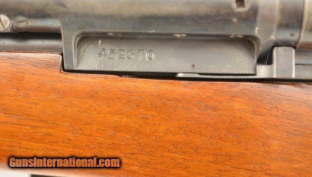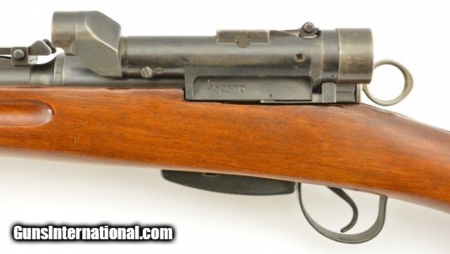 Description: Serial #452370, 7.5mm Swiss, 25 1/2" barrel with an excellent, bright bore. This is extremely rare rifle. One of only 96 manufactured and tested by the Swiss Army, that has all-matching numbers (including both the scope and magazine), and retains 98-99% of the original blue finish, with only some trace silvering along a few of the edges. The bolt has its original armory bright finish remaining, with only some minor marks along the bearing surfaces, and is equipped with a later, 1944-dated shroud. The rifle has both standard battle sights, and a removable low power scope with fixed periscope objective lens, and internal elevation adjustment out to 1000 meters (controlled by the tangent scale and slider on the top of the scope). The scope mounts via a single rail on the left side of the receiver, and is secured by a pivoting lever. The scope has the typical Swiss reticle with two horizontal bars flanking a central right angle peak, and has slightly cloudy, but fully functional optics. The stock has only a few very minor handling marks in the original military finish, and a crisp Swiss cross-in-shield stamp is present on the right side of the buttstock. An original metal muzzle-cover is also included. These rifles were not made in any great numbers, and were used for trials following the tests of the extremely cumbersome Model ZFK 1940 sniper rifle. The design of the ZFK 1942 led directly to the design of the ZFK 31/42, which was formally adopted by the Swiss Army. This is a fine-excellent example of an extremely rare Swiss trials sniper rifle, brought into the country prior to 1968, and would make a fantastic addition to any collection. FFL or C&R SOLD Curio/Relic: Yes |