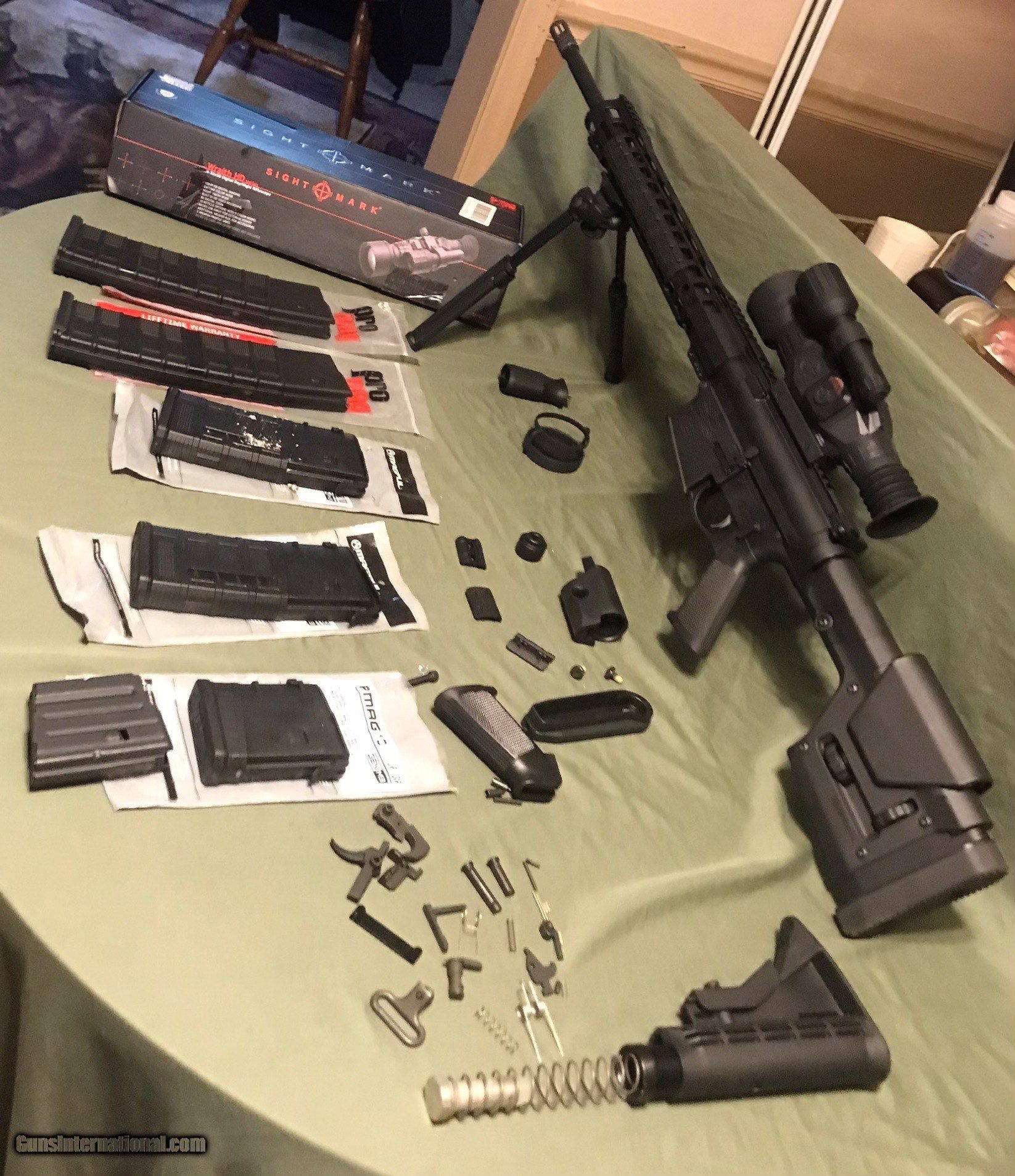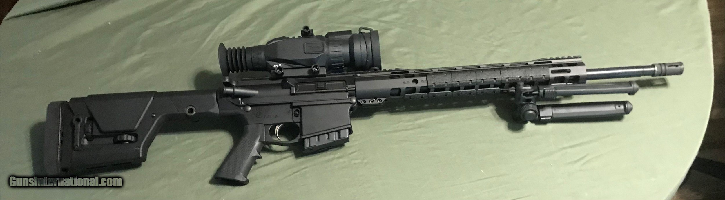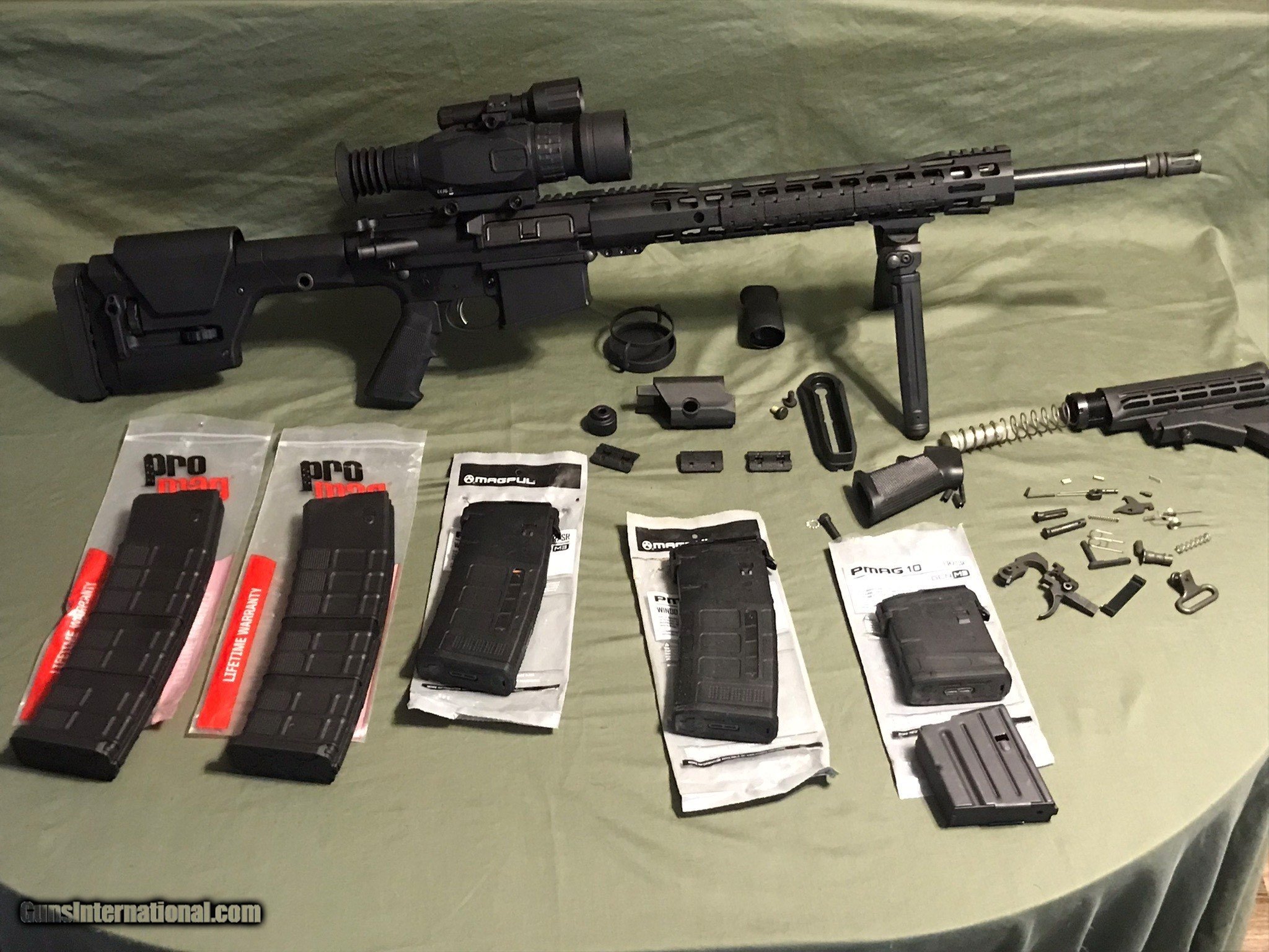 Description: This is a Palmetto State Armory build gun equipped with all the all the best features for the job. 20- inch stainless steel barrel and gas tube, 3 position adjustable gas block, 1/10 twist, 15" M-Lok free-float rail. Sight Mark Wraith HD 4-32X50 Day/Night Riflescope. Magpul PRS Gen 3 stock, Magpul Bipod with 50 degree of total tilt and 40 degrees pan. The lower receiver equipped with the Enhanced Polished Trigger Group, bolt assembly with extra strength extractor springs. Magazines – 2 40rd, 2 30rd, 1 10rd, 1 10rd steel. Miscellaneous spare small parts. The gun is new, never fired. The rifle itself will be shipped to your FFL.in a hard case. Everything else will be shipped directly to you USPS. No “lost” parts. $2615 + HIS` SOLD Rifle Caliber: 7.62x51mm NATO Manufacturer: Palmetto State Armory Model: PA10 Bore: .308 Chambers: 7.62X51mm Ejectors: Strengthened Condition: New Metal Condition: New Wood Condition: New Bore Condition: New Barrels: New Barrel Type: Stainless steel Action: Semi Automatic Triggers: Enhanced Stock: Magpul Gen 3 Stock Dimensions: Adjustable Fore End: M Loc Finish: Anodized Black Manufacture Date: 2022 Extras: Bipod, mags, small parts Case: Hard Plastic Item Location: South Carolina |