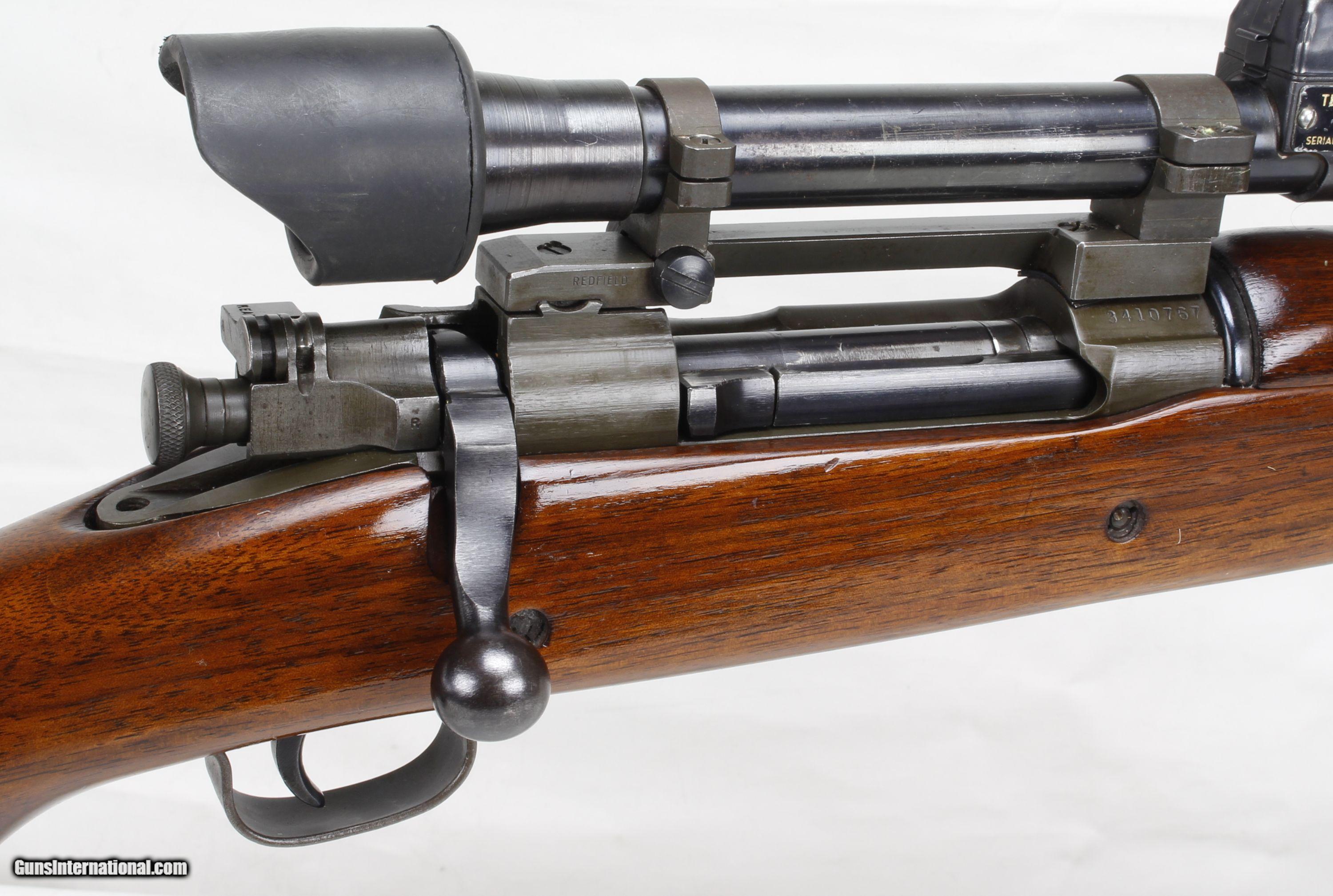 Description: REMINGTON Model 03A4, SNIPER RIFLE. SN#3410767, MFG: 1943. All Parts Matching. Redfield Scope Mount, M84 Scope, SN#22508, W/Center Post Reticle, Scope is Vietnam ERA. (Common Retrofit), Clear but Probably Needs to be Resealed, Stock has been Sanded, No Cartouches Visable. Gun is in Mechanically Excellent Condition. Bore is Excellent. Ships to lower 48, W/Insurance, $50.00 SOLD Curio/Relic: Yes Manufacturer: REMINGTON Model: 03A4 Serial Number: 3410767 Caliber Info: 30-06 Bore: EXCELLENT Condition: EXCELLENT Metal Condition: EXCELLENT |