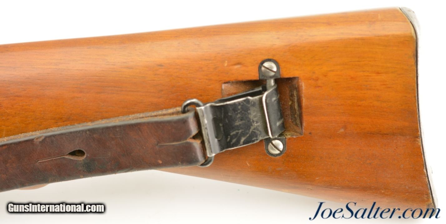 Description: Serial #450855, 7.5mm Swiss, 25 1/2" barrel with an excellent, bright bore. This is a handsome rifle that has all-matching numbers, including the magazine, and retains 95-97% of the original blue finish, with some silvering along the edges, and some minor flaking of the blue on the barrel bands. The bolt has its original armory bright finish remaining, with a few small spots of freckling on the body, as well as on the aluminum handle. The rifle is equipped with the integral 1.8x scope with flip-up objective lens, and internal elevation adjustment out to 1000 meters (controlled by the tangent scale and slider on the top of the scope) on the left side of the receiver. The scope has the typical Swiss reticle with two horizontal bars flanking a central right angle peak, and has slightly cloudy, but still functional optics. The stock has numerous small handling marks in the original varnish, with some heavier wear along the sides and toe of the buttstock. A crisp Swiss cross and shield stamp is present on the right side of the buttstock. The rifle is also outfitted with a Swiss issue leather sling, and an original metal muzzle-cover is also included. These rifles were adopted following tests with the experimental ZFK 1942 Sniper Rifle and were designed to minimize the vertical profile of the shooter when using the scope. These rifles were not very satisfactory since they were very difficult to shoot accurately. The 31/42 was therefore superseded by the very similar ZFK 31/43 a year later. This is a fine-excellent example of a very rare Swiss sniper rifle, brought into the country prior to 1968, and would make a splendid addition to any collection. FFL or C&R SOLD Curio/Relic: Yes |