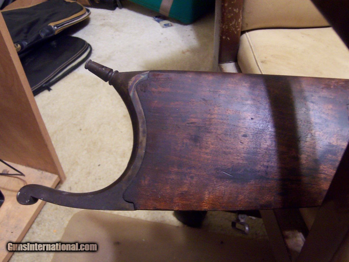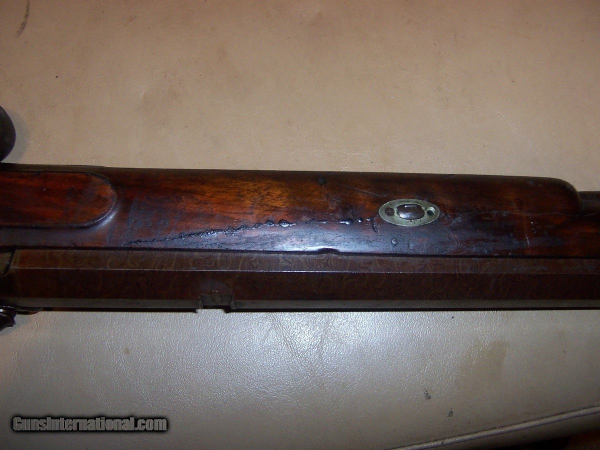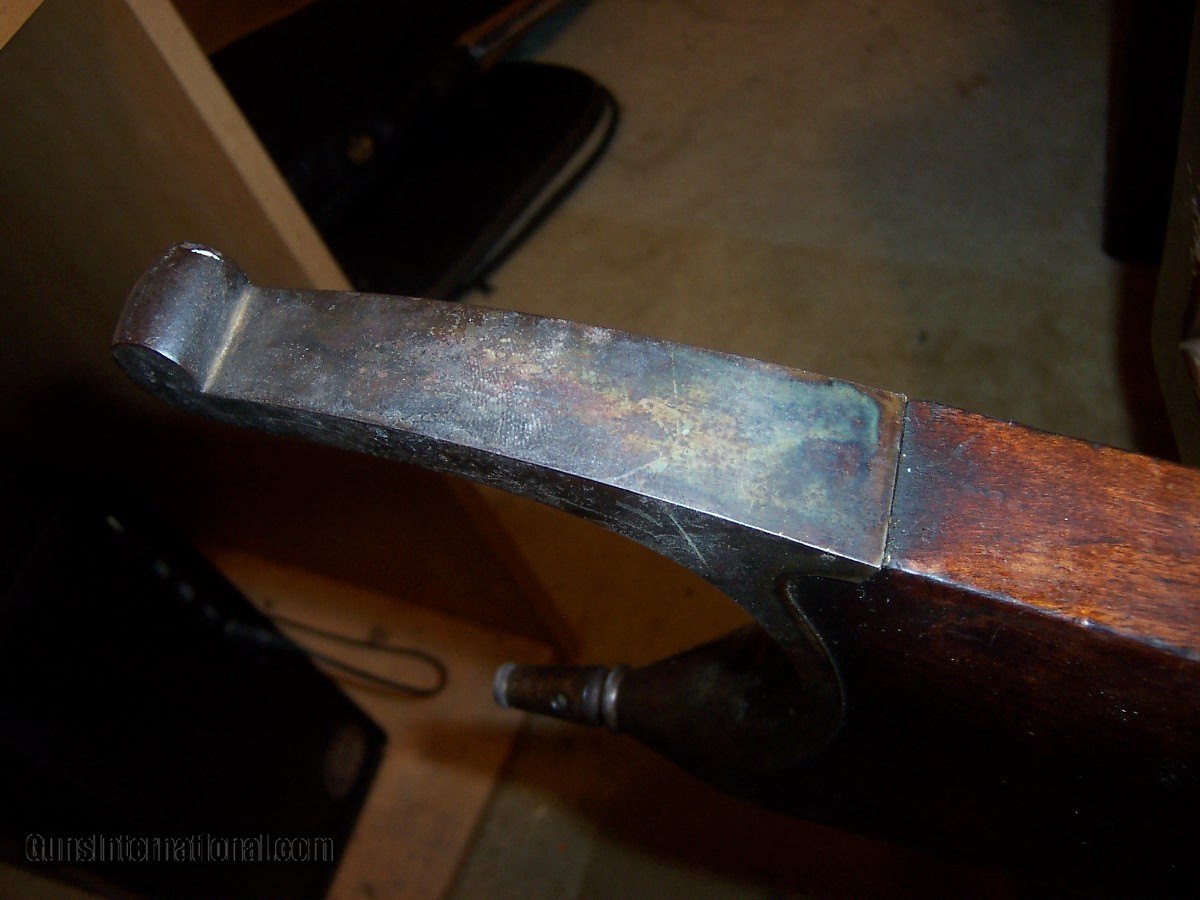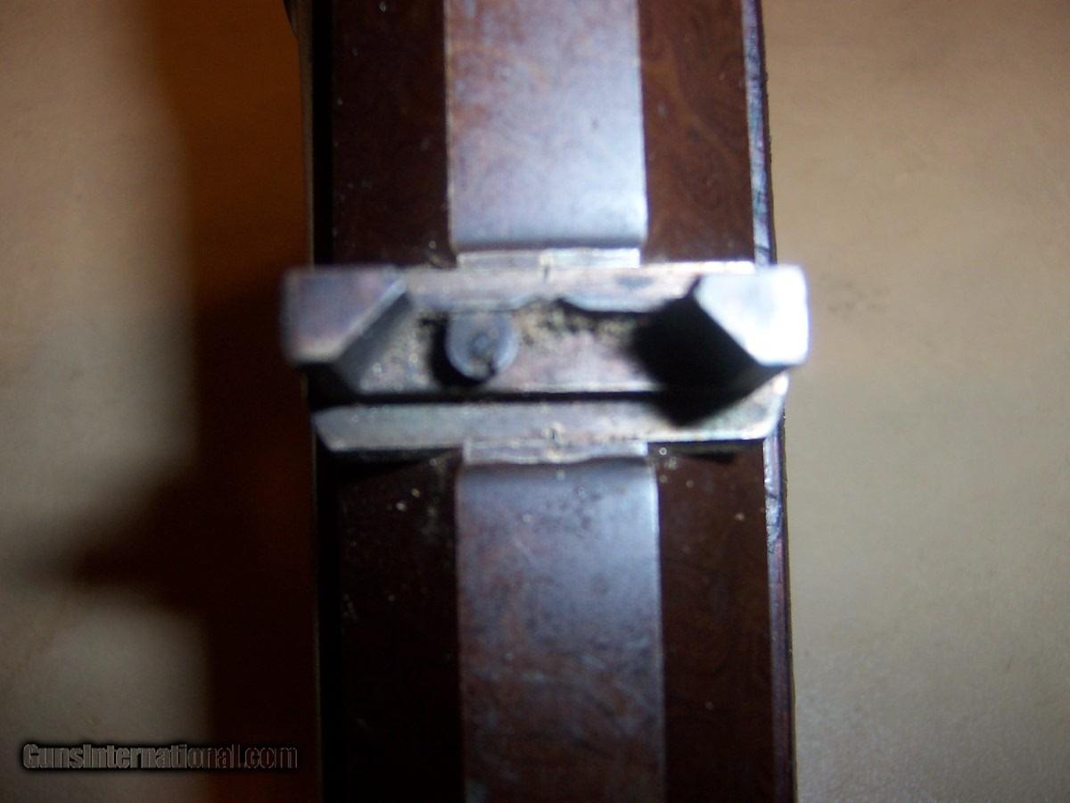 Description: lock has lots of case works perfect with set trigger , stock broken through the grip solid repaired condition and large crack on left side of forearm solid repaired fore end cap replacement front sling swivel replacement .575 caliber almost mint bore has a bayonet attachment on barrel lock marked looks like h jaquet see picture'' original ramrod''''' swiss sniper rifle $50 sh ins may be swiss made SOLD Antique: Yes |