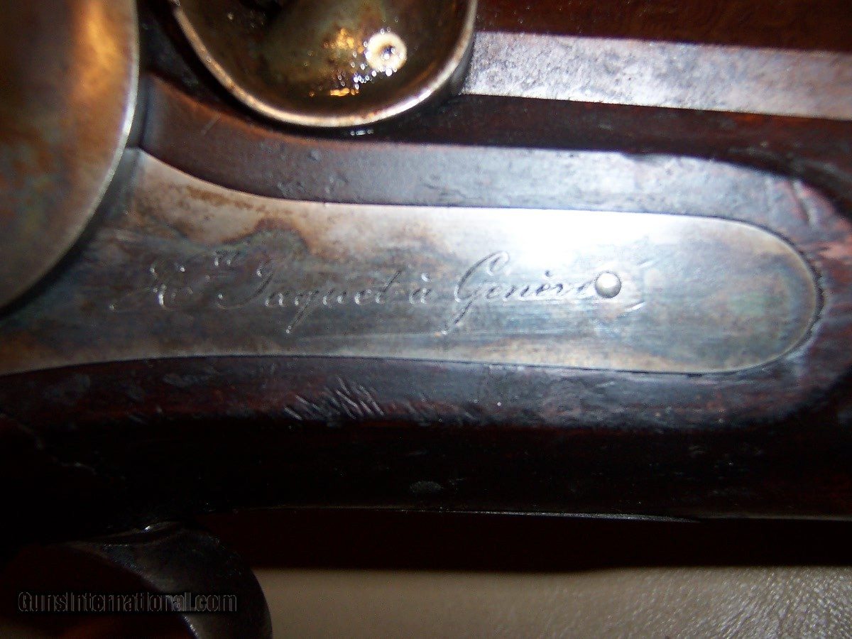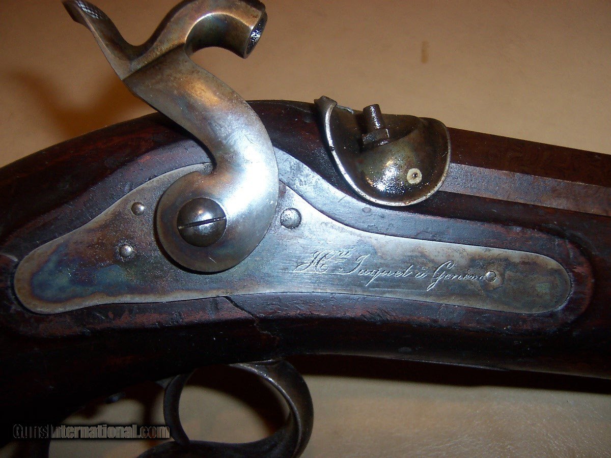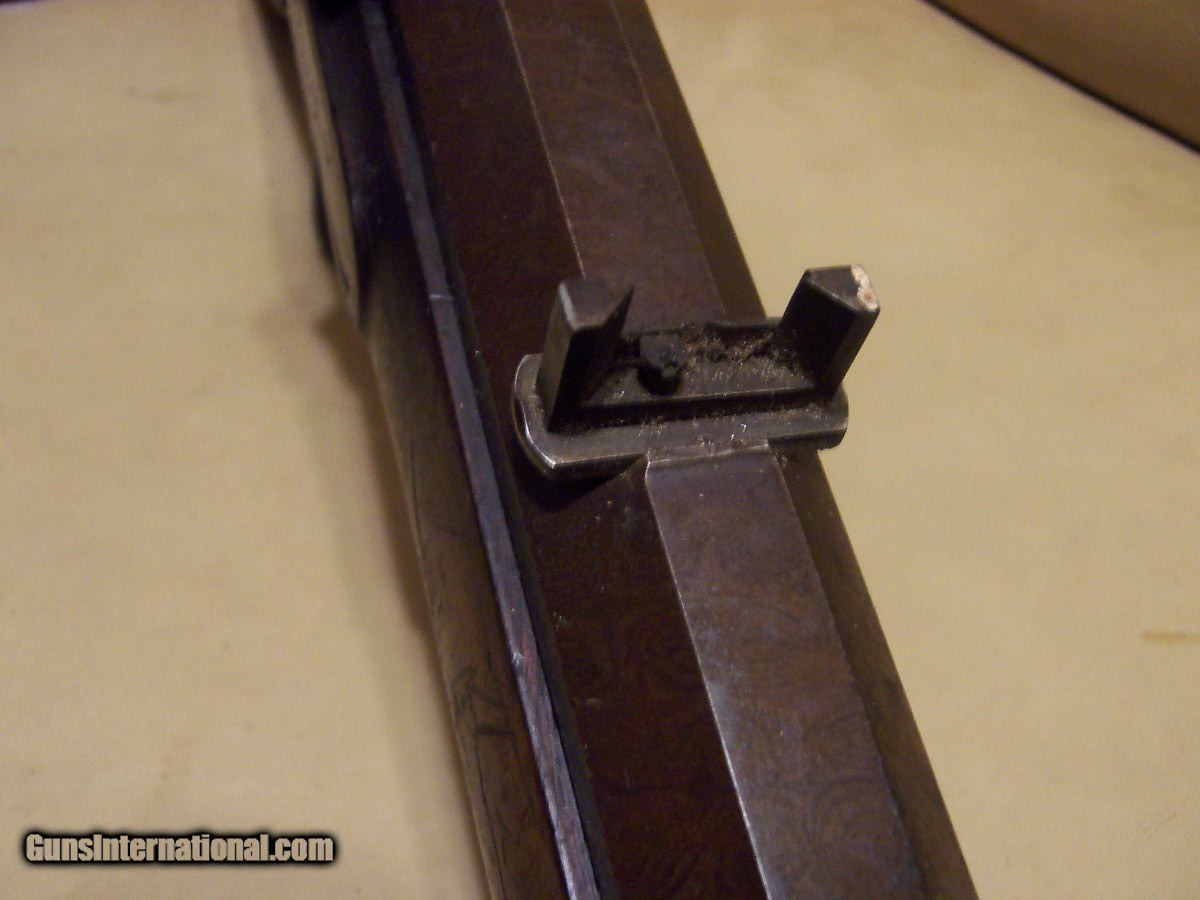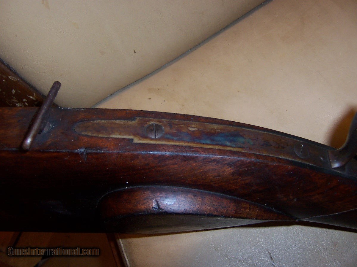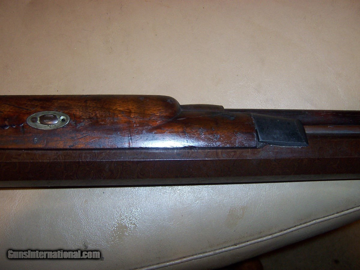 Description: lock has lots of case works perfect with set trigger , stock broken through the grip solid repaired condition and large crack on left side of forearm solid repaired fore end cap replacement front sling swivel replacement .575 caliber almost mint bore has a bayonet attachment on barrel lock marked looks like h jaquet see picture'' original ramrod''''' swiss sniper rifle $50 sh ins may be swiss made SOLD Antique: Yes |