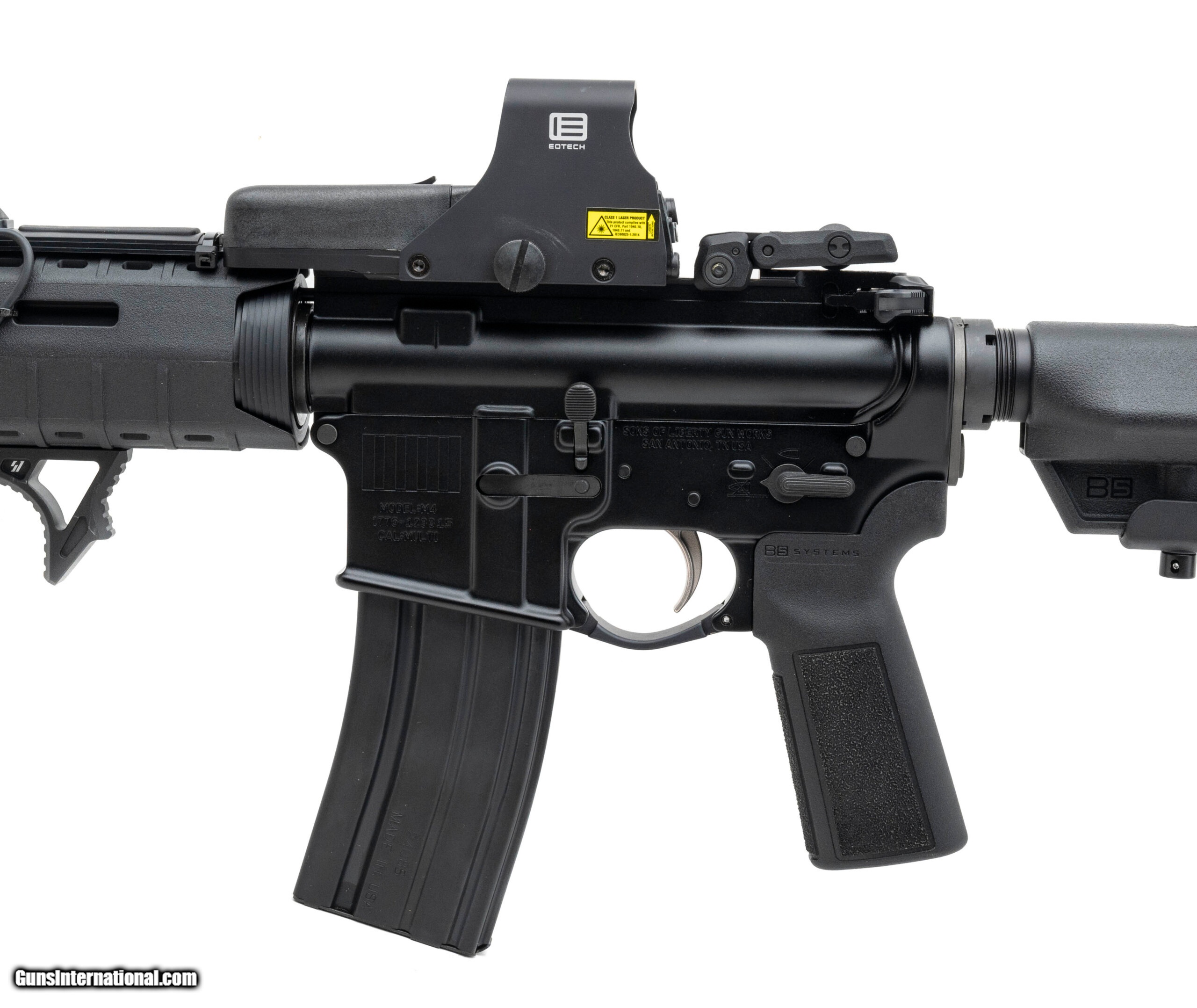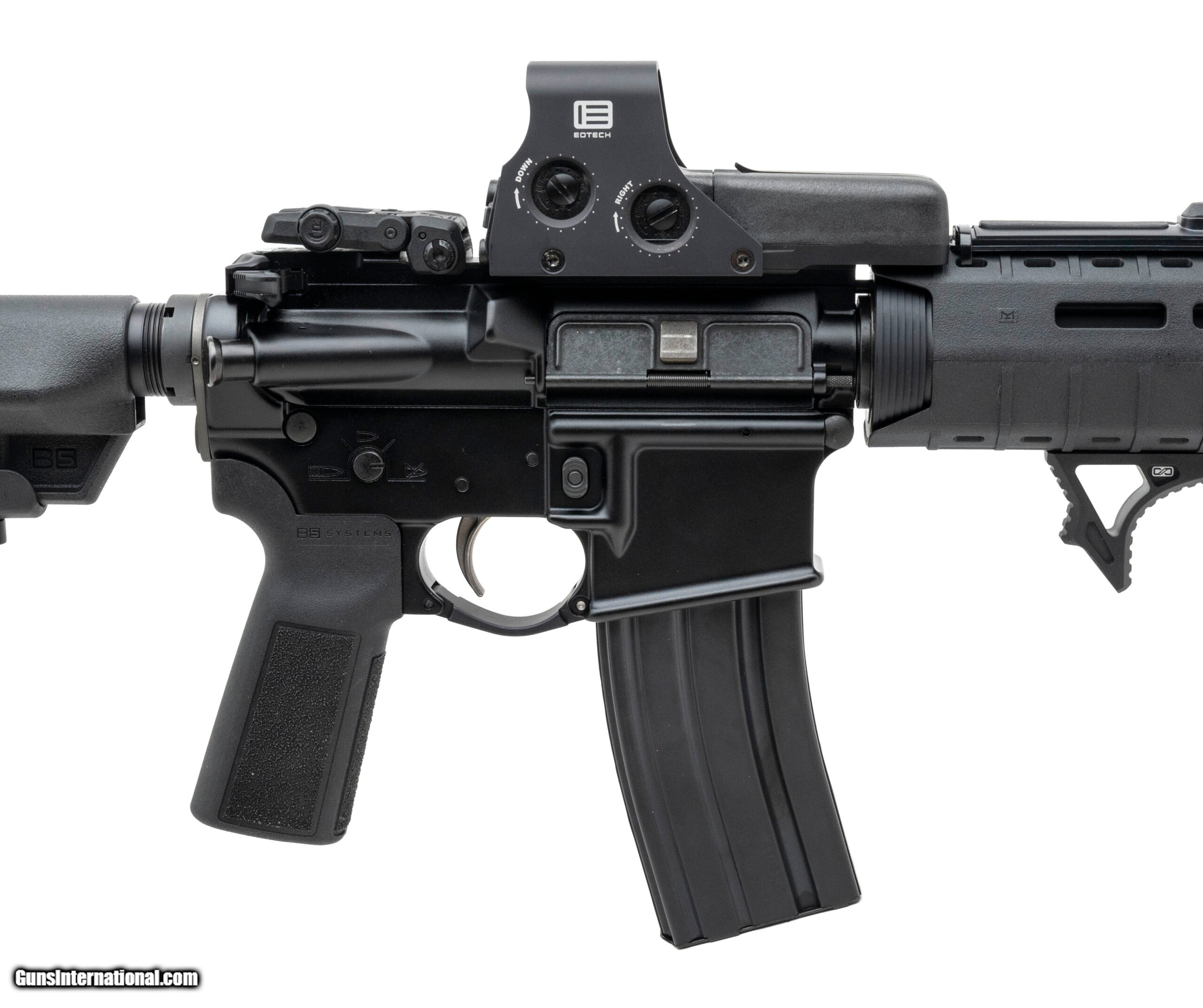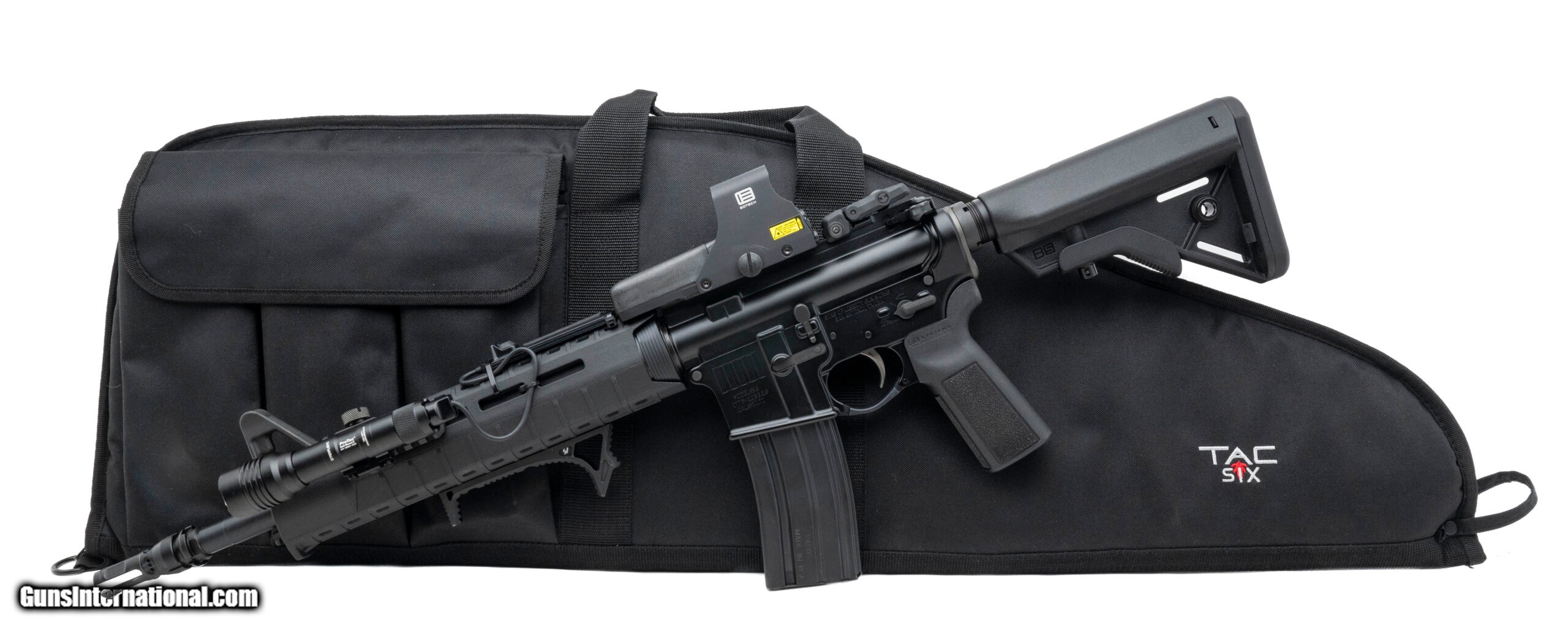 Description: "SN: 1776-123315, Modern production, 5.56 NATO with a 14"" pinned barrel with muzzle brake. Semi-automatic tactical rifle. Bore, finish, and adjustable stock are in excellent condition. Rifle comes with bag, EOTech HWS 512 Sight, two extra magazines, and Streamlight. SOLD |