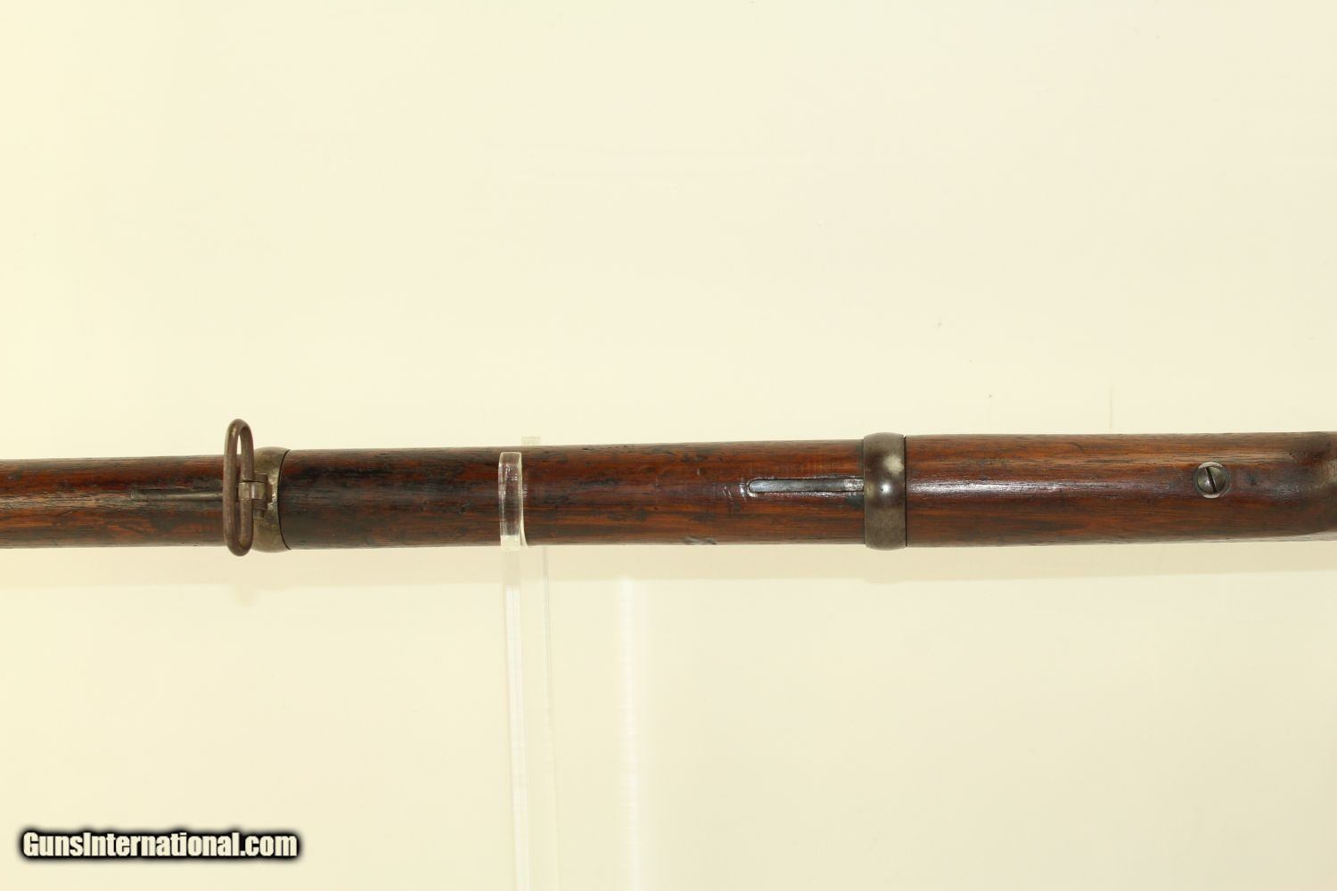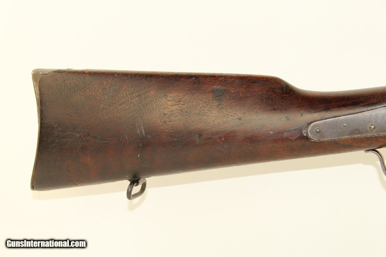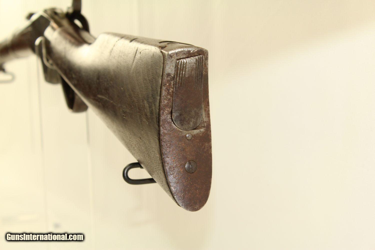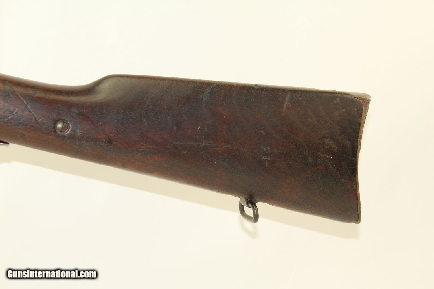 Description: 1 of 1000 Antique SPENCER Model 1865 Repeating RIFLE .56-50 Rimfire Scarce Rare Late Civil War Militia Rifle! Here we present an antique Spencer Repeating Rifle Co. Model 1865 Repeating Rifle, made circa 1865 in Boston, Massachusetts, at the tail end of the Civil War. About 1,000 made of this variant. The Spencer Repeating Rifles were marvels of the time and had a lasting impact on how war was to be fought in the future. Though their service life in the U.S. military was relatively short, the Spencer story includes Christopher Spencer, the inventor of the rifle, demonstrating and shooting with President Abraham Lincoln, who gave his full endorsement of the piece. Supposedly, during the battle at Gettysburg, a captured Rebel that day said one could “load in the morning and fire all day!” This was due to the Spencer’s most endearing quality: a 7-round magazine tube in the butt of the gun. This gave the shooter phenomenal firepower in a day when most soldiers were muzzle-loading single shots or even singly loading their breech-loading carbines. The Spencer went head to head with the Henry Rifle and though the Spencer won far more in the way of military contracts during the war, ultimately, the Henry design would achieve far greater success as it morphed into Winchester and became the iconic name it is today. The breech end of the barrel is marked “M 1865” with the company address just behind that. The left side of the butt stock is marked “13” in block letters. This batch is thought not to have been the result of a US contract, and there are no inspector markings throughout. But it would appear that this rifle ended up with a local militia and that number 13 is very likely an inventory number. The overall condition is near fine. 80% original finish remains. The markings are clear. The number is early and in the 2400 range. Great, solid stock. The bore is bright with sharp rifling and the action is excellent. Own the original! This is a legitimate antique and not a reproduction. Barrel is 30 inches. Caliber: .50 Spencer Overall condition as seen in photos. Very Fast. Very Safe. FREE SHIPPING WORLDWIDE. Delivered directly to your door by express mail! Guaranteed AUTHENTIC & Includes CERTIFICATE OF AUTHENTICITY. ancestryguns $2875 #190830 SOLD Antique: Yes Rifle Caliber: .50 Spencer |