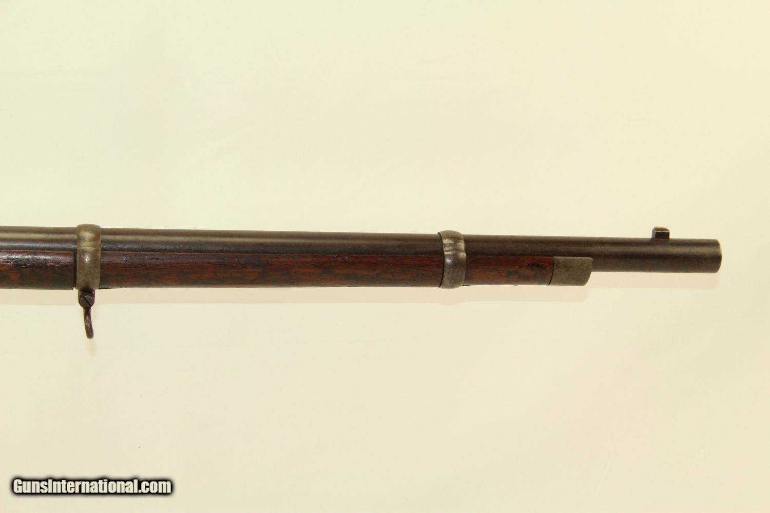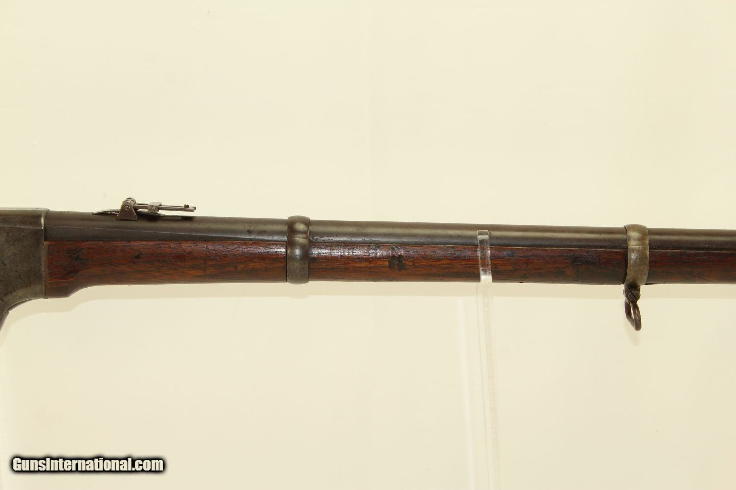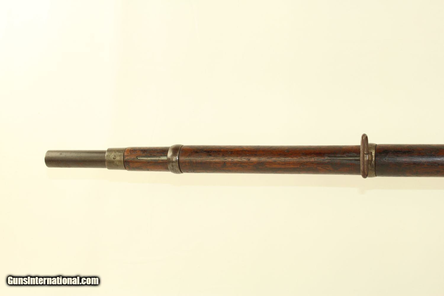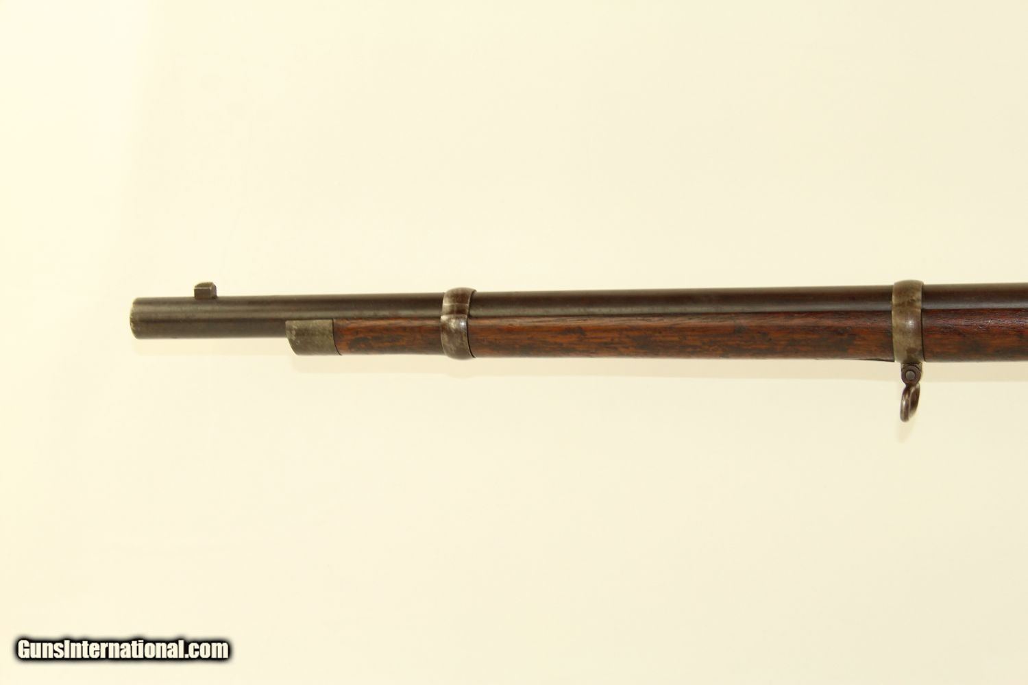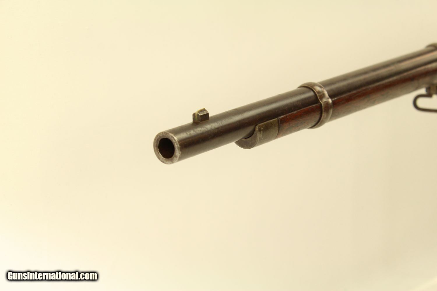 Description: 1 of 1000 Antique SPENCER Model 1865 Repeating RIFLE .56-50 Rimfire Scarce Rare Late Civil War Militia Rifle! Here we present an antique Spencer Repeating Rifle Co. Model 1865 Repeating Rifle, made circa 1865 in Boston, Massachusetts, at the tail end of the Civil War. About 1,000 made of this variant. The Spencer Repeating Rifles were marvels of the time and had a lasting impact on how war was to be fought in the future. Though their service life in the U.S. military was relatively short, the Spencer story includes Christopher Spencer, the inventor of the rifle, demonstrating and shooting with President Abraham Lincoln, who gave his full endorsement of the piece. Supposedly, during the battle at Gettysburg, a captured Rebel that day said one could “load in the morning and fire all day!” This was due to the Spencer’s most endearing quality: a 7-round magazine tube in the butt of the gun. This gave the shooter phenomenal firepower in a day when most soldiers were muzzle-loading single shots or even singly loading their breech-loading carbines. The Spencer went head to head with the Henry Rifle and though the Spencer won far more in the way of military contracts during the war, ultimately, the Henry design would achieve far greater success as it morphed into Winchester and became the iconic name it is today. The breech end of the barrel is marked “M 1865” with the company address just behind that. The left side of the butt stock is marked “13” in block letters. This batch is thought not to have been the result of a US contract, and there are no inspector markings throughout. But it would appear that this rifle ended up with a local militia and that number 13 is very likely an inventory number. The overall condition is near fine. 80% original finish remains. The markings are clear. The number is early and in the 2400 range. Great, solid stock. The bore is bright with sharp rifling and the action is excellent. Own the original! This is a legitimate antique and not a reproduction. Barrel is 30 inches. Caliber: .50 Spencer Overall condition as seen in photos. Very Fast. Very Safe. FREE SHIPPING WORLDWIDE. Delivered directly to your door by express mail! Guaranteed AUTHENTIC & Includes CERTIFICATE OF AUTHENTICITY. ancestryguns $2875 #190830 SOLD Antique: Yes Rifle Caliber: .50 Spencer |